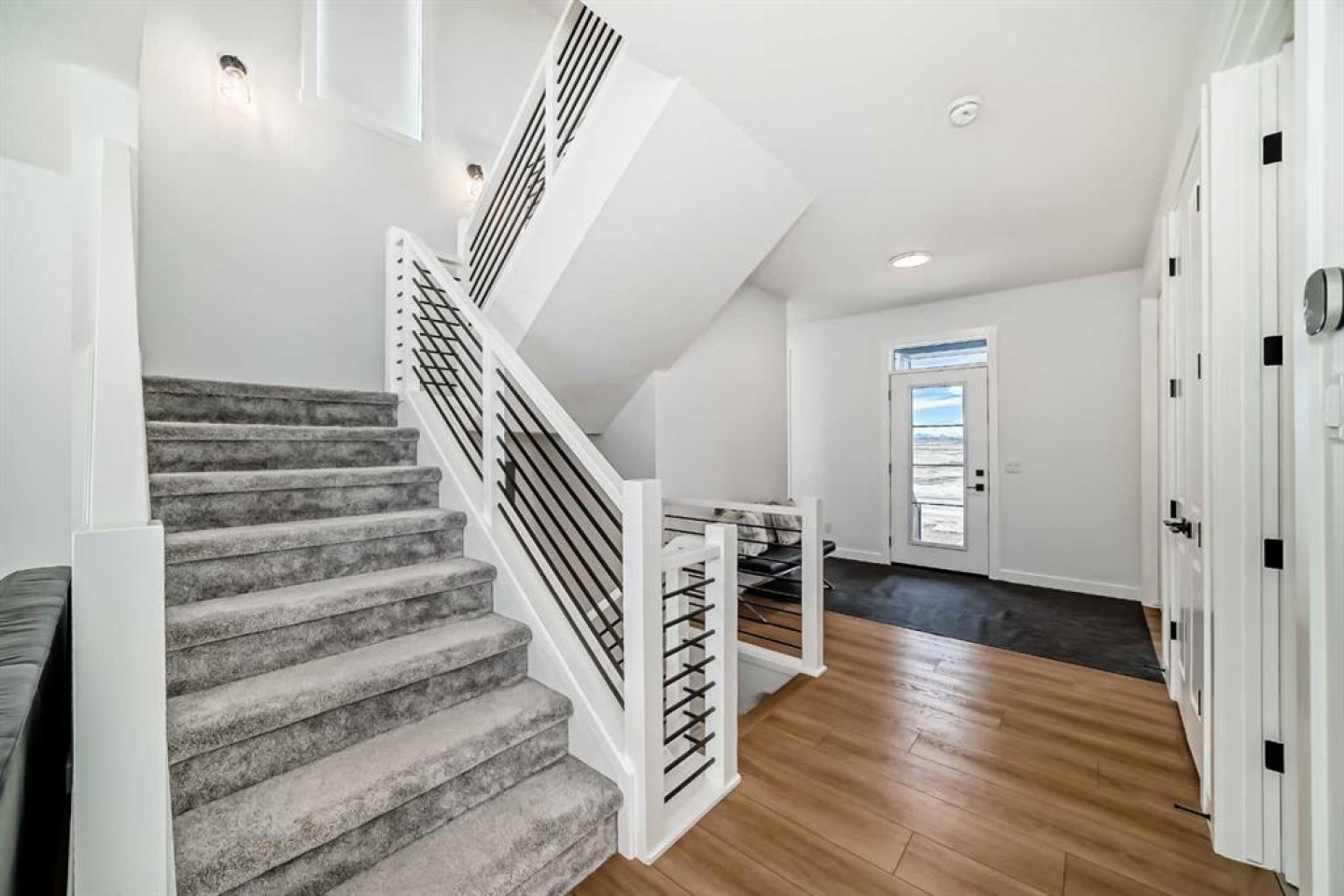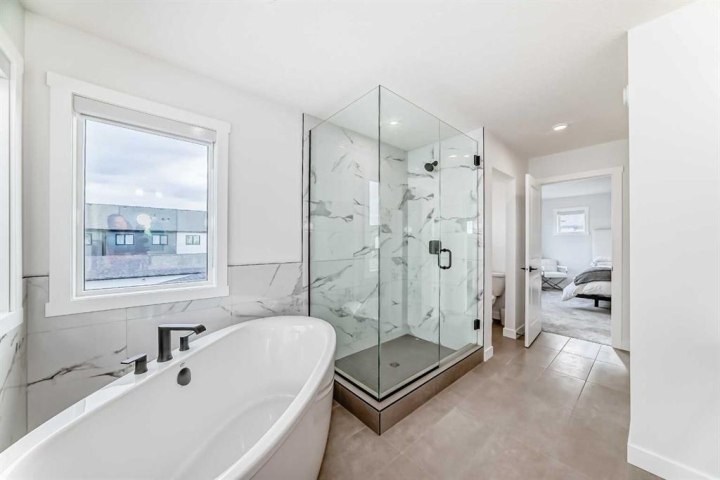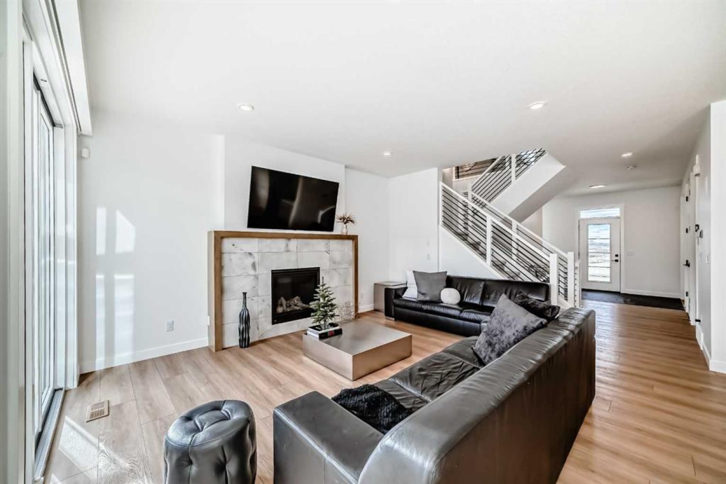 Upstairs, the thoughtful layout continues. The primary bedroom is a true retreat, featuring a luxurious five-piece ensuite with dual vanities, a freestanding tub, a separate shower, and a spacious walk-in closet. A comfortable upper-level family room creates the perfect space for movie nights or quiet downtime. Two additional well-sized bedrooms, each with their own walk-in closets, share a modern four-piece bathroom—ideal for families of all sizes.