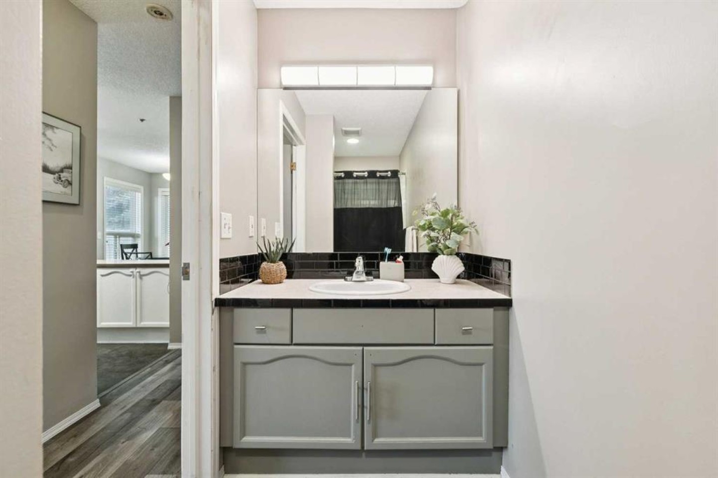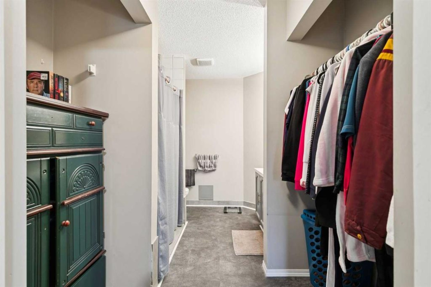 The primary bedroom is spacious and can easily fit your king bed and furniture plus there is already a ceiling track present that can accommodate a lift. The ensuite features a fully wheel-in shower with a grab bar, designed for ease and safety. The bathroom vanities are also built at 32” height for good accessibility. Closet doors have already been removed for easy access and function.