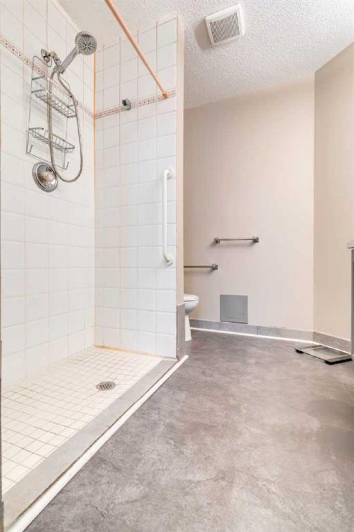 FULLY WHEELCHAIR ACCESSIBLE! This completely customized condo was designed at the build stage for fully independent wheelchair living. Offering 945 square feet, this bright, open concept corner unit is filled with natural light from large windows and only shares one wall, giving you both privacy and peace. The doorframe into the unit , onto the balcony and all interior doors are a full 36” wide so there are no barriers for a wheelchair to move around in the space. Plus the floor in the condo is a combination of laminate and vinyl plank….no carpet at all so movement is easy.