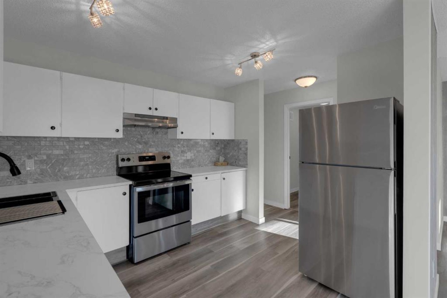 Don't miss out on this renovated, ground-level bungalow-style townhouse offering exceptional value and convenience. The heart of the home is the fully updated kitchen, showcasing sleek cabinetry, quartz countertops, a subway tile backsplash, and brand-new stainless steel appliances. The open-concept living and dining area is adorned with luxury vinyl plank flooring, recessed lighting, and a cozy wood-burning fireplace, creating a warm and inviting atmosphere. The spacious primary and secondary bedrooms provide a tranquil retreat, while the tastefully renovated 4-piece bathroom adds a touch of sophistication. A brand-new hot water tank adds peace of mind. Enjoy your south-facing patio, looking directly onto green space. Low condo fees include water. Located in an unbeatable area, this townhome is within walking distance to parks, schools, shopping at Marlborough Mall, restaurants, and major transit routes, including the LRT. Whether you're looking for convenience, connectivity, or a quick possession option, this move-in-ready home has it all. Don’t miss the opportunity to own this perfect blend of style, comfort, and functionality—book your showing today!