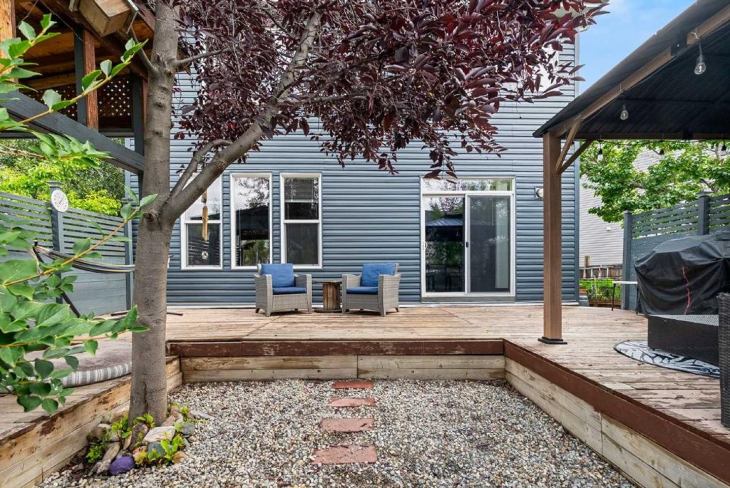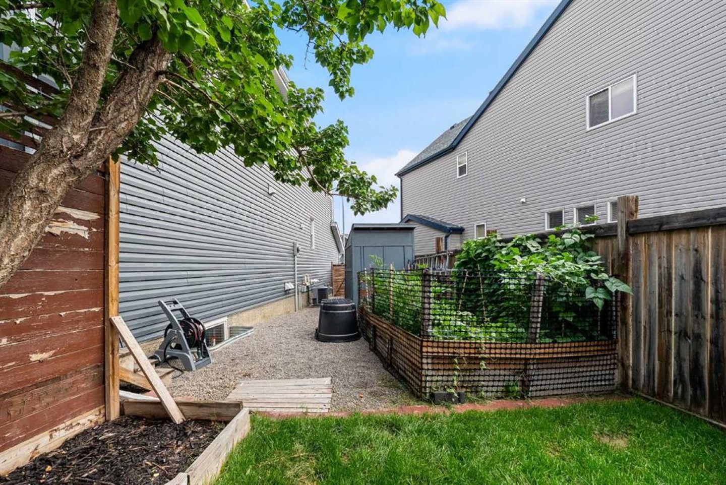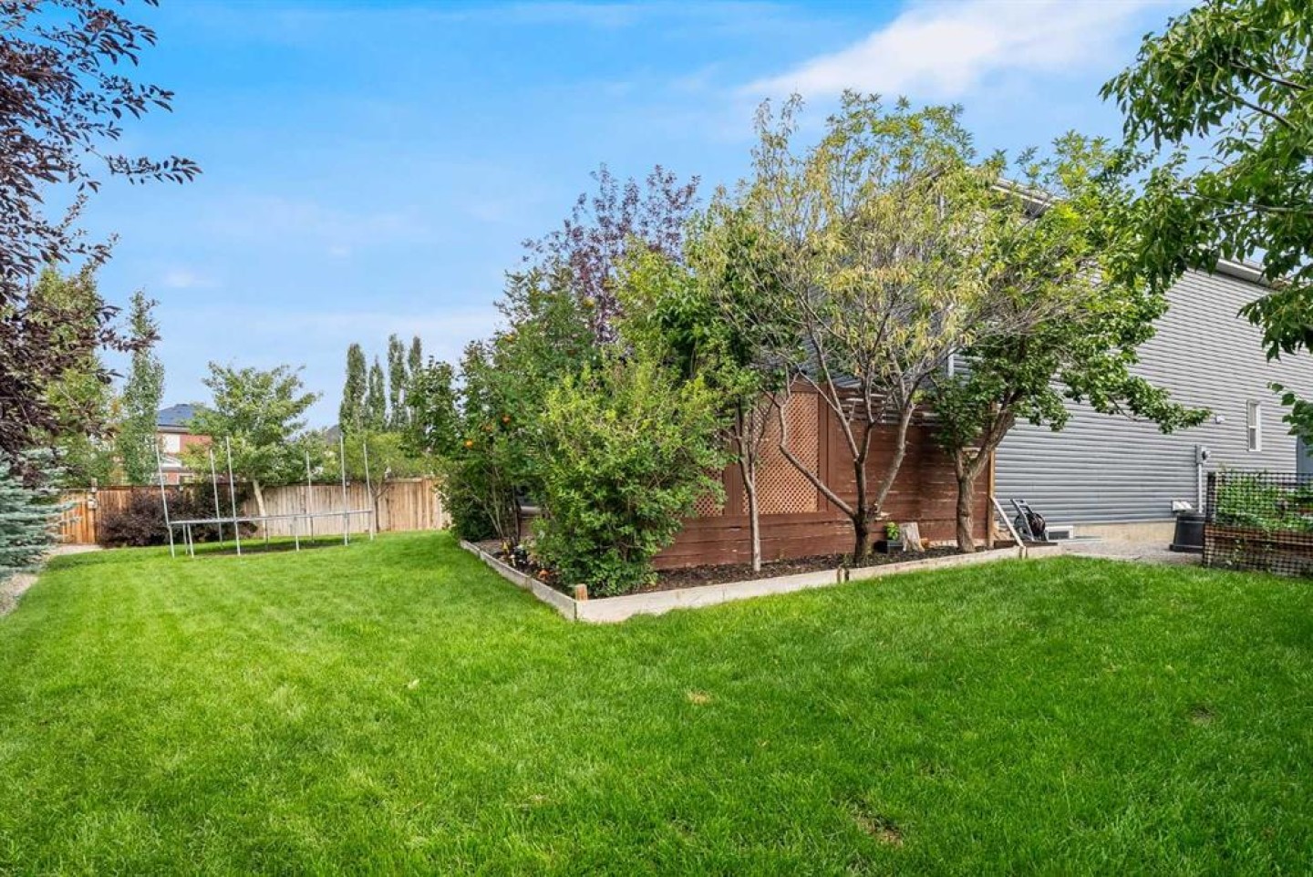 The pie-shaped backyard is a true retreat, with built-in garden beds on both sides, multiple fruit trees, and lush landscaping that creates a park-like setting. Located within walking distance to parks, ponds, schools, and shopping, with quick access to the ring road this home blends comfort, convenience, and style.