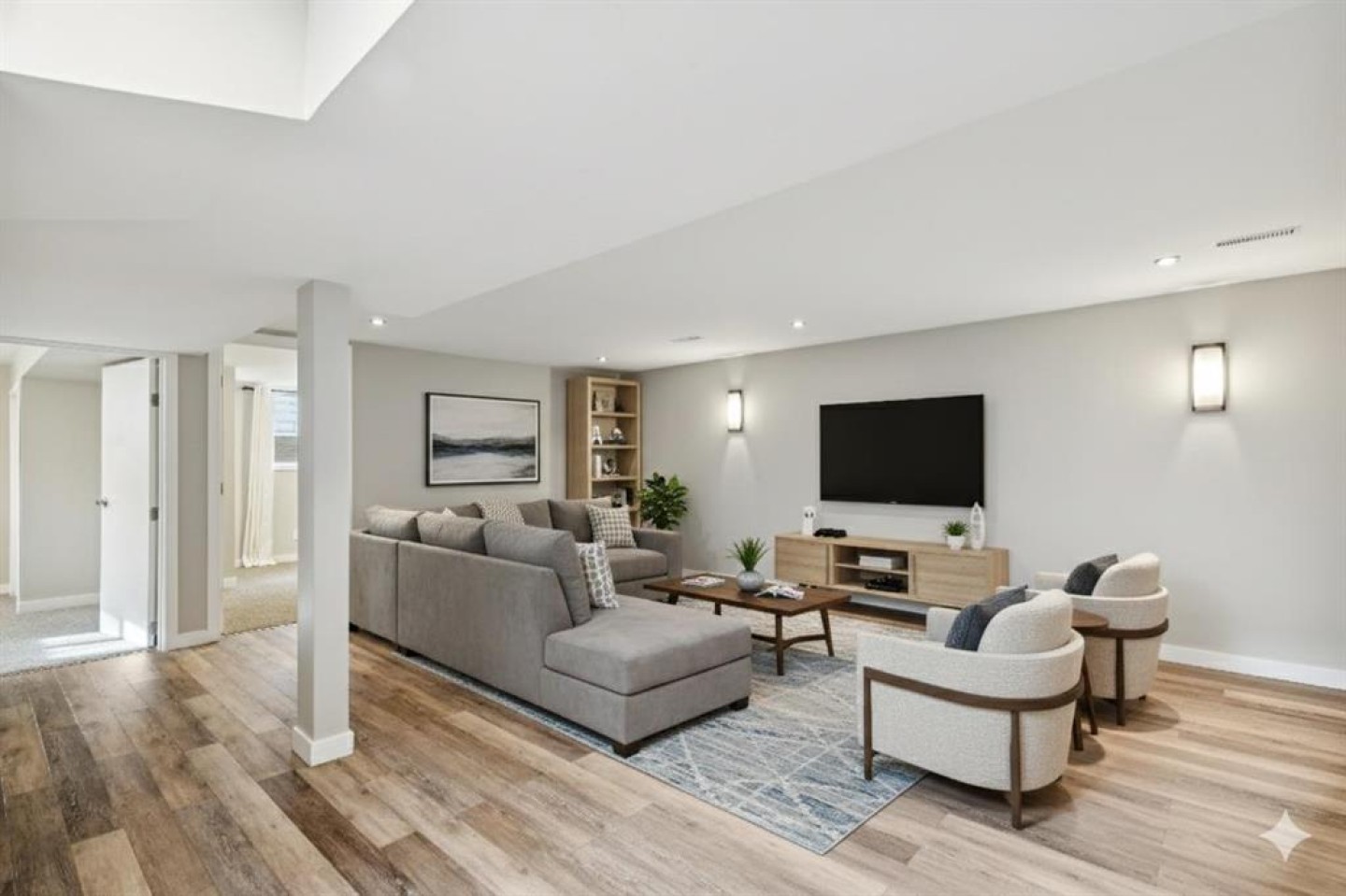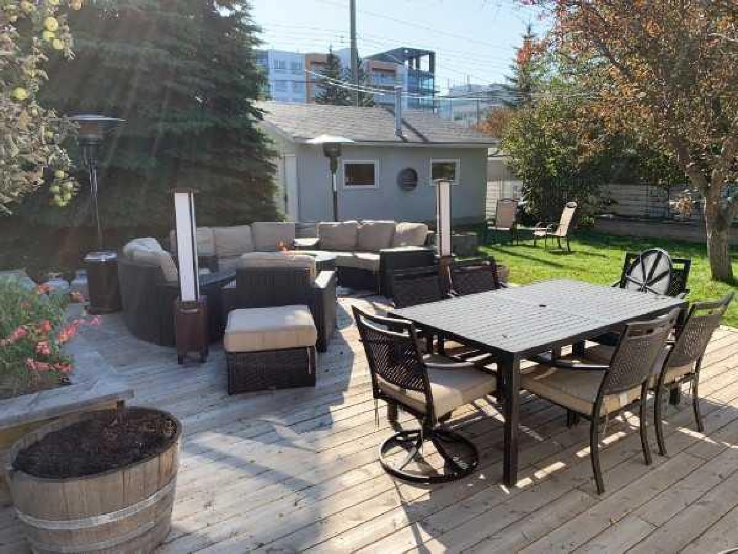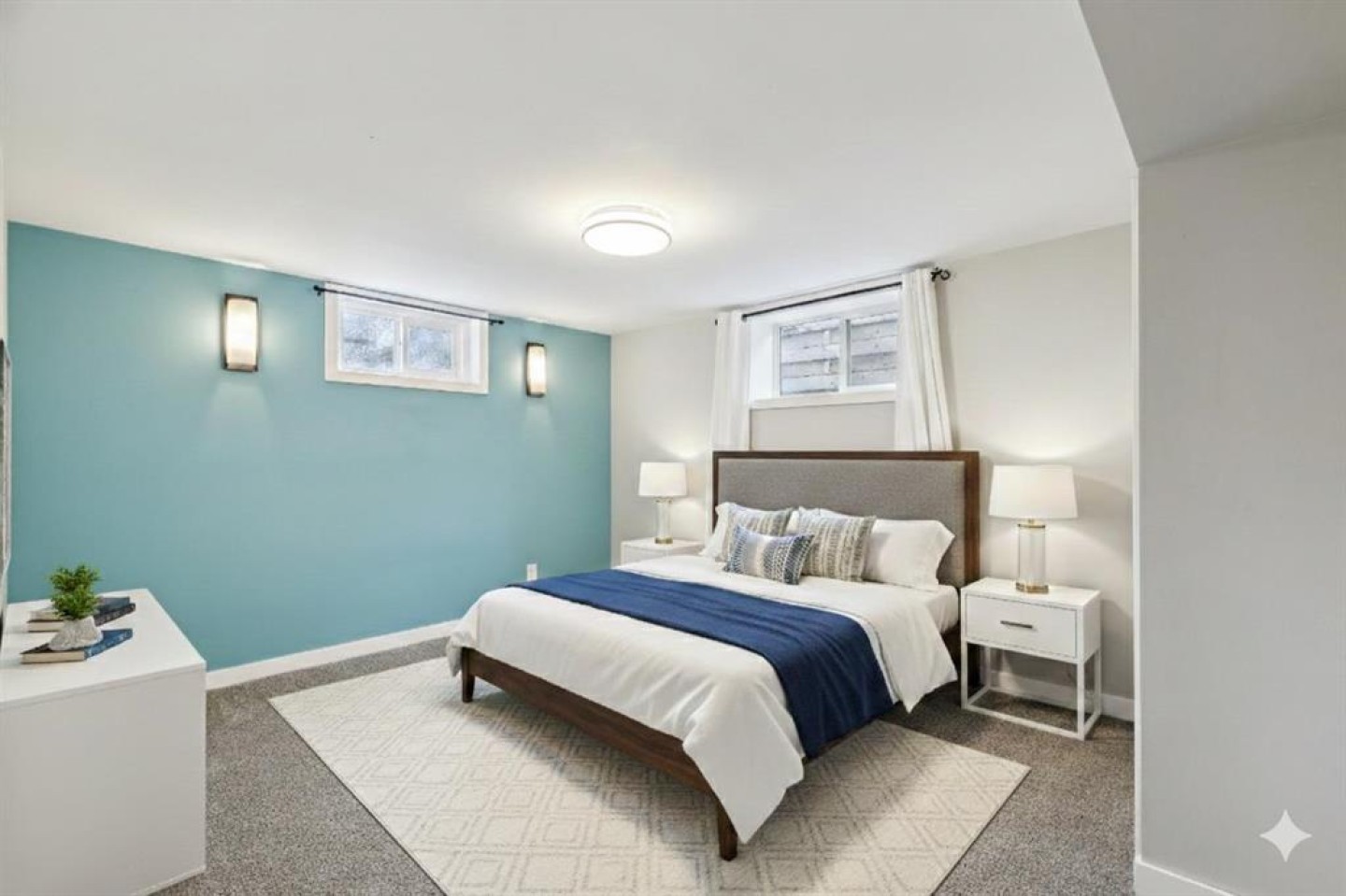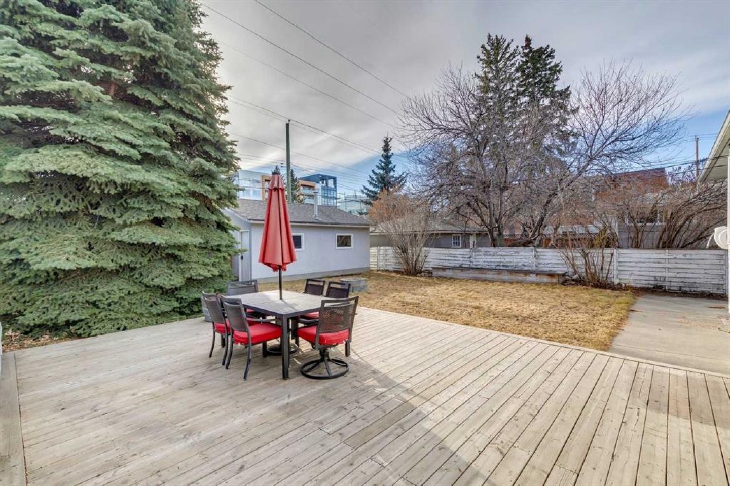 This upgraded and move-in-ready bungalow offers a rare combination of privacy and unbeatable walkability in the heart of Elboya. Situated directly across from the open green space of the St. Anthony school field, you’ll enjoy expansive views and no neighbours directly in front. The main floor is bright and inviting, featuring large living room windows that frame the park views. While maintaining a traditional layout, the dining room is perfectly situated beside the kitchen for easy entertaining and day-to-day flow. The main floor is highlighted by a large primary suite featuring extensive wall-to-wall built-in closets. Two additional good-sized bedrooms offer the perfect setup for children’s rooms or dedicated home offices. A renovated 3-piece bath completes the main level. The fully finished basement has been updated to include a modern laundry room, a spacious family room, an additional renovated full bathroom, and two large bedrooms. With a separate entrance and laundry situated outside the living area, the basement is well-configured for a potential legal suite (subject to City of Calgary discretionary approval and permitting). The private, south-facing backyard is designed for both relaxation and entertaining. A large tiered deck provides a perfect space for outdoor lounging and dining amidst perennial beds and a raspberry patch. A double detached heated garage provides comfort year-round, and a large gravel parking pad beside the garage accommodates two additional vehicles. Perfect for extra cars, a boat, or a small utility trailer. Experience the rare luxury of park-front peace and Britannia’s best amenities just steps from your front door.