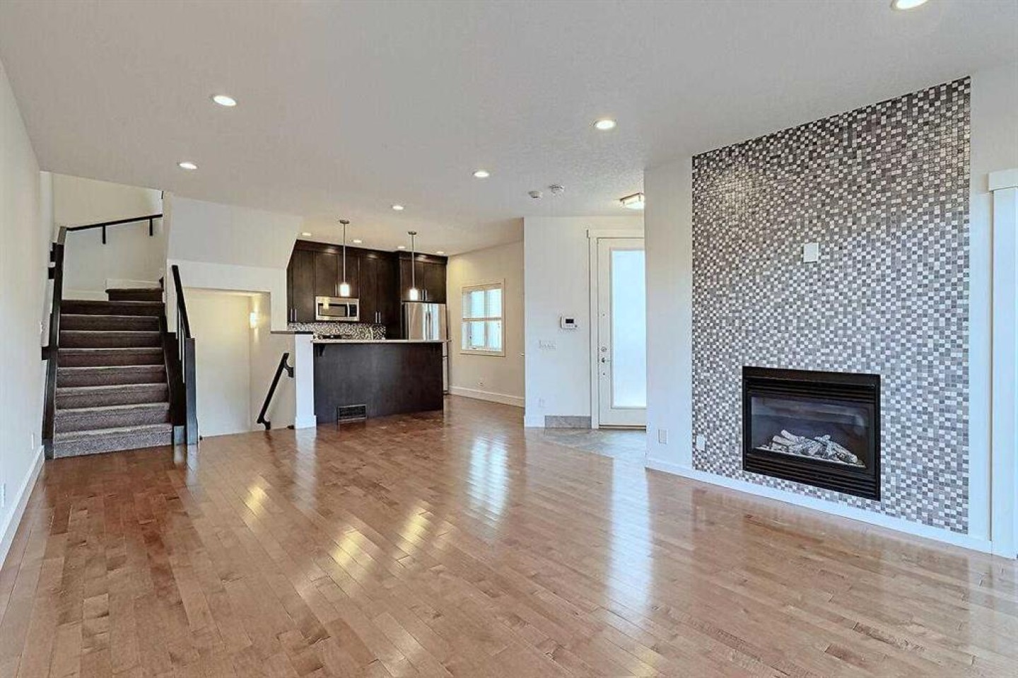 Immediate Possession Available. Stylish and well-maintained 3-bedroom, 3.5-bath townhouse offering a bright open floorplan with high ceilings and Makibois Maple hardwood throughout. Spacious front entry with walk-in closet. Living room features a gas fireplace and sliding doors to the private back deck and single detached insulated garage. Kitchen showcases Astoria Granite countertops, stainless steel appliances (new stove), tiled backsplash, dual sinks, pantry, and raised eating bar. Upper level includes two bedrooms with tiled en-suites and walk-in closets, skylight, ceiling fan, and convenient upper laundry. Fully finished basement with large family room, Third bedroom, rough-in for fourth bathroom, and ample storage. Air conditioning, Heat pump cooling system, and sealed sump pump. Back deck for BBQ’s, entertaining and space for pets. Excellent location close to downtown, transit, shopping, restaurants, and amenities. Please see full Virtual Tour.