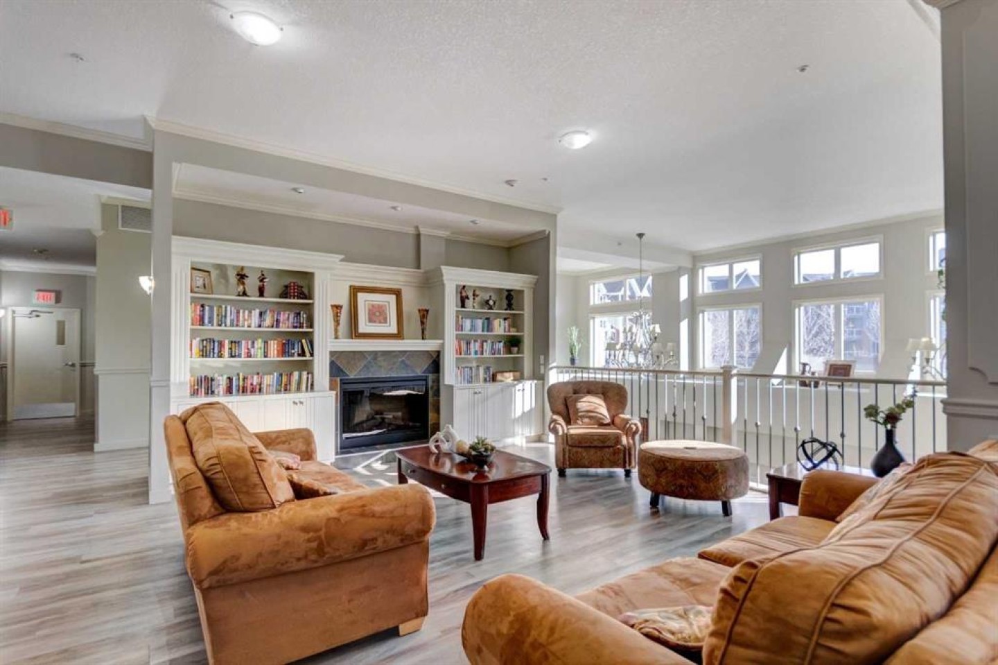 Exceptionally well-kept, top floor, south facing, one bedroom condo with central air conditioning, underground parking and storage locker, located in the highly sought after Sierras of Evergreen 55+ complex. This bright, open concept condo has a great layout and offers a spacious kitchen with corner pantry, plenty of cabinets and counterspace, with an adjacent dining space for an optional table. Enjoy the south facing views from the living room which has a gas fireplace and access out to the private, covered balcony with gas line for your BBQ. The spacious bedroom, with enough room for bedroom furniture plus a desk, has a walk-in closet. The 4-piece bathroom has a linen closet and is conveniently located beside the bedroom. In-suite laundry room with new washer and dryer offers extra space for storage. Heated, titled, underground parking stall is located close to the elevator. The storage locker is a fully enclosed room measuring approximately 5 x 8 and located in front of the parking stall. Reasonable condo fees include electricity, heat, water, and sewer - great to have those included! This pet friendly, very well managed 55+ complex has ample visitor parking, and many amenities including a swimming pool, hot tub, exercise room, wood working shop, car wash, party room, guest suites, meeting room, and several sitting rooms/fireplaces. Convenient location with great access to the ring road, parks, and shopping. If you are looking for a bright, top floor condo in a friendly, well managed complex then this condo may be the one for you!