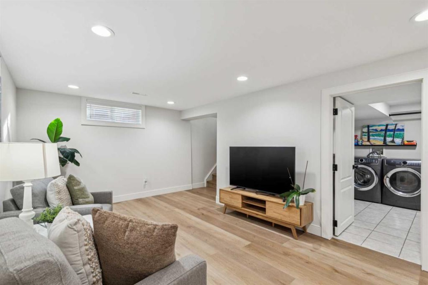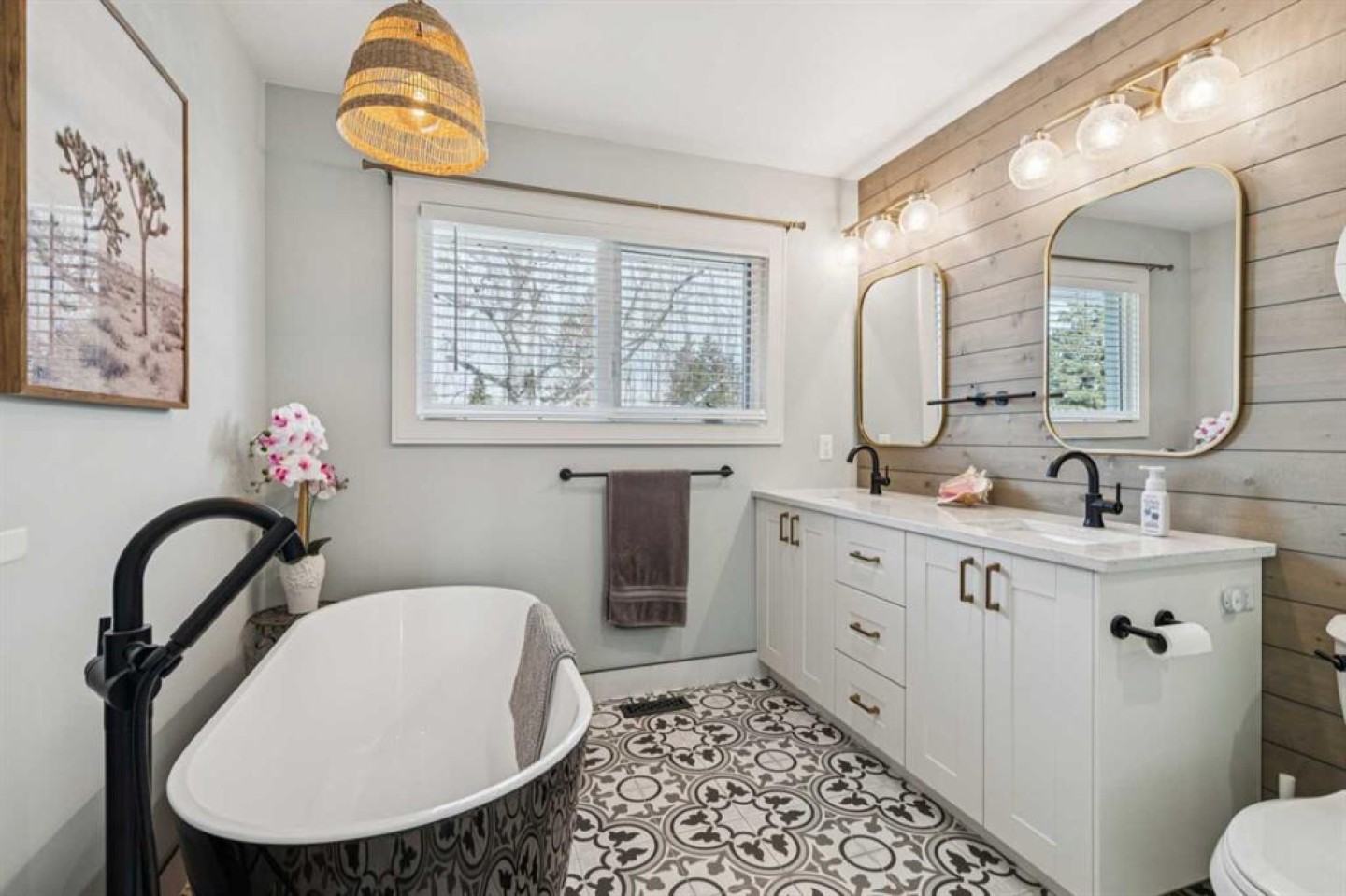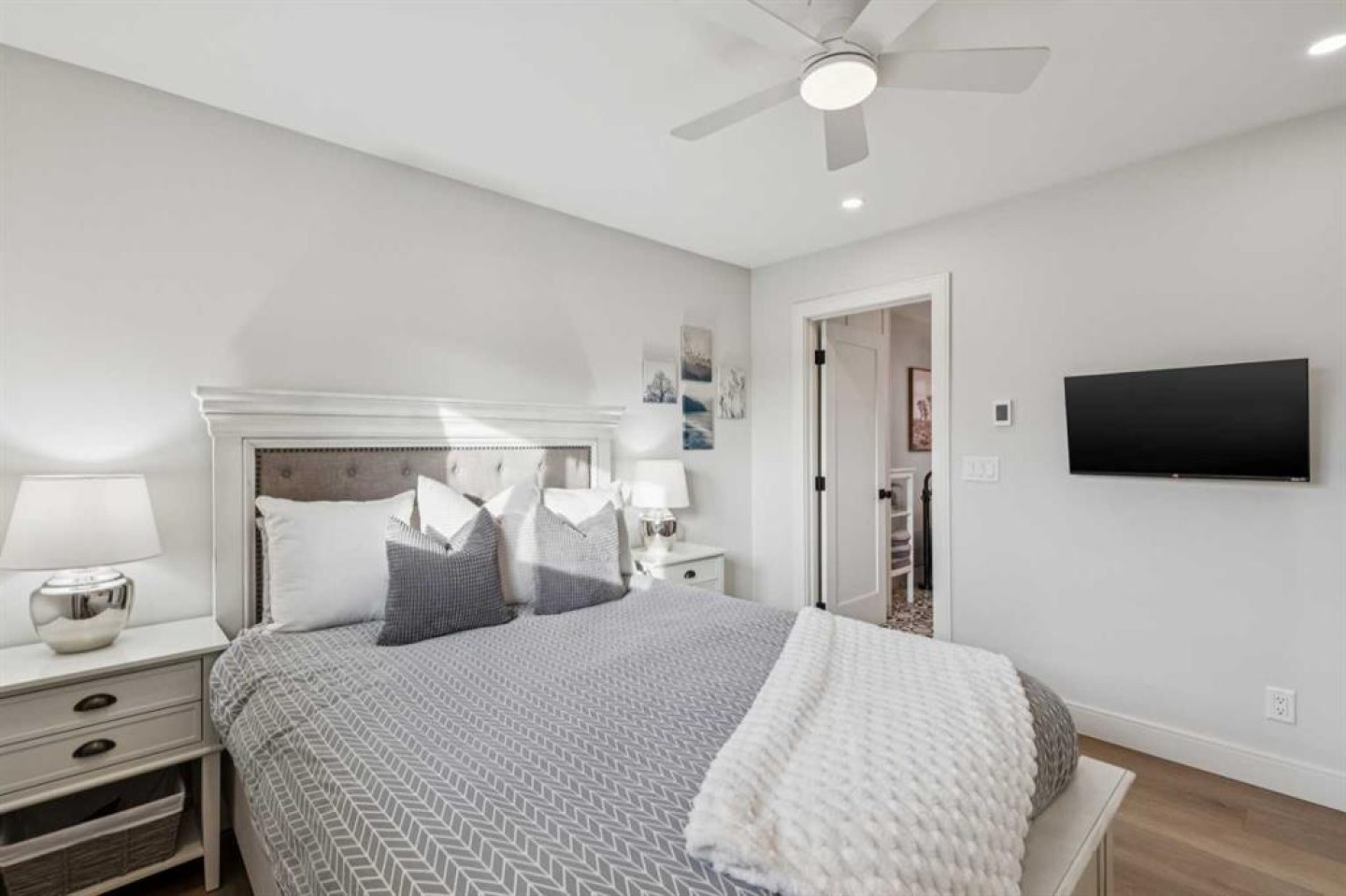 Perfectly situated at 412 Athlone Rd SE, this bungalow has been transformed through a comprehensive "to the studs" renovation where every detail was crafted from the ground up. From the moment you arrive, the striking Hardie board exterior and professional landscaping hint at the quality within. Inside, the layout is defined by a seamless flow and an abundance of natural light, anchored by luxury vinyl plank flooring with premium cork soundproofing that runs throughout the main level. The heart of the home is a chef-inspired kitchen that balances high-end function with show-stopping style. A massive quartz waterfall island serves as the social hub, complemented by an Italian ceramic backsplash, a custom range hood, and a suite of professional KitchenAid appliances. A bright skylight overhead ensures the space feels airy and open, while the adjacent sunroom—featuring a Pacific Energy wood-burning stove—offers a cozy sanctuary for any season. The primary suite is a true retreat, offering custom built-ins and a spa-inspired ensuite that rivals a luxury hotel. Indulge in the standalone deep soaker tub or the curbless glass-enclosed rain shower, all set against a backdrop of heated Italian ceramic floors and designer Delta fixtures. This level is thoughtfully designed for versatility, featuring an additional well-appointed bedroom and a refined 4-piece main bathroom, also elegantly finished with Italian ceramic tile and heated floors. The living space extends into the fully developed basement, where you will find two more generous bedrooms and a protected Dricore subfloor system for year-round warmth. This level also hosts a large, dedicated laundry room equipped with ample storage and high-efficiency Electrolux appliances. Beyond the aesthetic, the home’s infrastructure has been completely modernized with R60