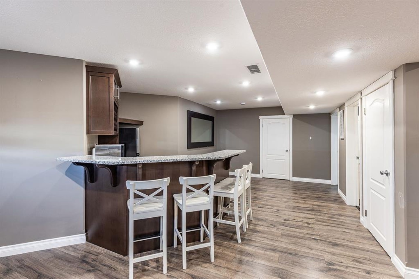 Downstairs, the fully finished basement expands your living space with two additional bedrooms, a modern 3-piece bathroom with walk-in shower, and a well-appointed bar and entertainment area, making it an ideal space for hosting guests, movie nights, or accommodating family and visitors.