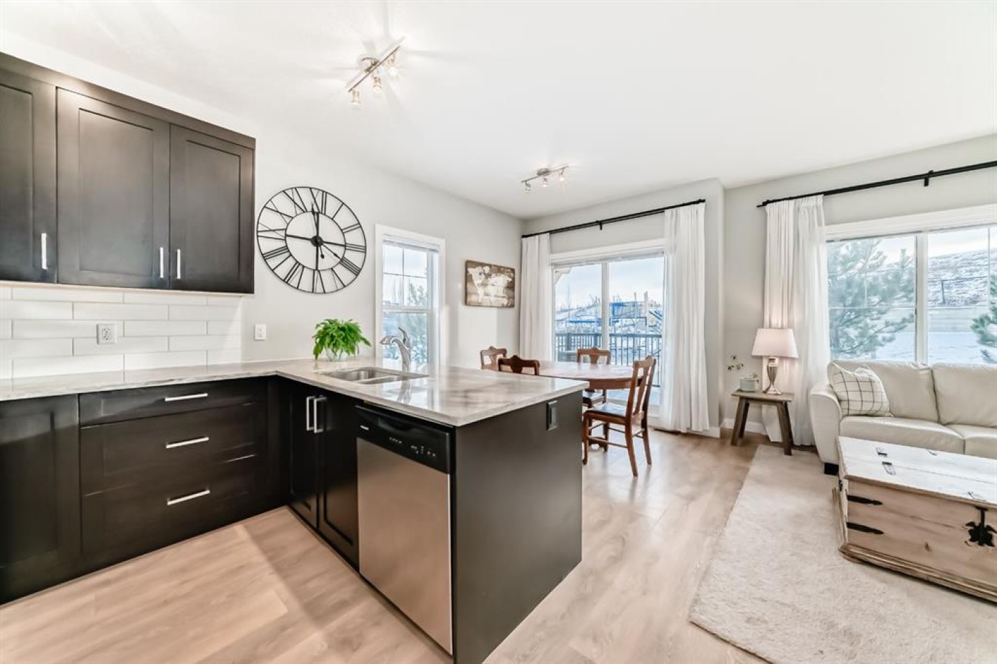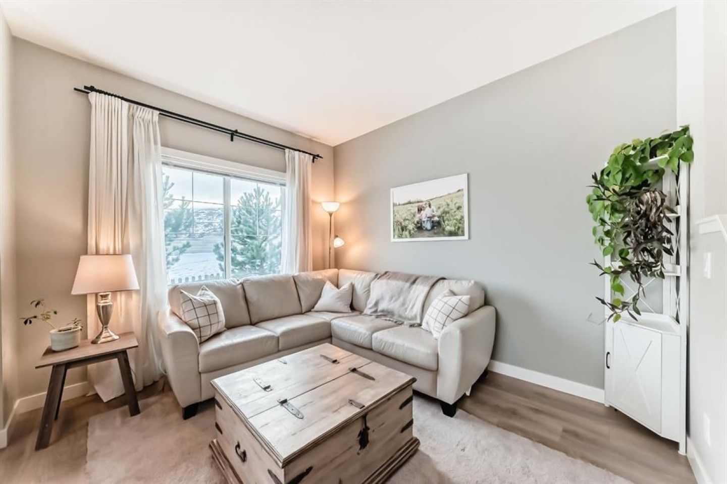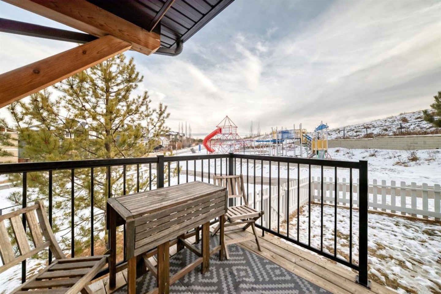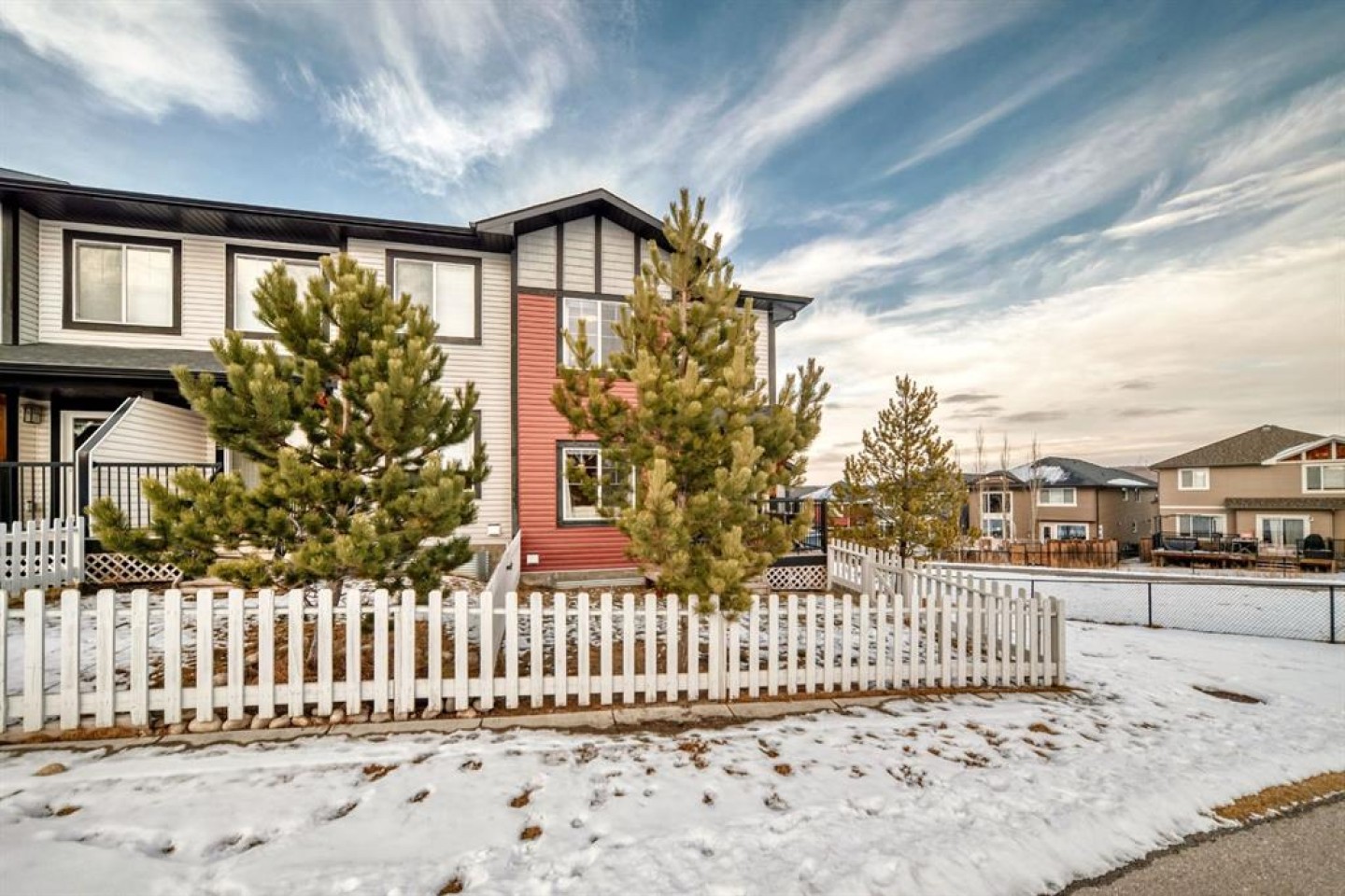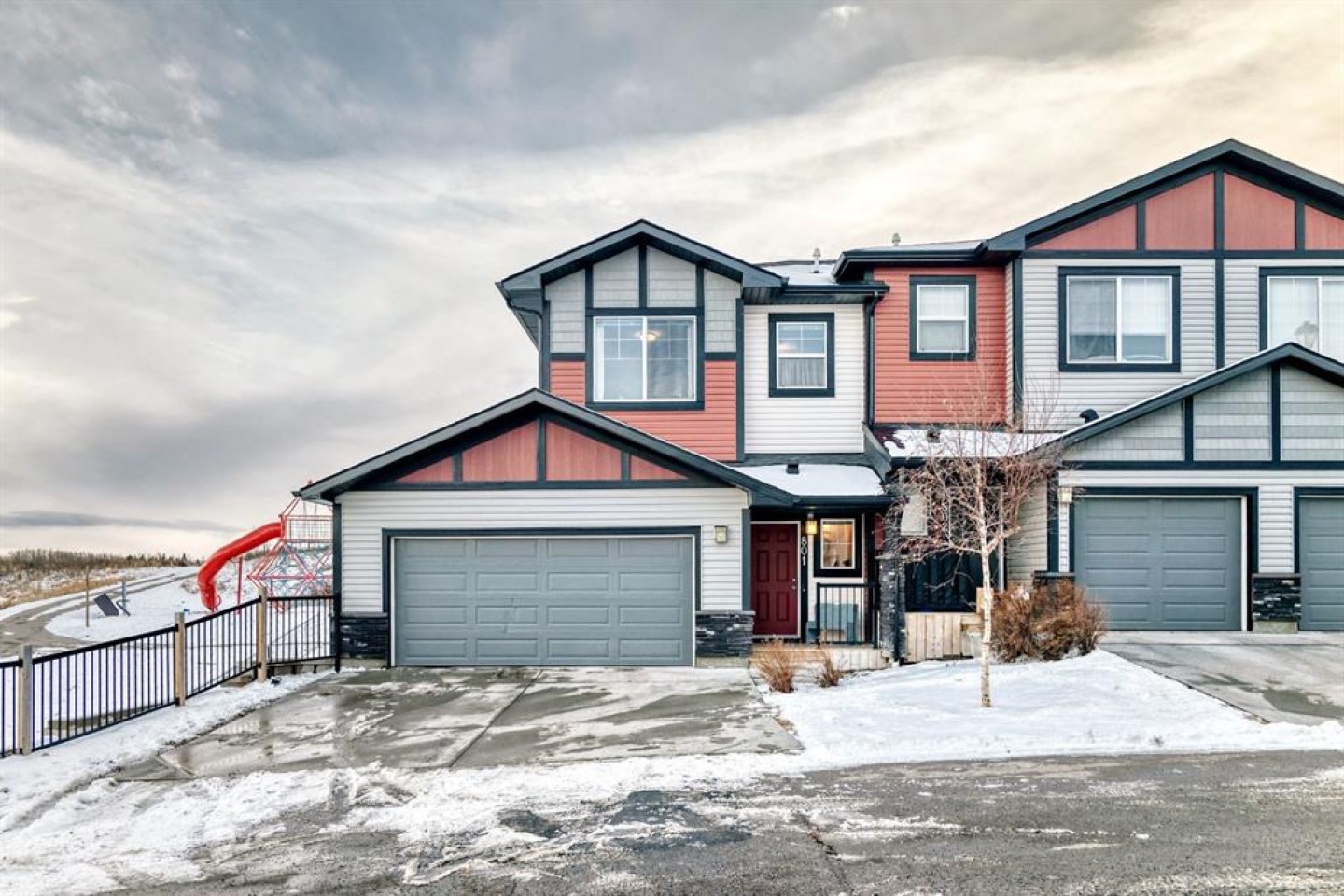 Rare opportunity in Jumping Pound! location, location, location! Beautifully maintained and updated End Unit townhome with 1,156 sq. ft of well though out living space, and backing directly onto South facing green space and a playground, with no neighbours behind. This sought after home features a rare double attached garage, open plan kitchen/dining/living room with easy access to the south facing backyard from the dining area, and abundant natural light throughout. Upstairs offers a primary bedroom with walk in closet and ensuite, plus two additional good sized bedrooms, a full family bathroom, and convenient upper level laundry. Steps from walking and biking paths and just minutes to the Bow River; ideal for outdoor enthusiasts and commuters alike.