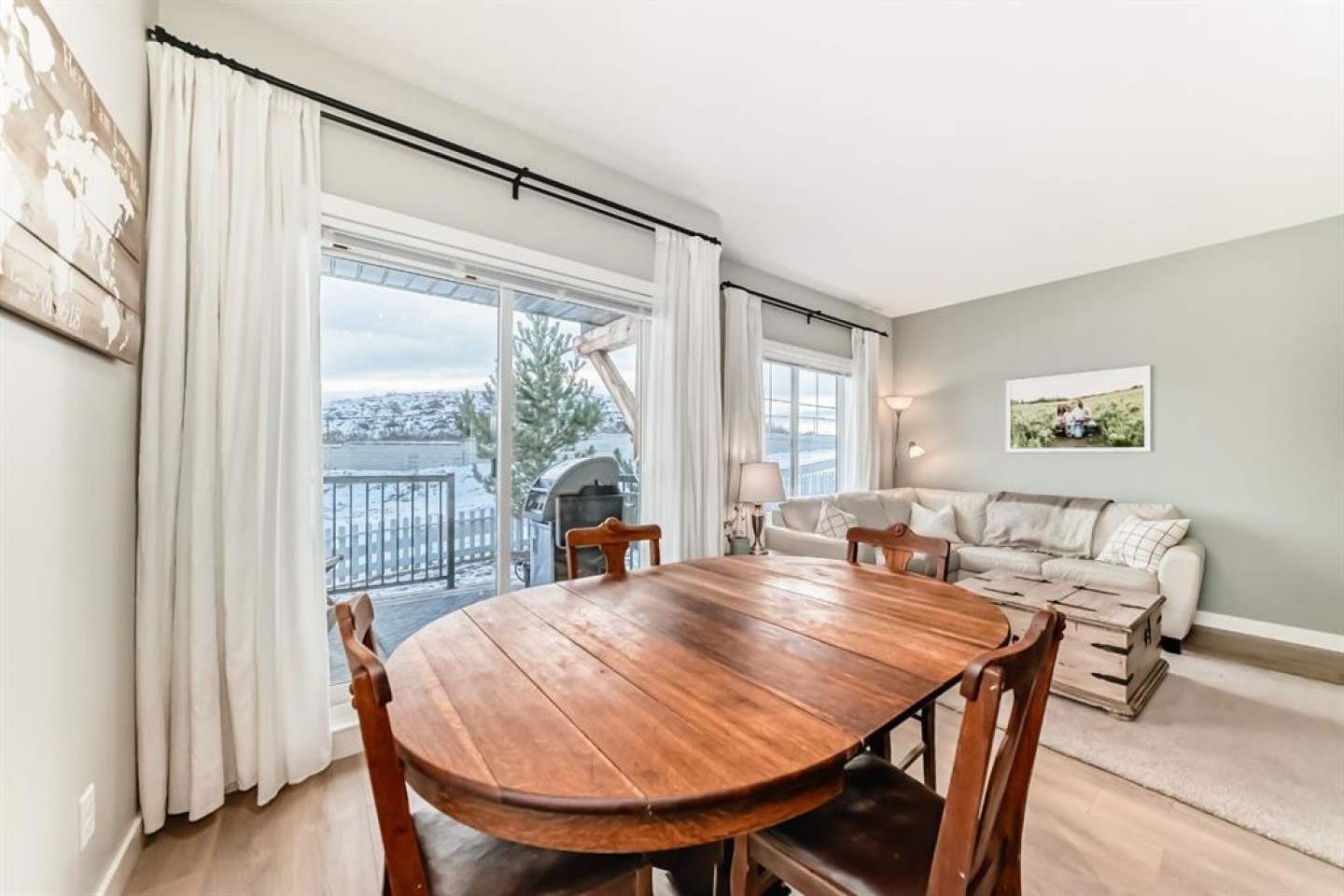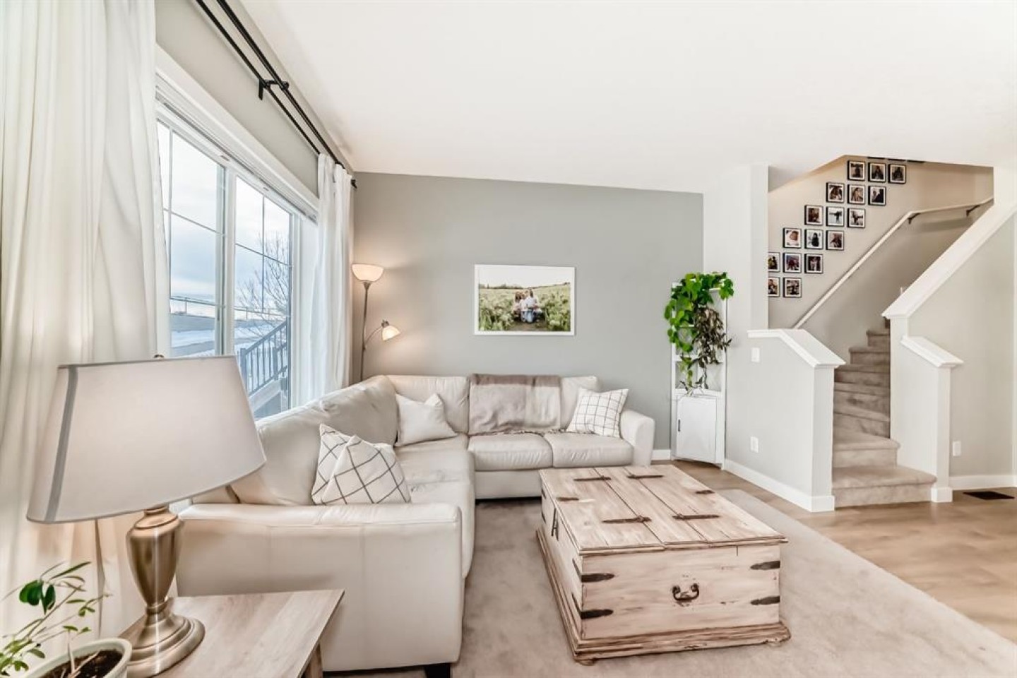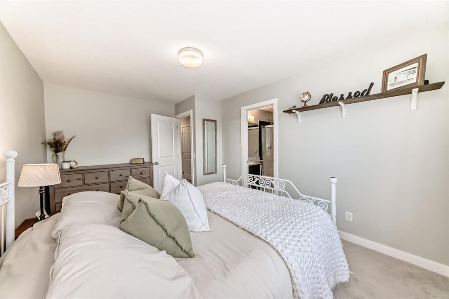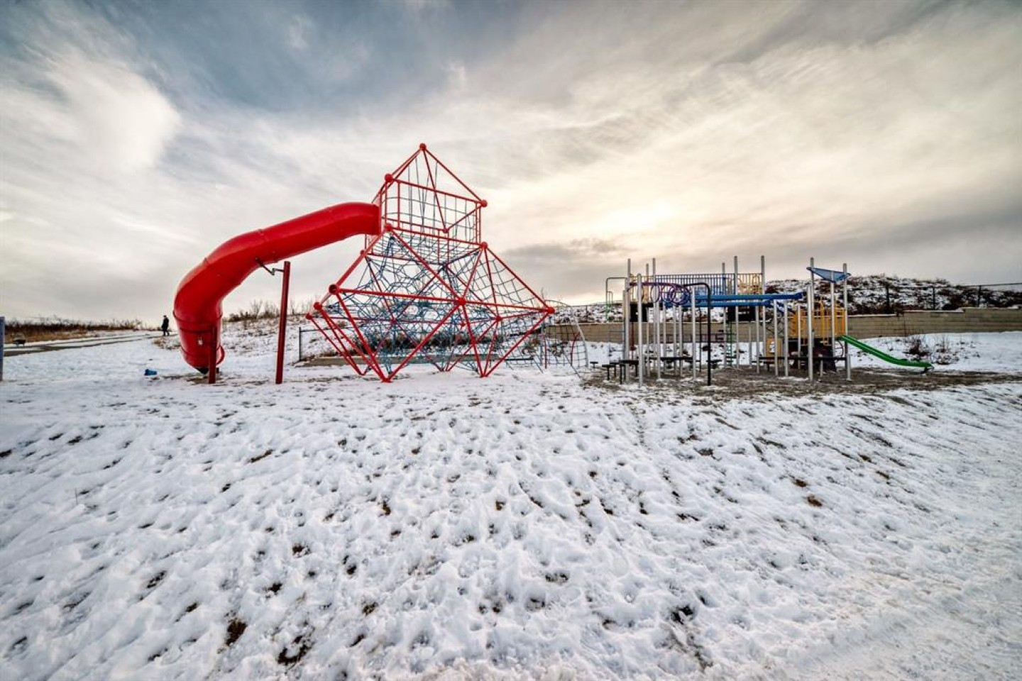 Rare opportunity in Jumping Pound! location, location, location! Beautifully maintained and updated End Unit townhome with 1,156 sq. ft of well though out living space, and backing directly onto South facing green space and a playground, with no neighbours behind. This sought after home features a rare double attached garage, open plan kitchen/dining/living room with easy access to the south facing backyard from the dining area, and abundant natural light throughout. Upstairs offers a primary bedroom with walk in closet and ensuite, plus two additional good sized bedrooms, a full family bathroom, and convenient upper level laundry. Steps from walking and biking paths and just minutes to the Bow River; ideal for outdoor enthusiasts and commuters alike.
