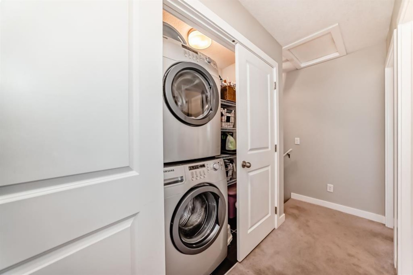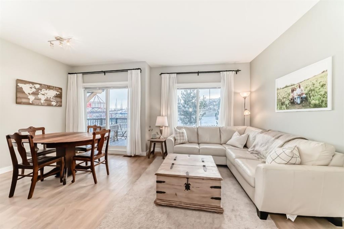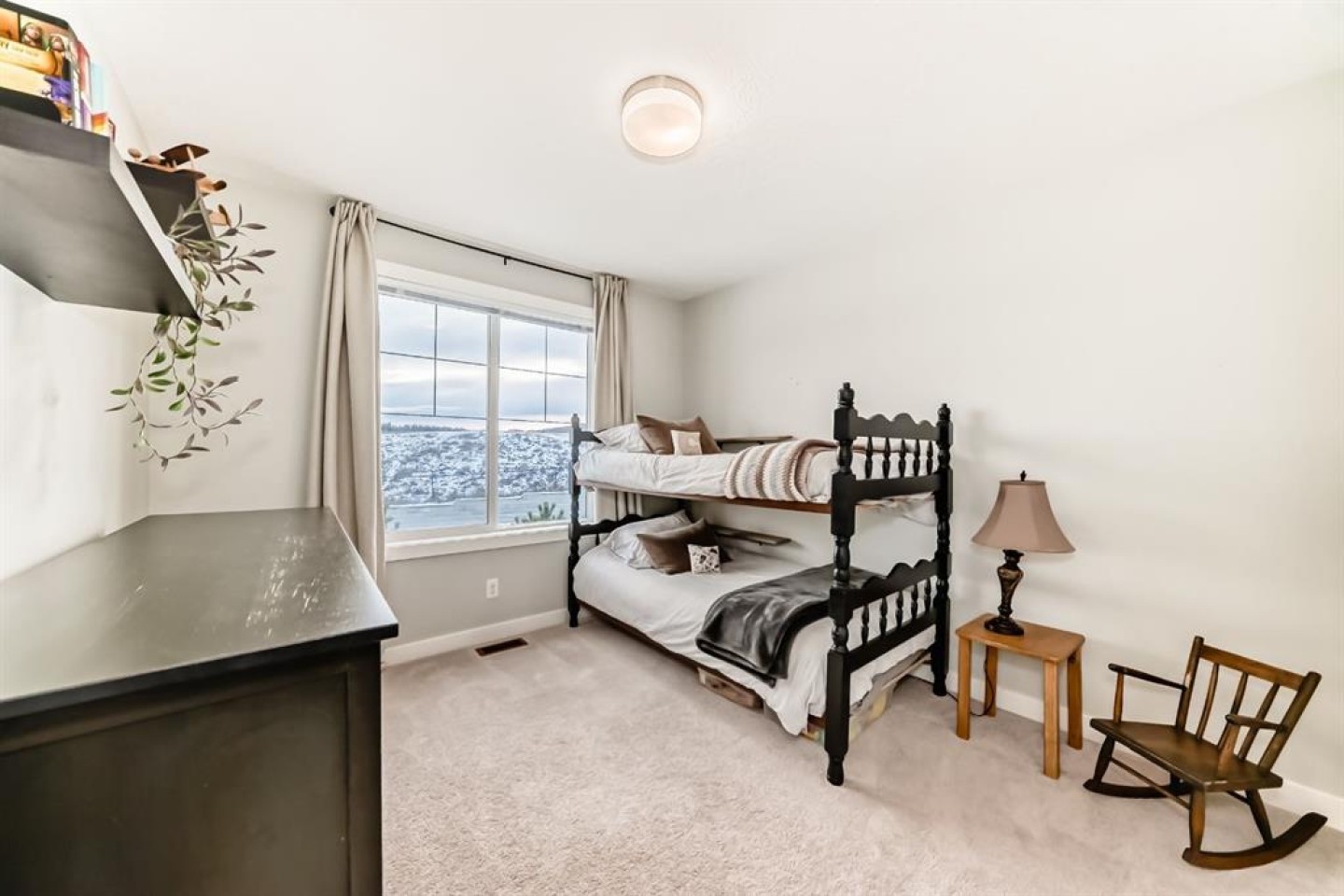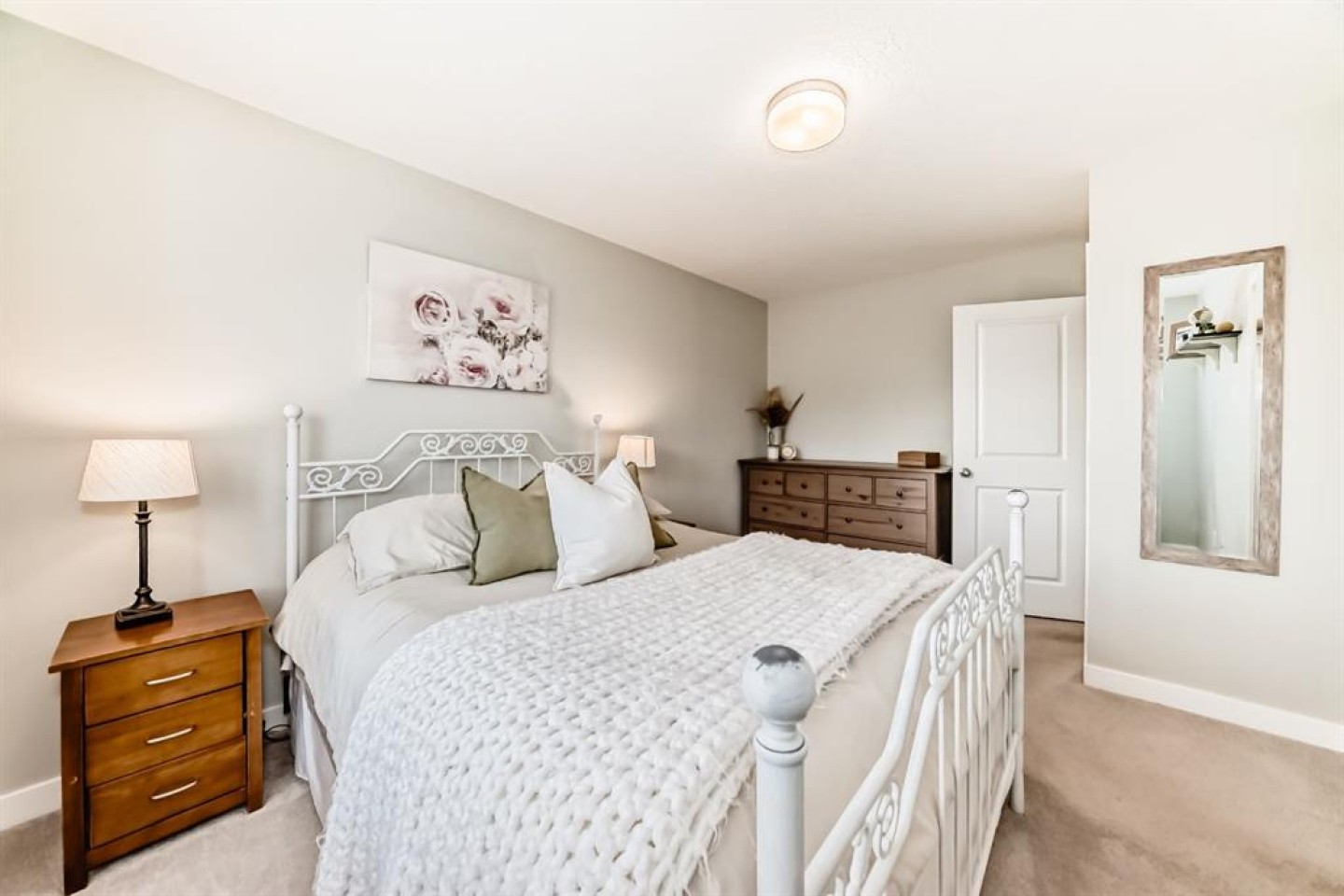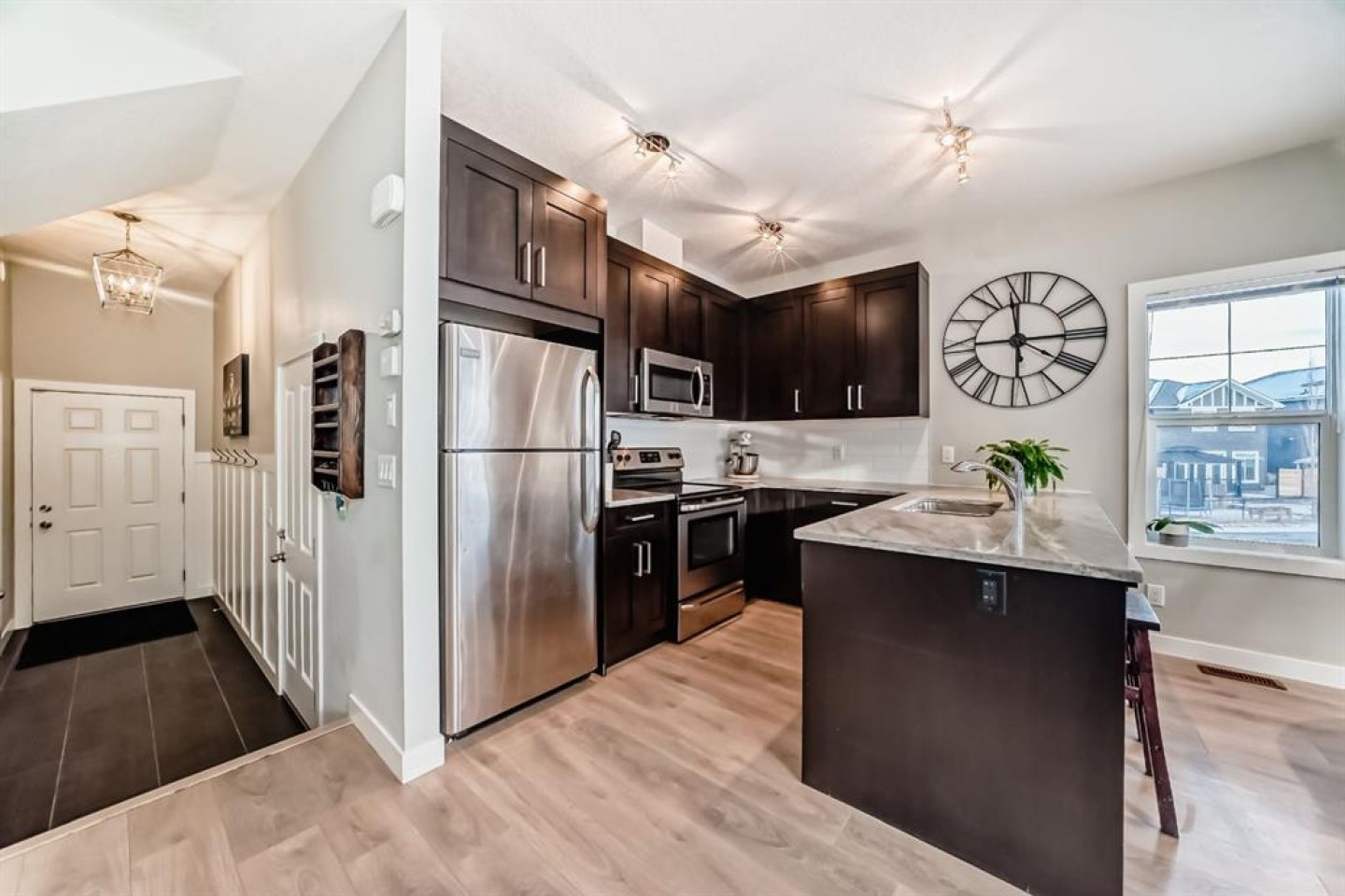 Rare opportunity in Jumping Pound! location, location, location! Beautifully maintained and updated End Unit townhome with 1,156 sq. ft of well though out living space, and backing directly onto South facing green space and a playground, with no neighbours behind. This sought after home features a rare double attached garage, open plan kitchen/dining/living room with easy access to the south facing backyard from the dining area, and abundant natural light throughout. Upstairs offers a primary bedroom with walk in closet and ensuite, plus two additional good sized bedrooms, a full family bathroom, and convenient upper level laundry. Steps from walking and biking paths and just minutes to the Bow River; ideal for outdoor enthusiasts and commuters alike.
