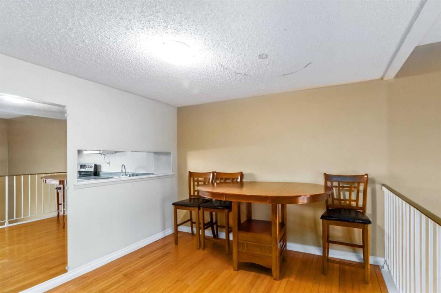 The next level features a dining area overlooking the living room, creating an open and connected feel. The kitchen offers ample counter and cupboard space, along with a sizeable pantry to meet all your storage needs. A convenient 2-piece bathroom completes this level.