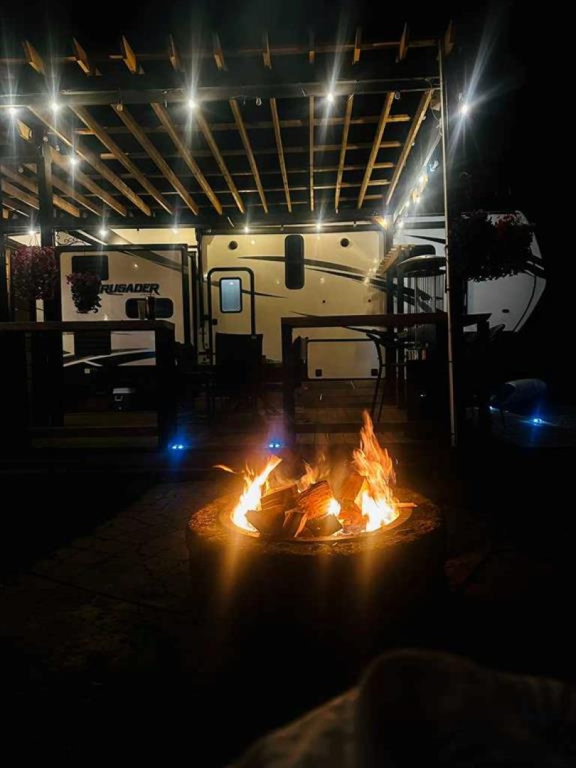 BBQ gas line, Built-in Barbecue, Fire Pit, Gray Water System, Lighting, Misting System, Outdoor Kitchen, Playground, RV Hookup
