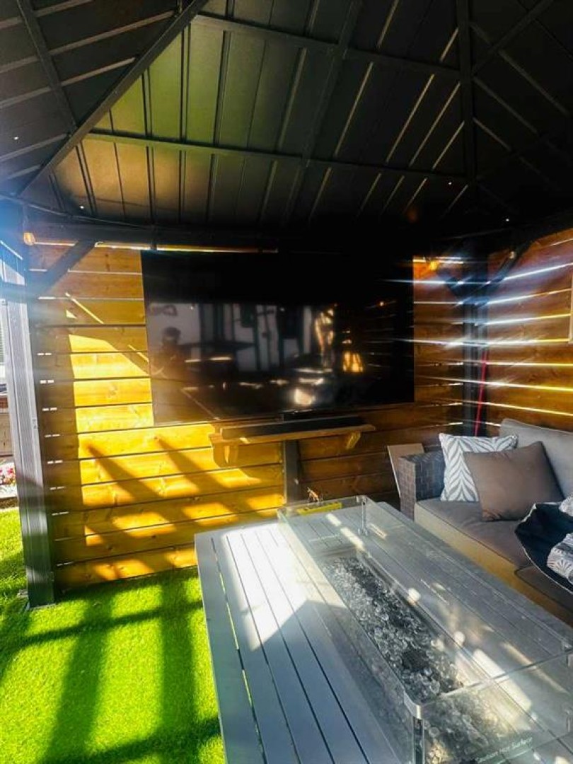 BBQ, OUTSUDE KITCHEN, PERGOLA, GAZEBO 75" w/ High DEF , SHED COFFEE WINE STATION