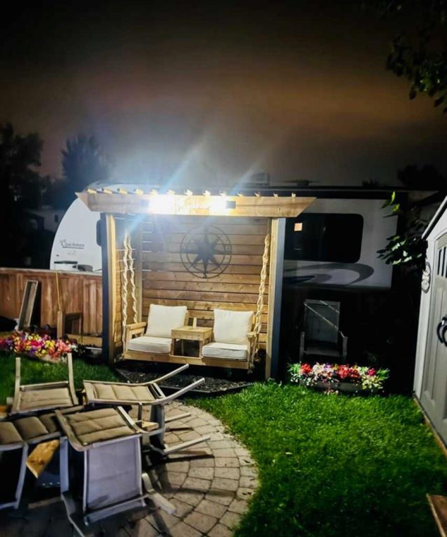 Lot:   212 on Dream Street Oasis Grove Golf & RV Resort, 25 minutes from Auburn Bay or Mahogany  Range Rd 254, Wheatland County, AB  including 39' Prime Time  Crusader and 50 x 50 lot with outdoor kitchen, Gazebo, 13' Pergola, Shed and Custom Coffee/Wine Station  2 bedrooms 2 bathrooms, 5th Wheel  2020 Primetime Crusader 395 BHL  Click Link  https://share.google/Oqkxq9swbbIPLMlOK Life time Golf Membership for 2 people  Located just south of Strathmore and approximately 35 minutes southeast of Calgary,Oasis Grove Golf & RV Resort offers the perfect escape from city life. This sought-after resort boasts a vibrant social community with endless opportunities to relax and unwind — whether you’re cooling off in the pool, enjoying time at the beach, Pickle ball or teeing off for a round of golf, or spending evenings gathered around the fire. This lot has been exceptionally well maintained and clearly reflects pride of ownership. From the quality workmanship to the beautifully landscaped outdoor space, this property truly stands out. The trailer was purchased brand new in August 2020 and features all the best upgrades, with warranty coverage still in place until 2027. Everything SOLD and a package LOT and TRAILER The purchaser will be responsible for applicable transfer fees and the purchase of the Lifetime Membership, which includes two golf memberships and one voting right. Resort amenities include a clubhouse with showers and laundry facilities, a convenience store for everyday essentials, a dog park for your four-legged companions, Swimming Pool, Pickle ball/ Basketball Courts .Kids Playground and a small visitor campground available for friends and family. This is a fantastic opportunity to enjoy resort living at its finest — a perfect place to relax, connect, and make lasting memories  Lot Size:   50 x 49   Lot has 30-amp power 8x7 Resin Shed 8ft tall 30 x 20 Composite deck.  12x 10 Gazebo with custom wood interior 70" High Definition TV for sports nights inside Fire table and Patio furniture,Summer Roll up/down shades, winter canvas on all 4 sides rear walk up bar 500lb Propane Tank, New Brick fire pit, with 14' round layed brick seating area ,Beautiful 13ft high  Pergola with Edison lights and water mist system for those  hot summer days.  Full Wrap Around Bar area with Chairs ,Full outdoor kitchen  with covered mini pergola  propane  gas BBQ, Cook station and sink, bar fridge  hooked up too 500lb tank ,7' metal patio table with 6 chairs( 2 years old) Gorgeous landscaping, 50' x 12'  Riverstone decorative rock with double underlay gravel driveway with golf cart parking pad, 360 degrees security system works with smart phone, Starlink satellite system $140/month (this can be negotiated ) Trailer Details: 2020 Primetime Crusader 395 BHL https://share.google/Oqkxq9swbbIPLMlOK 3 Slides, 2 powered awnings with led lights,1st owner, purchased in August 2020  New $99,000.  Beautifully designed with island sink, lots of storage, panty.I
