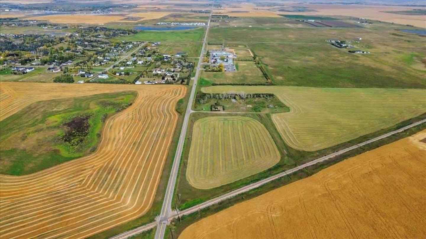 CENTRAL TO EXISTING INFRASTRUCTURE, HIGHWAYS, and future growth. Located adjacent to CHESTERMERE HIGH SCHOOL - Less than 1km east of Chestermere - 1.7km south of Trans-Canada Highway - 6.5km east of Calgary - and 12.5km west of the future De Havilland Field. Access to this land is DIRECT FROM HIGHWAY 791. There is bush along the north boundary and a rail line along the southeast. There are 19.99 ACRES of mostly farmed land. The clearing for the old homestead and farmyard is ideal for immediate use. There is a WIDE RANGE OF LAND USE OPTIONS (subject to approvals). This is a unique opertunity while Chestermere is growing and development in this area is increasing.