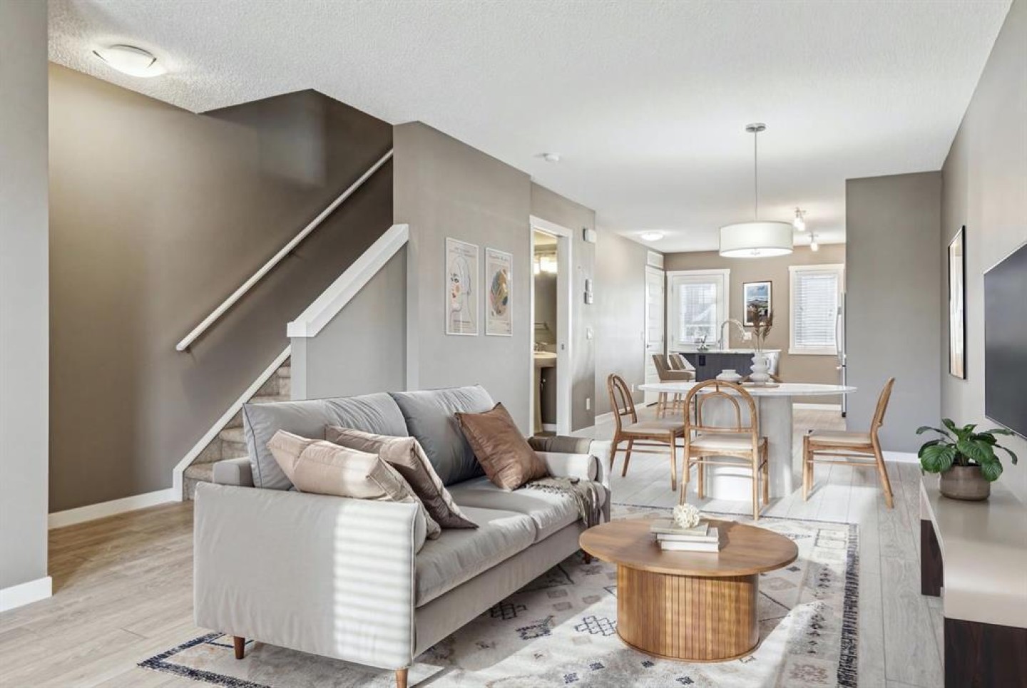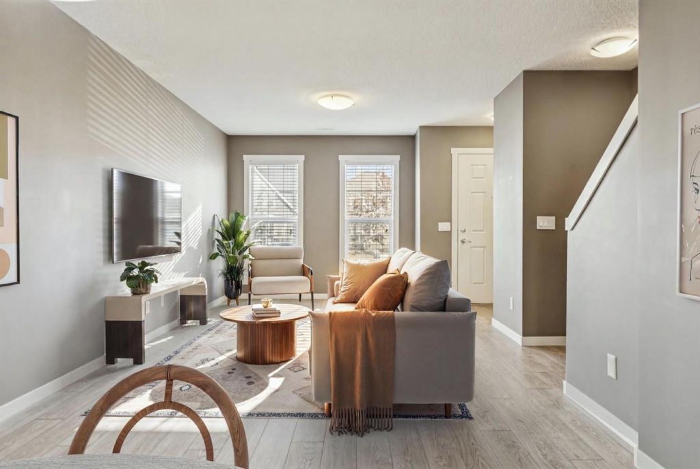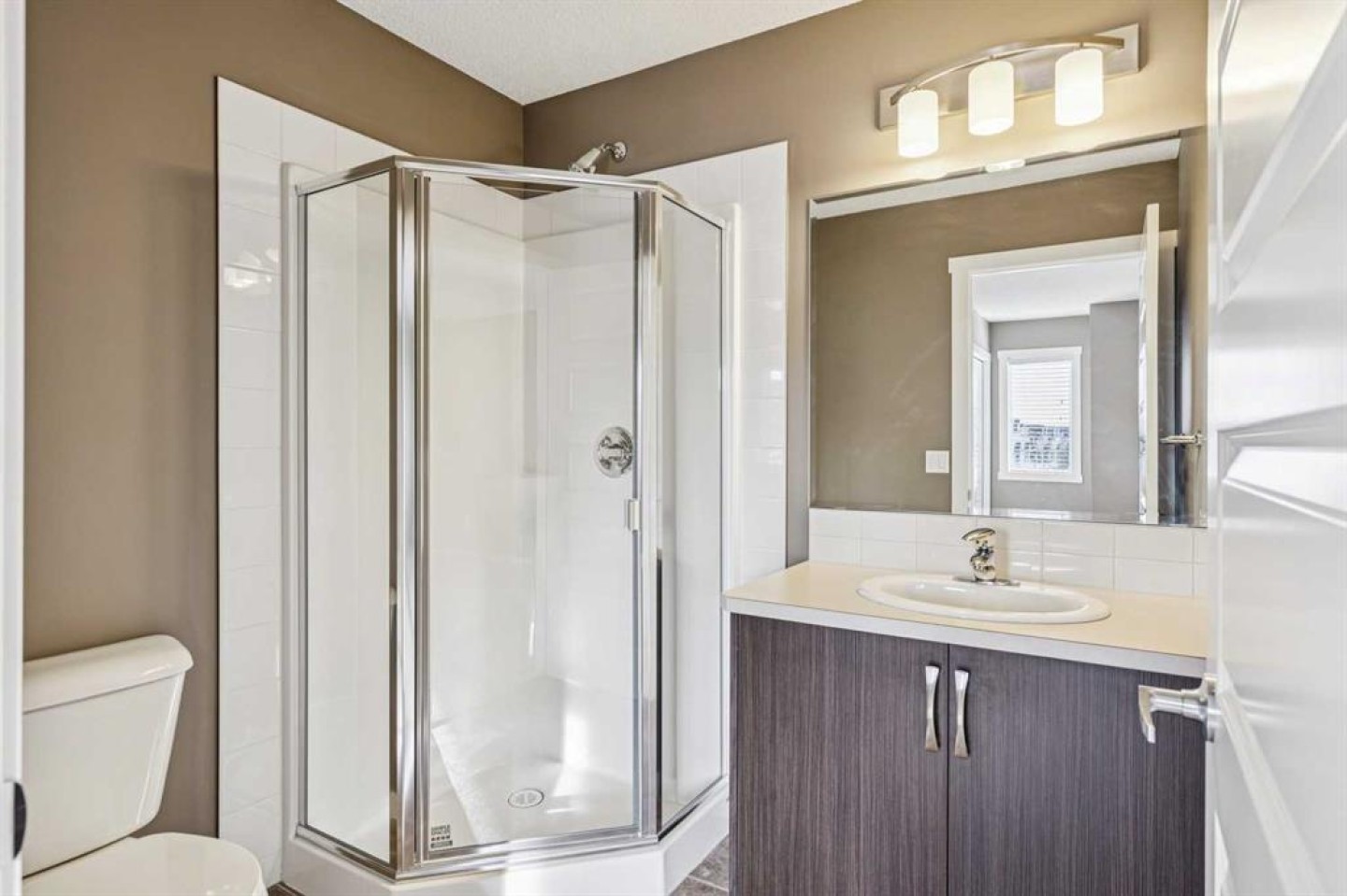 Steps from South Health Campus, minutes from Seton’s shops and restaurants, and in the heart of Auburn Bay’s lake community, your new home has it all. This 2 BED/2 BATH 2-storey is perfectly designed for modern living, with an open concept main floor that flows effortlessly from the spacious family room into the dining area and modern kitchen, complete with quartz countertops, stainless steel appliances, and a central island perfect for hosting or everyday prep. Step outside to your own private fenced yard and patio, with the added convenience of your parking stall right out front. Laminate flooring runs throughout the main level, along with a tucked-away 2-piece powder room. Upstairs, two generously sized bedrooms each feature a private ensuite, ideal for guests, roommates, or a home office setup. A pull-down attic stairway offers bonus storage rarely found in townhomes. Located in a well-managed complex with LOW CONDO FEES, this is an incredible opportunity to own in one of Calgary’s most desirable lake communities, perfect for those who work at South Health Campus or love the energy of Auburn Bay and Seton.