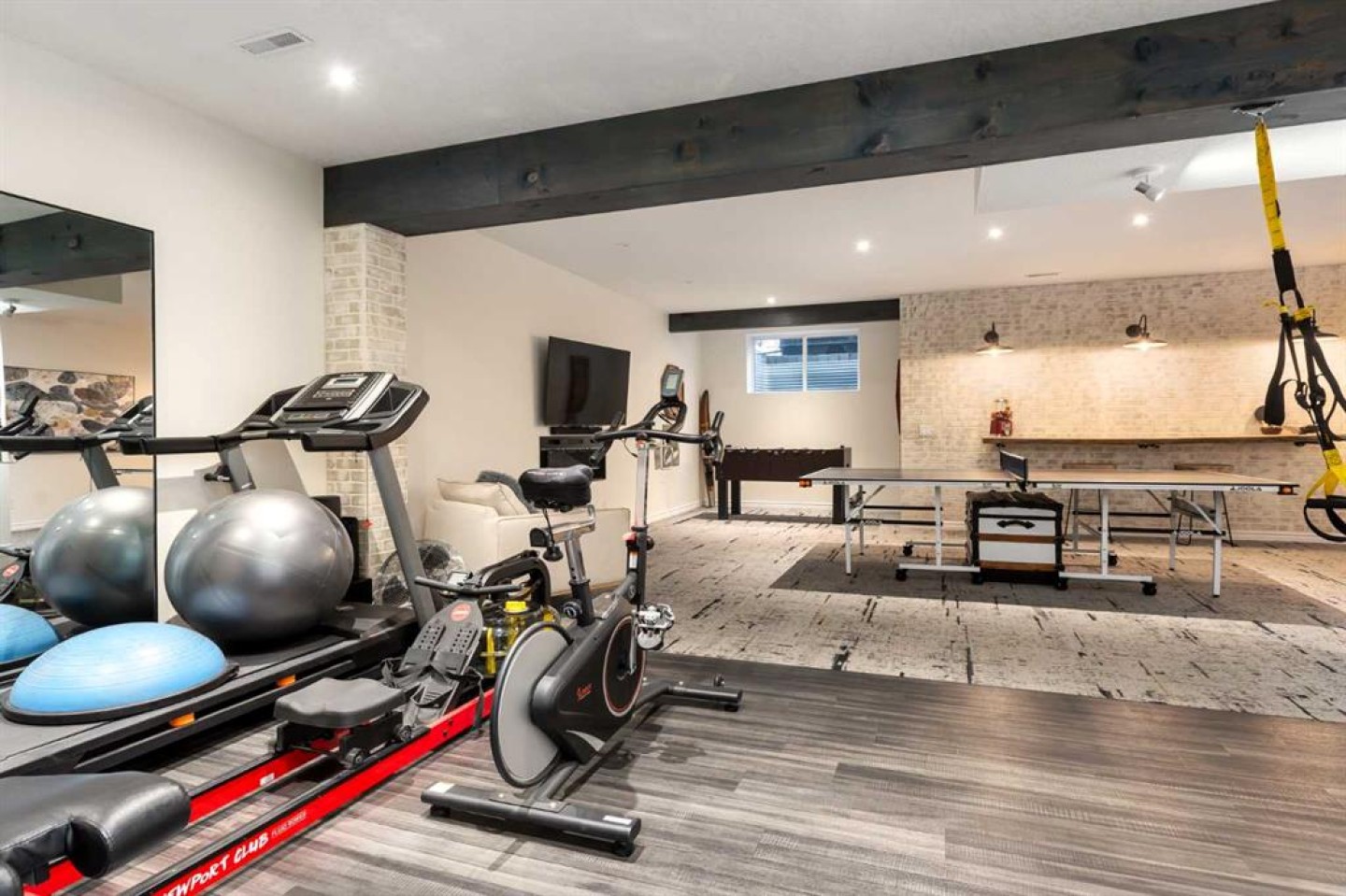 Upstairs, you will find your family room that is wired for surround sound, three bedrooms, a functional laundry room with extra storage, a 4-piece washroom, and the primary bedroom that is flooded with natural light. The spa-like ensuite features a show-stopping shower that is fully tiled, a great-sized soaker tub, a double vanity, a large walk-in closet, and a convenient pocket door that separates the toilet space. The fully finished basement is perfect for entertaining, with a built in bar and electric fireplace plus plenty of storage, with potential for a fourth bedroom and another full bathroom. This home backs onto a greenspace and has a professionally landscaped private backyard with a miniature cherry tree, pear tree, paver blocks, a BBQ gas line, and mature perennials offering privacy and peace. The Bow River and fishing are just a few steps from your back door, with access to the walking path right out your back gate.