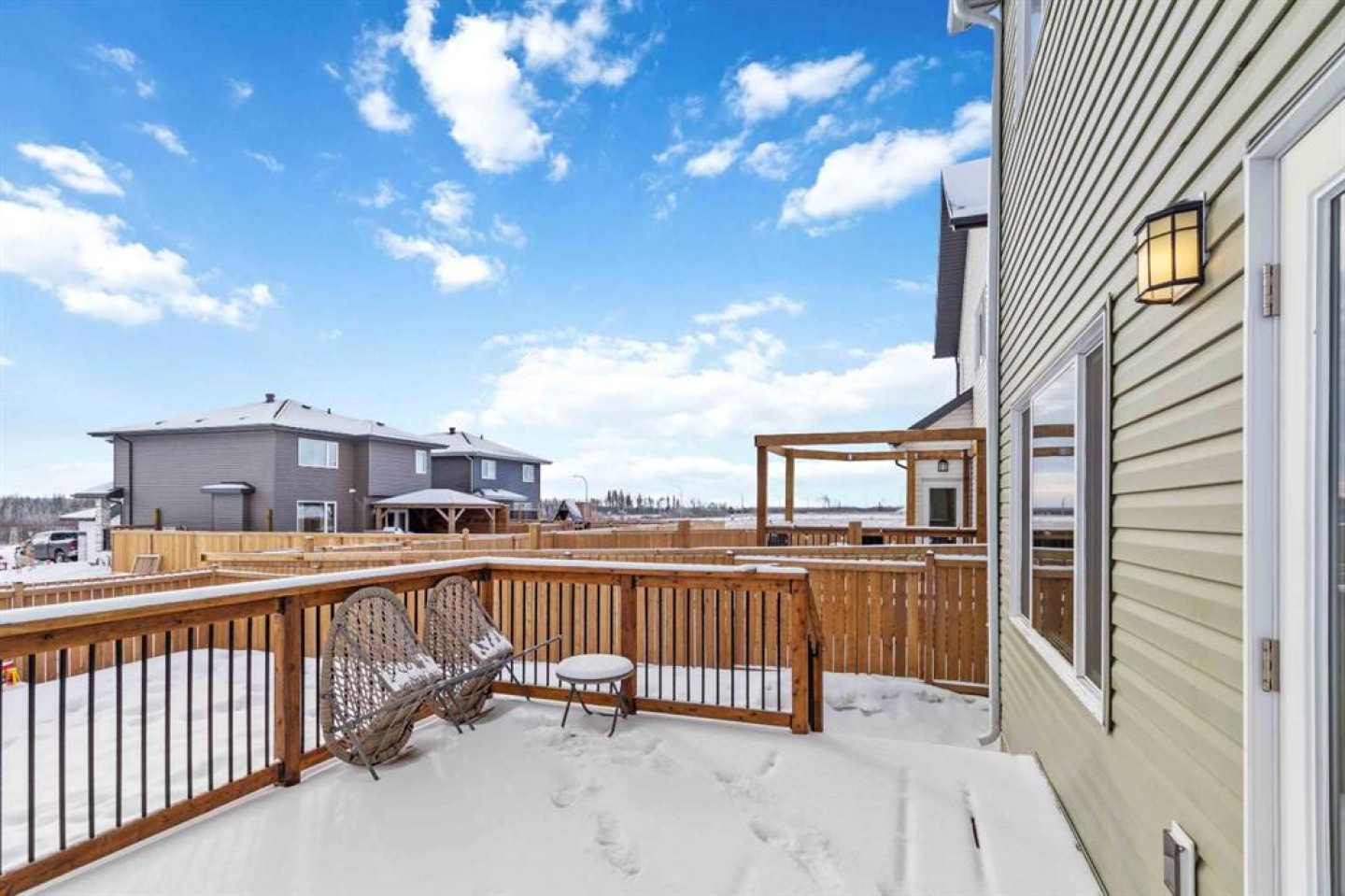 Welcome to 113 Hodgins Avenue, located in Fort McMurray’s only Golf subdivision, perfect for those who love outdoor play on quads, skidoos, and more. Experience the perfect blend of modern sophistication and leisure in Henning Ridge, facing a Greenspace and future park area. Built by Qualico Developments—a trusted name in Fort McMurray for over 20 years—this just like new 1,552 sq. ft. "Alex II" model features 3 bedrooms and 3 bathrooms, and the stunning modern color palette and a remaining 8 years Alberta New Home Warranty for total peace of mind, plus a fully fenced and landscaped yard and deck completed in 2025. The open-concept main floor is designed for entertaining, boasting luxury vinyl plank flooring and a chef-inspired kitchen. You’ll love the quartz countertops, white upper cabinetry, the stylish navy-blue island, the corner pantry, and the high-end 4-piece black stainless appliance package. The large island with an eat-up breakfast bar flows seamlessly into the bright great room and dining area. In addition, you have a built-in coffee bar. Upstairs, the primary bedroom features a spacious walk-in closet, a private ensuite, and panoramic views. There are 2 additional bedrooms, a full main bath, a dedicated laundry room, and a quaint landing area for a desk to complete the level. Outside, the home is a turnkey with front and rear landscaping fully fenced, completed, and a double concrete driveway. The basement is undeveloped but is designed to have a large family room, full bathroom, bedroom, and has the ability for a future suite with additional rough-in plumbing and a separate entrance. In addition, this home offers hot water on demand, custom blinds installed, and an insulated and drywalled attached garage with direct access to your home. Sellers have stated they loved living in the Community of Henning Ridge, a close-knit community of people who love the outdoors and quick access to the airport, Vista Ridge ski hill, and only minutes from the future Home Depot and other amenities. This community offers site, city, and school bus access seconds from your front door. Call today to be part of this awesome community!