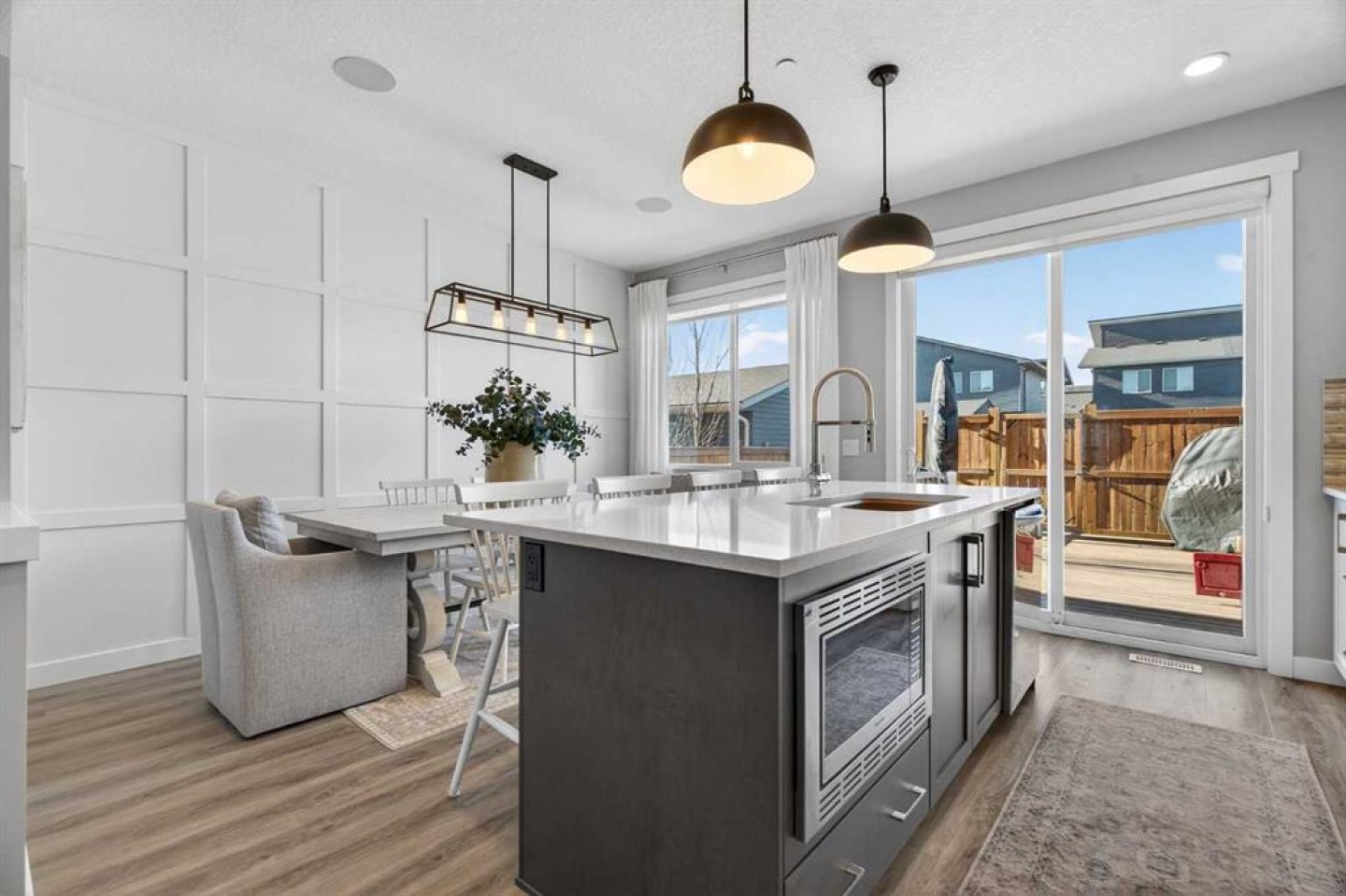 Welcome to this beautifully upgraded, better-than-new duplex in the heart of Livingston, offering the modern design buyers love without the added costs, delays, or upgrade surprises of new construction. From the moment you step inside, you’ll appreciate the bright neutral palette, custom wall finishes, and built-in shelving that elevate this home far beyond builder basic. The sun-filled main floor features a spacious living and dining area anchored by a gourmet kitchen complete with crisp white cabinetry, quartz countertops, a statement chimney hood fan, gas stove, refrigerator with water maker, and an upgraded walk-in pantry with custom built-in butler-style cabinetry for exceptional storage and prep space. Upstairs offers three generously sized bedrooms plus a versatile bonus room ideal for a home office, playroom, or additional lounge space. Unlike many new builds, this home is fully complete, including a professionally developed basement with an additional bedroom, full bathroom, large recreation room, stylish custom shelving, and a fully finished bar area perfect for entertaining. Step outside to enjoy a large deck with privacy fencing already in place, while still leaving ample space to build a future double detached garage. With finished landscaping, premium upgrades throughout, and no waiting on construction timelines, this move-in ready home delivers more space, more style, and more value in one of Calgary’s most desirable and growing communities.