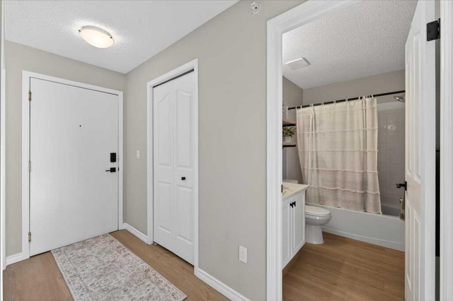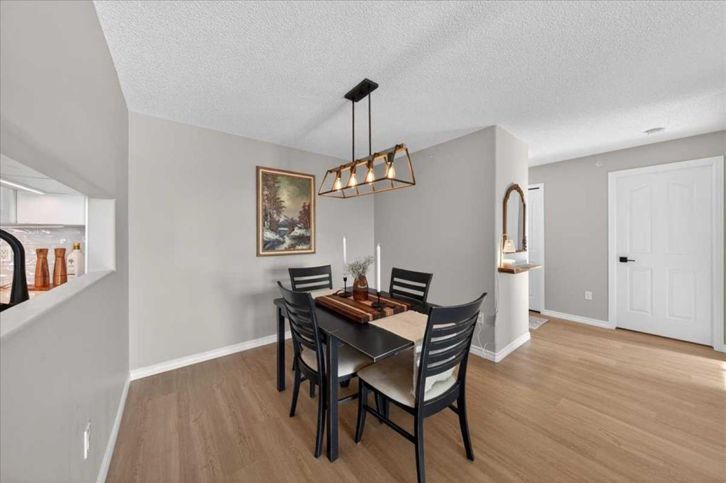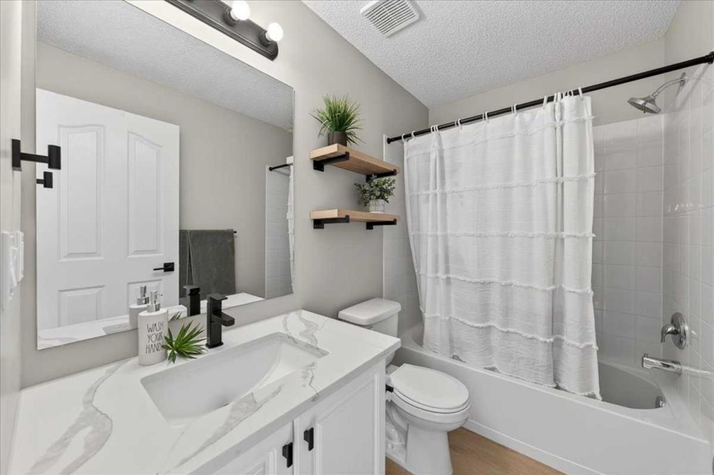 Brand new luxury vinyl plank flooring runs seamlessly throughout the entire home, creating warmth and continuity from room to room. Fresh paint gives the space a crisp, move in ready feel. Both bathrooms have been tastefully updated with quartz counters, offering a cohesive, elevated finish that feels current without being trendy. Plumbing fixtures, door hardware, baseboards and several other updates have been added over the last year.