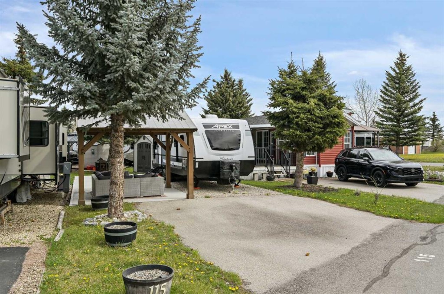 Welcome to Country Lane Estates, a gated and secure seasonal RV community just 15 minutes south of Calgary. Whether you're a snowbird, weekender, or a family seeking a peaceful spring and summer retreat, this highly sought-after community offers the perfect blend of relaxation, recreation, and convenience. This prime lot is ideally situated near the clubhouse, pool, playground, and park—placing you right at the center of all the amenities while still offering a private and serene space to unwind. The property comes fully move-in ready with a 2021 Coachmen Apex 28-foot trailer in pristine condition, providing modern comfort and functionality. The concrete pad ensures clean, low-maintenance outdoor living, while a gazebo offers the perfect shaded space for relaxing or entertaining. A storage shed on the lot adds both convenience and versatility—ideal for storing tools, bikes, or hobby gear. The landscaping has been thoughtfully designed for minimal upkeep, giving you more time to enjoy the season without the stress of maintenance. Full RV hookups are in place. This is a dog-friendly community with riverside walking paths and an off-leash dog park, making it an ideal spot for pet owners. The welcoming atmosphere is further enhanced by a vibrant social calendar, including weekly events and activities that bring residents together. Located just minutes from Okotoks and High River, and with easy highway access to Calgary, this property offers the best of both worlds—peaceful country living with the convenience of nearby city amenities. Whether you're seeking a weekend escape or a full-season getaway, this upgraded lot with trailer and thoughtful outdoor features is ready for you to enjoy from the moment you arrive. Don’t miss this rare opportunity to own a turn-key retreat in one of southern Alberta’s most desirable seasonal RV communities.