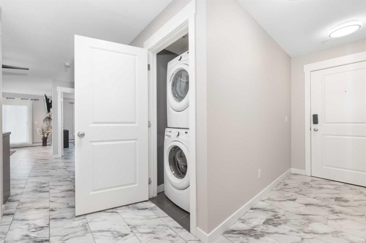 Dishwasher, Electric Stove, Microwave Hood Fan, Refrigerator, Washer/Dryer Stacked