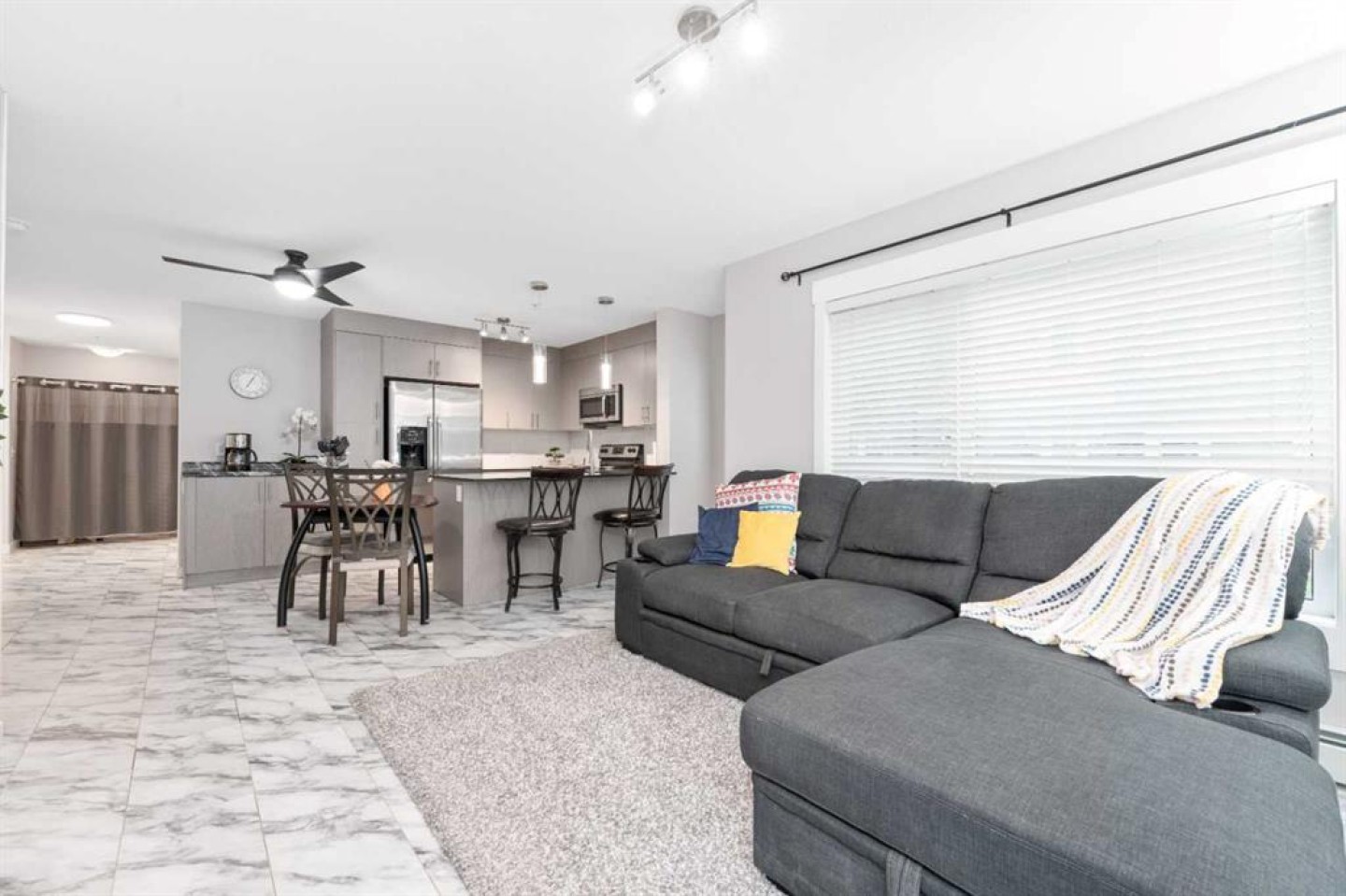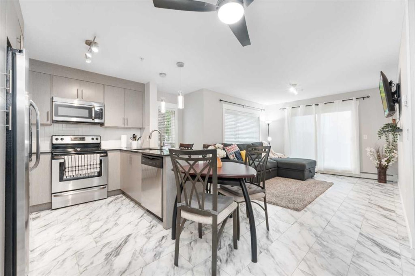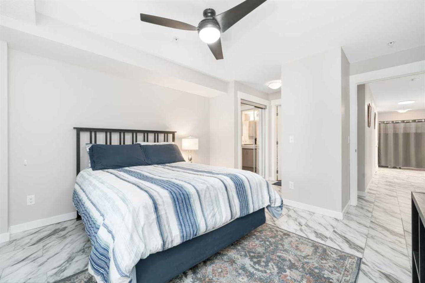 WELCOME to this BEAUTIFULLY FULLY FURNISHED, MOVE-IN READY, MAIN FLOOR CORNER UNIT offering 944 SQ FT of BRIGHT and FUNCTIONAL LIVING SPACE. Ideally located just 10 MINUTES FROM CALGARY INTERNATIONAL AIRPORT, this gorgeous home features 2 SPACIOUS BEDROOMS and 2 FULL BATHROOMS. Enjoy a MODERN OPEN-CONCEPT LAYOUT with GRANITE COUNTERTOPS, FRESH PAINT, and a STYLISH CONTEMPORARY FEEL. Both bedrooms and bathrooms are GENEROUSLY SIZED, offering COMFORT and FUNCTIONALITY for everyday living. The SPACIOUS PRIMARY SUITE is a true retreat, complete with HIS-AND-HERS CLOSETS and a PRIVATE 4-PIECE ENSUITE. The SECOND BEDROOM and BATHROOM are located on the OPPOSITE SIDE for ADDED PRIVACY—perfect for GUESTS, ROOMMATES, or a HOME OFFICE. Additional features include IN-SUITE LAUNDRY, a TITLED HEATED UNDERGROUND PARKING STALL, and a SECURE STORAGE SPACE. There’s also AMPLE VISITOR PARKING for guests. Step outside to your PRIVATE GROUND-LEVEL PATIO, ideal for RELAXING or ENTERTAINING. Perfectly situated WITHIN WALKING DISTANCE TO SCHOOLS, PARKS, AND PUBLIC TRANSIT, and just MINUTES FROM COSTCO, CROSSIRON MILLS MALL, with EASY ACCESS to STONEY TRAIL and DEERFOOT TRAIL. You’re only 20 MINUTES TO DOWNTOWN CALGARY—making this an excellent choice for PROFESSIONALS, FIRST-TIME BUYERS, DOWNSIZERS, or INVESTORS. This home truly combines COMFORT, CONVENIENCE, AND LOCATION—and is FULLY FURNISHED & READY FOR IMMEDIATE POSSESSION.