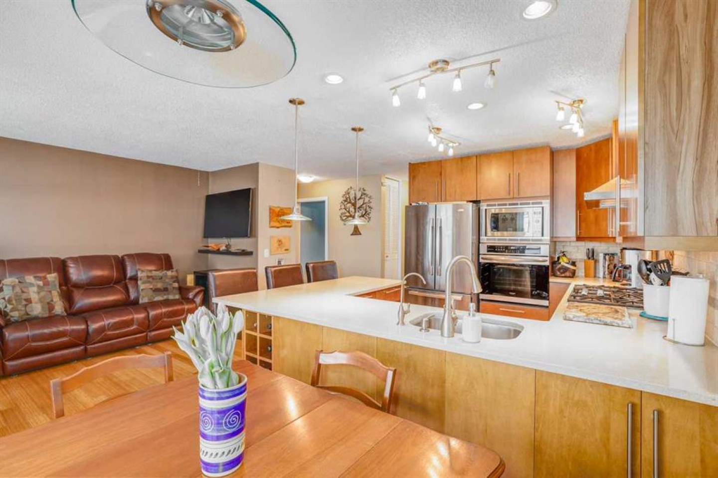 What a fantastic opportunity to own a BUNGALOW-STYLE town home with AIR Conditioning complete with deck and backing on to a HUGE GREEN SPACE. This CORNER UNIT is meticulously maintained and freshly painted. Main floor has bamboo flooring and has been opened so that you can enjoy the open concept plan including a living room, kitchen and dining area leading to a fenced in private deck. Fabulous kitchen with granite counters and a full complement of stainless appliances including a gas cook top and a new electric wall oven. Room to sit up to the counter on the peninsula style center island. The main floor has a primary and second bedroom with an updated bathroom with a large step in shower. Basement has a finished rec room and a large storage and laundry area. Deerfield Village is well managed and is a HIDDEN GEM tucked away from the hustle and bustle. This complex is situated close to nature & recreation (Fish Creek Park, Bow River, Sikome Lake and easy access to 80kms of hike/bike trails, parks, walking paths and wildlife). Close to all amenities (Deer Valley Shopping Center, active local community association with frequent events, parks, ice rinks & schools. Quick and easy access Bow Bottom Trail, Deerfoot & Stoney Trails. LOW CONDO FEES.