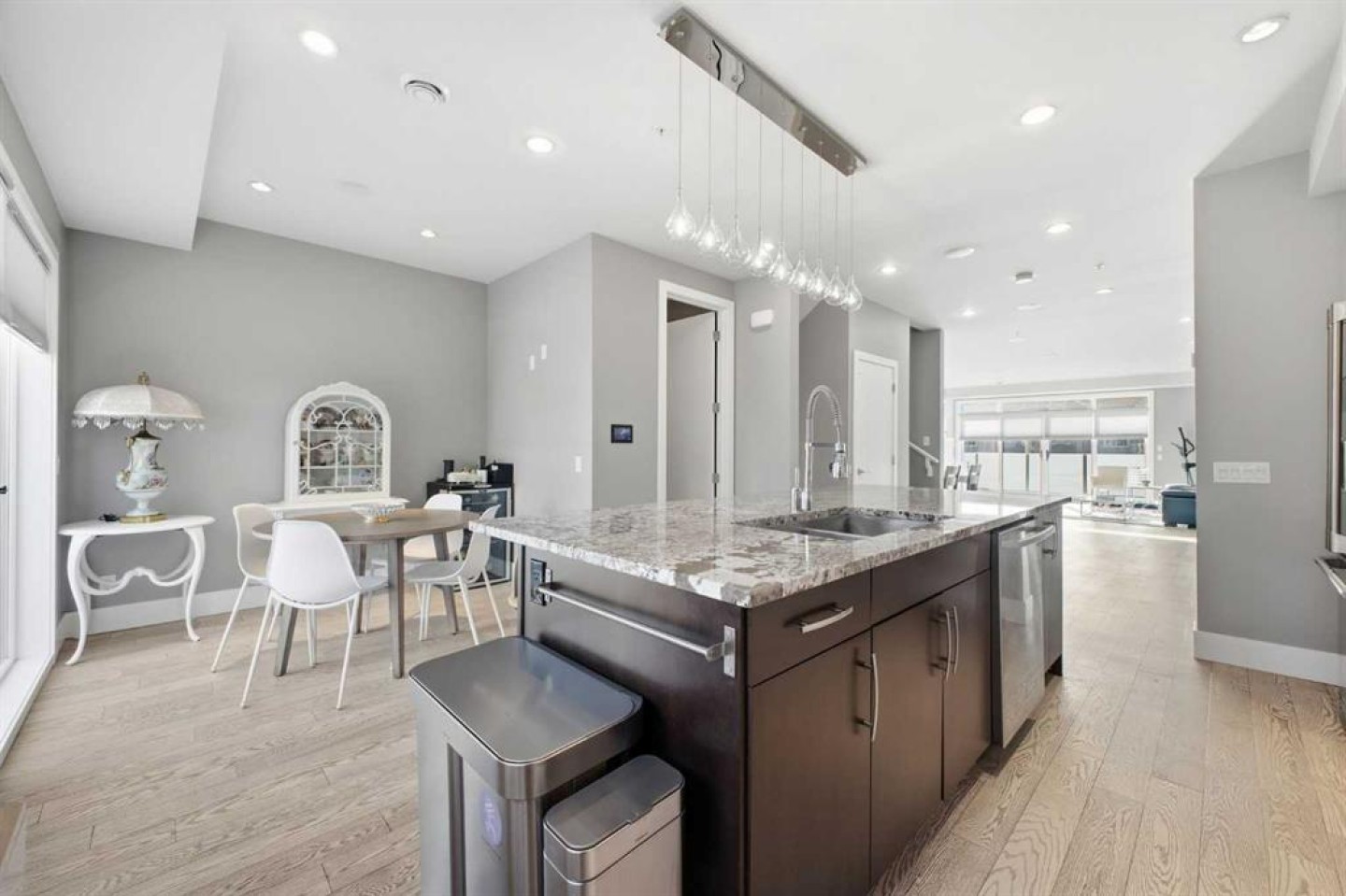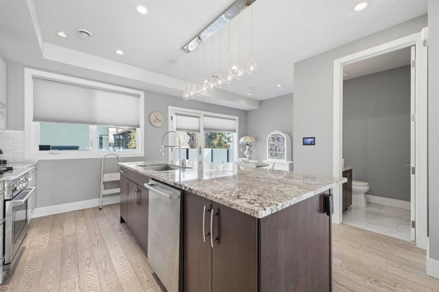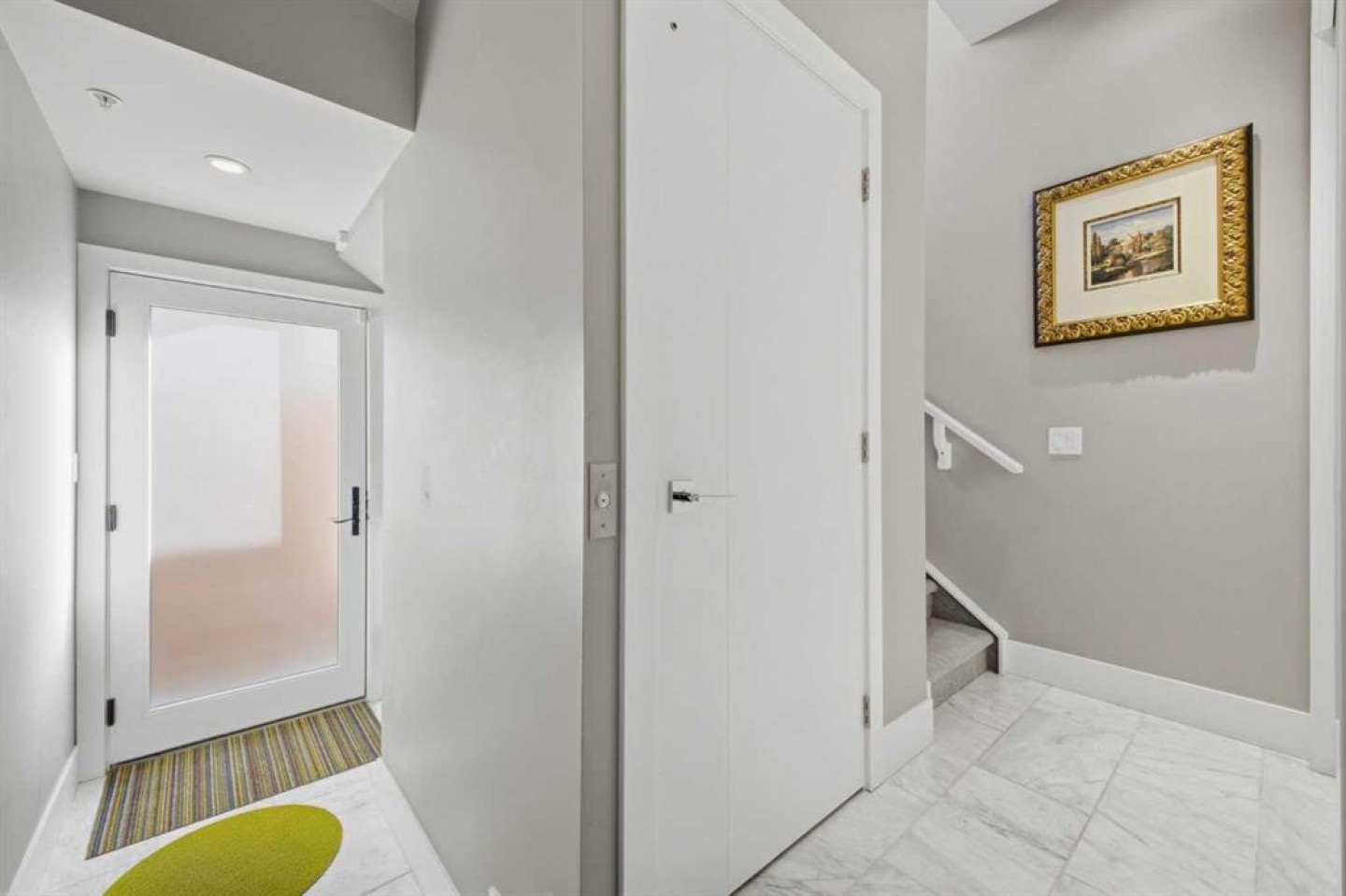 Gorgeous upscale 3 bedroom townhome in the heart of South Calgary offering over 2100 sq ft of living space & an ELEVATOR SERVING ALL 3 LEVELS! The open & airy main level presents wide plank hardwood floors, lofty ceilings & is drenched in natural light, showcasing the spacious living room that’s anchored by a feature fireplace & has access to a private deck with outdoor fireplace. The dining area with stylish light fixture provides ample space to host family & friends & seamlessly flows into the kitchen that’s tastefully finished with granite counter tops, island/eating bar, plenty of storage space, stainless steel appliances & cozy breakfast nook with access to the north balcony with BBQ gas hookup. A 2 piece powder room completes the main level. The second level hosts 3 bedrooms plus 4 piece main bath & laundry facilities. The generously sized primary retreat with private balcony boasts a walk-in closet & luxurious 5 piece ensuite with marble flooring, dual sinks, relaxing soaker tub & rejuvenating steam shower. Other notable features include an elevator, central air conditioning, built-in speakers & single attached garage. The prime location is incredibly convenient, walking distance to vibrant Marda Loop, River Park, Marda Loop CA, schools, shopping, public transit & effortless access to 14th Street & Crowchild Trail.