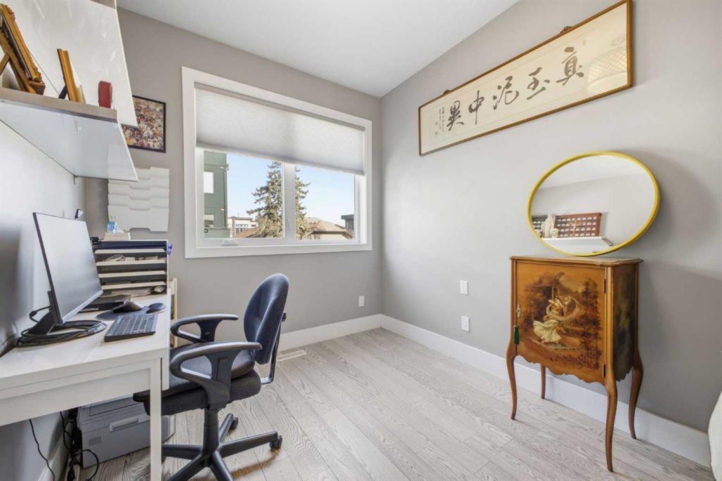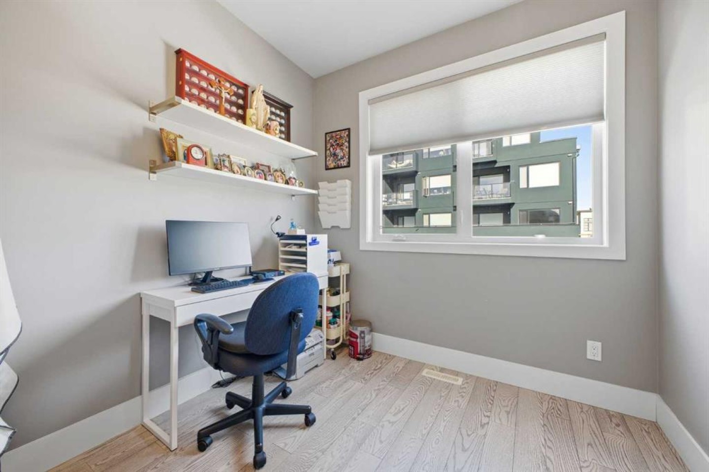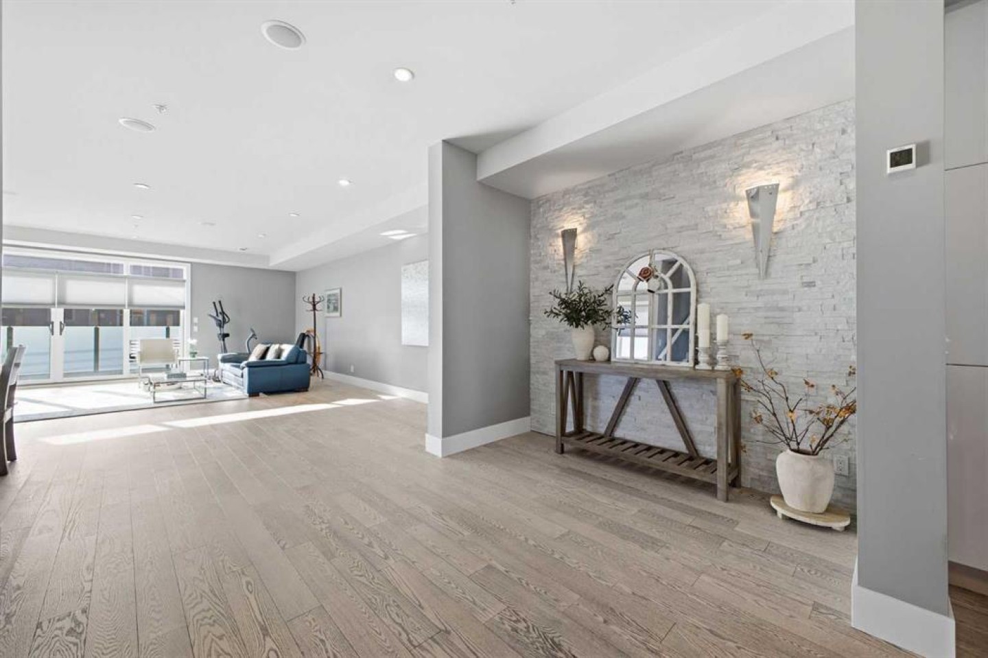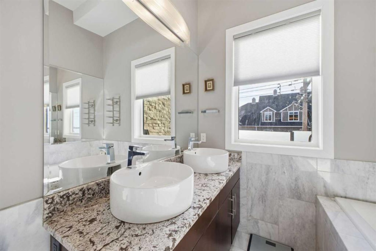 Gorgeous upscale 3 bedroom townhome in the heart of South Calgary offering over 2100 sq ft of living space & an ELEVATOR SERVING ALL 3 LEVELS! The open & airy main level presents wide plank hardwood floors, lofty ceilings & is drenched in natural light, showcasing the spacious living room that’s anchored by a feature fireplace & has access to a private deck with outdoor fireplace. The dining area with stylish light fixture provides ample space to host family & friends & seamlessly flows into the kitchen that’s tastefully finished with granite counter tops, island/eating bar, plenty of storage space, stainless steel appliances & cozy breakfast nook with access to the north balcony with BBQ gas hookup. A 2 piece powder room completes the main level. The second level hosts 3 bedrooms plus 4 piece main bath & laundry facilities. The generously sized primary retreat with private balcony boasts a walk-in closet & luxurious 5 piece ensuite with marble flooring, dual sinks, relaxing soaker tub & rejuvenating steam shower. Other notable features include an elevator, central air conditioning, built-in speakers & single attached garage. The prime location is incredibly convenient, walking distance to vibrant Marda Loop, River Park, Marda Loop CA, schools, shopping, public transit & effortless access to 14th Street & Crowchild Trail.