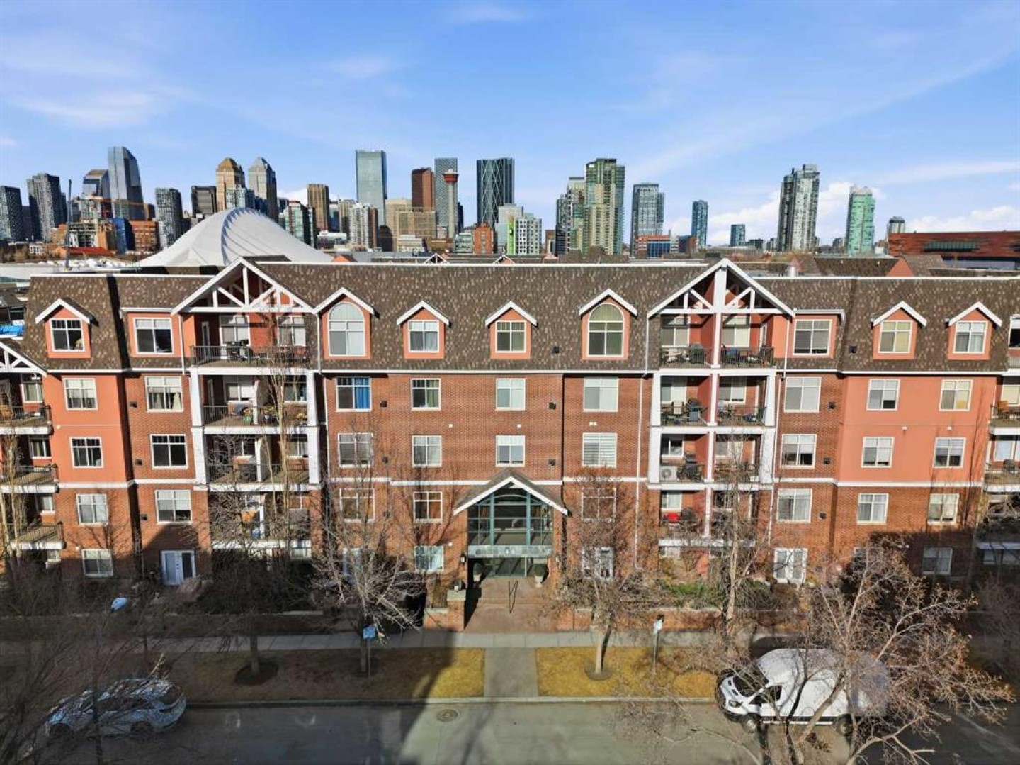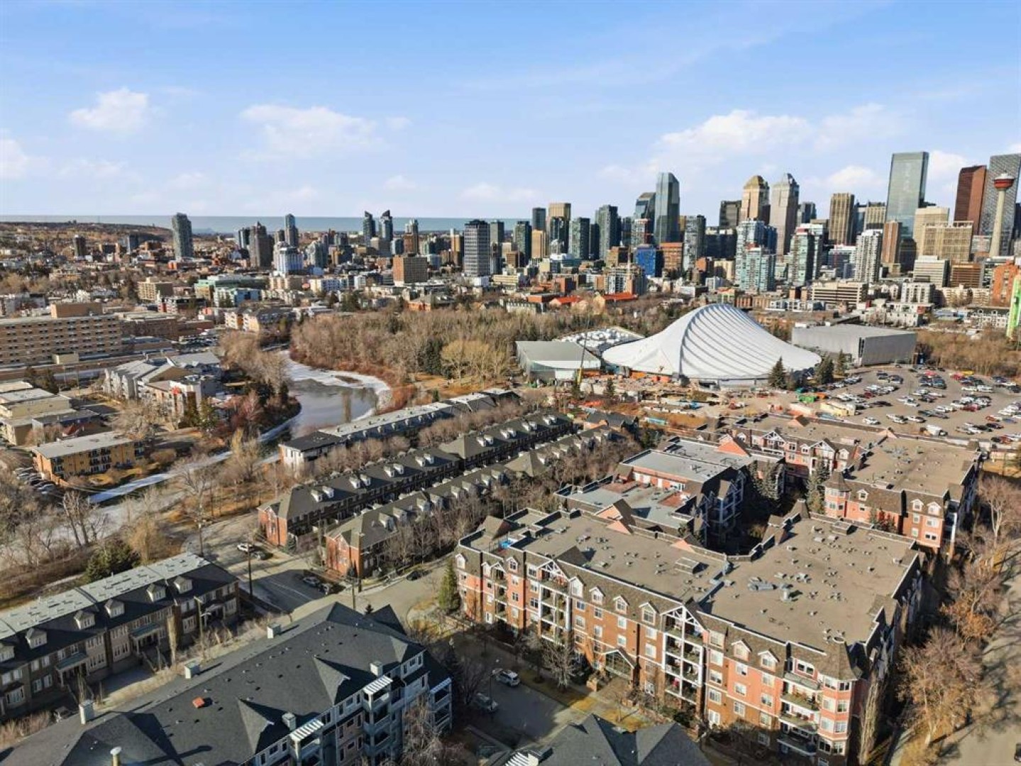Effortless Elegance in Erlton. For those ready to simplify without compromise, this beautifully appointed two-bedroom residence in Erlton offers a rare balance of sophistication, serenity, and walkable urban living. Just steps from the river pathways along the Elbow River and moments from the restaurants and cafés of Mission, the setting feels both connected and quietly removed. Inside, the home reveals a calming palette and enduring finishes designed for comfort and ease. Solid concrete construction ensures remarkable quiet — an invaluable luxury for professionals who work from home or value true relaxation at day’s end. In-floor heating provides consistent warmth beneath rich hardwood flooring, while the gas fireplace creates an inviting focal point for intimate evenings or relaxed entertaining. The kitchen is as functional as it is welcoming, with granite countertops, an expansive breakfast bar for casual gatherings, and a separate dining area suited to everything from weeknight dinners to hosting close friends. The layout flows naturally, offering just the right amount of space — never overwhelming, always intentional. Positioned on the main floor, the residence offers seamless access to a private patio — ideal for morning coffee, container gardening, or simply enjoying fresh air without the upkeep of a larger property. It’s a lifestyle shift that prioritizes freedom: lock-and-leave convenience for travel, and manageable elegance for everyday living. Beyond the suite, a landscaped courtyard centered around a tranquil pond and fountain creates a peaceful backdrop. Residents enjoy thoughtfully arranged seating areas, welcoming meeting spaces, and a refined snooker lounge — amenities that foster community while maintaining privacy. This is living designed for those who value quality over quantity — where riverside walks replace yard work, and evenings out are just steps from home. A graceful next chapter, in one of Calgary’s most charming enclaves.