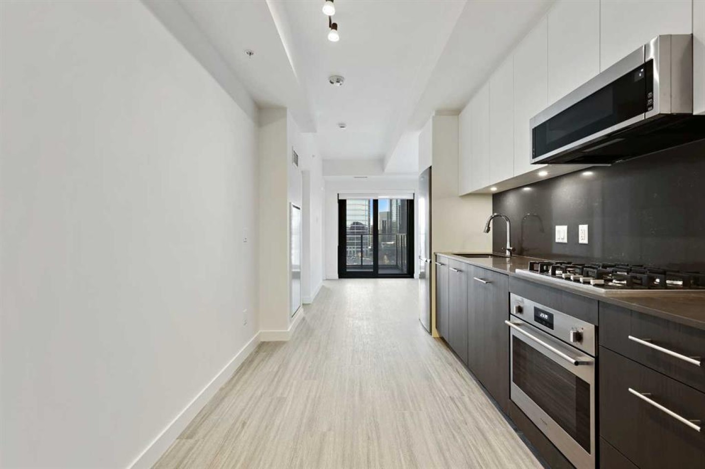 Welcome to unit 1103 at First & Park, an elegant new address in Calgary’s sought-after Eau Claire community. This one bedroom, one bathroom home combines modern design with everyday convenience. The open-concept layout features a sleek kitchen with contemporary cabinetry, quartz countertops, and premium appliances, flowing seamlessly into the bright living space and east facing balcony with. beautiful views! This unit has a full bath, and in-suite laundry offer comfort and functionality. Enjoy a titled parking stall, along with building amenities including an upscale gym & yoga studio (patio just outside which also features gas bbq hookups), party lounge, modern co-working space and concierge. Just steps from the Bow River pathways, Prince’s Island Park, dining, and downtown, this is the perfect balance of style and location. Whether you’re a first-time buyer, investor, or looking for a stylish downtown retreat, this home at First & Park is the perfect opportunity to live where the city meets the river. 1 titled parking stall with unit!