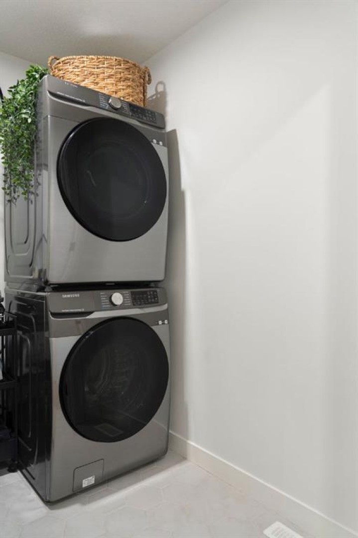 There’s a side entrance leading into the unfinished basement, complete with two large windows, ready for future development. The double garage is equipped with a plug for an electric vehicle. There are permanent LED lights on the exterior, the yard is fully fenced, and from here it’s an easy walk to the new dog park, playground, and Heartland’s growing pathway network. It’s a home that fits the way families live today, in a community that keeps getting better.