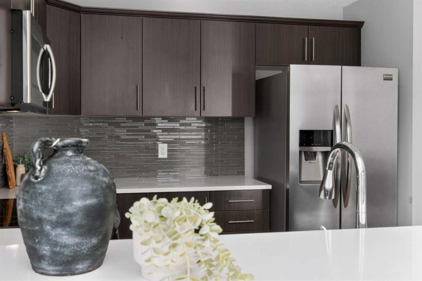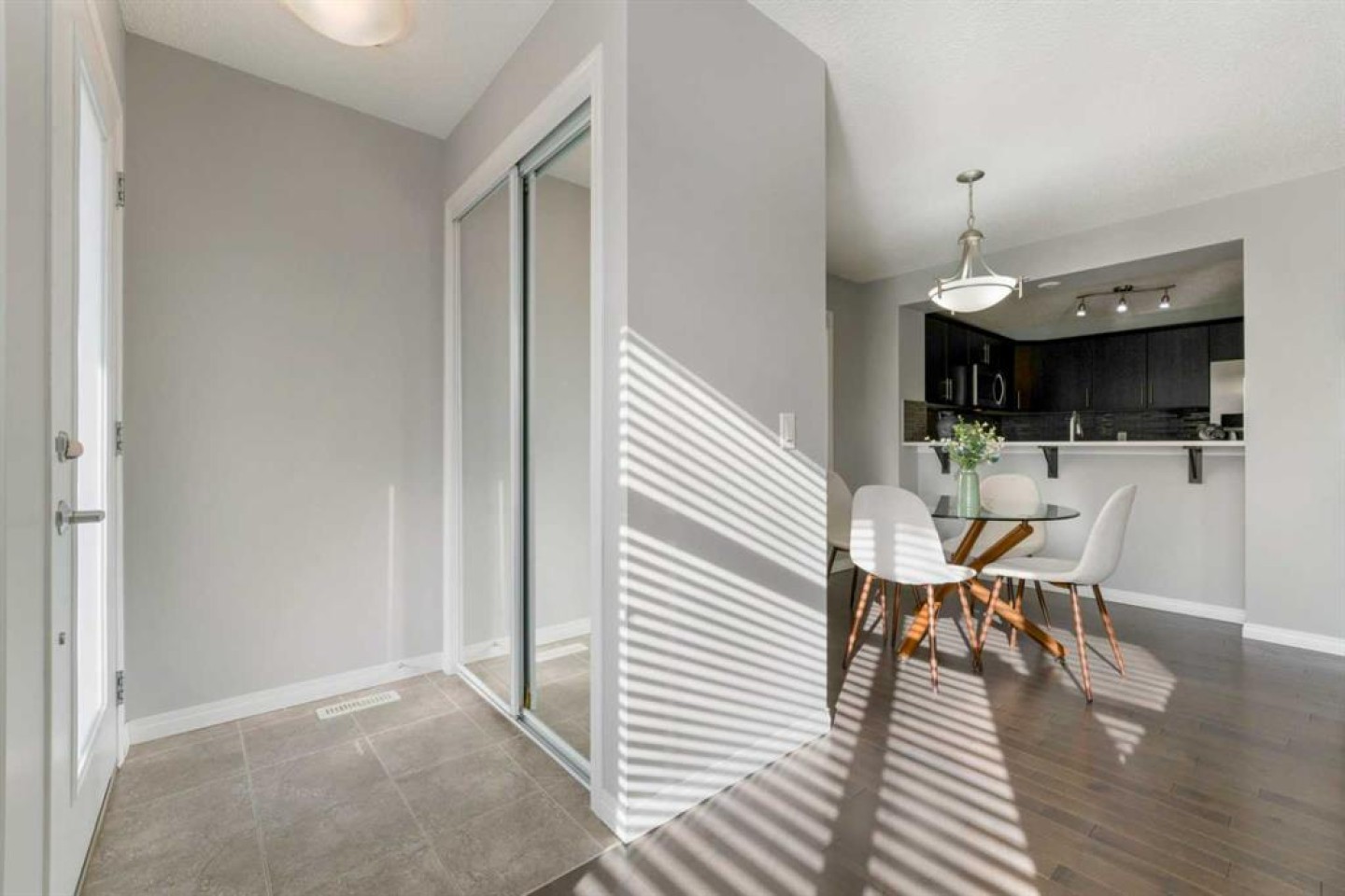 OPEN HOUSE SUNDAY FEBRUARY 22ND 1:00 PM - 3:00 PM || Lovingly maintained by its original owners, this beautifully appointed end-unit townhome offers 2 bedrooms, 2.5 bathrooms, and a double attached garage with paved rear lane access, all with no condo fees. Step inside to beautiful hardwood floors, large windows that flood the space with natural light, and a thoughtfully designed main level finished with quartz countertops, stainless steel appliances, tiled entry and mudroom, and Hunter Douglas blinds. Upstairs, a spacious bonus room creates flexible living space, complemented by two generous bedrooms. Enjoy the large rear balcony for outdoor living, plus the future potential of an unfinished basement. Furnace and ducts have been recently maintained for added peace of mind. Ideally situated near parks and walking paths, with quick access to major highways and the airport, this home offers both everyday convenience and room to grow.