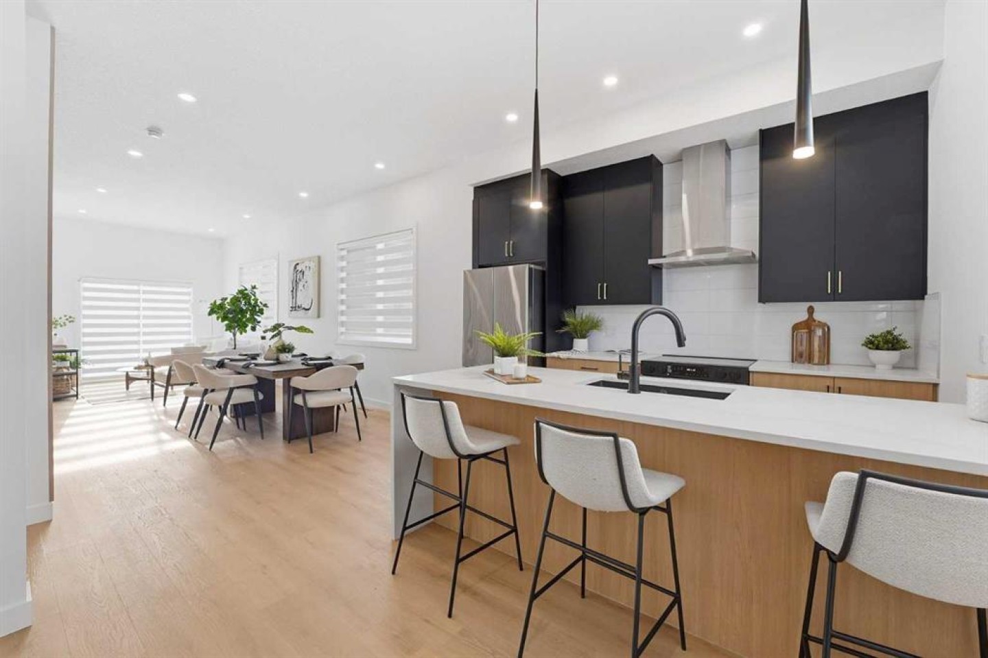 Built for durability and designed for real life, this Hudson END UNIT is a bright and spacious 3-bedroom, 2.5-bathroom townhome offering the perfect balance of style and function. With 1,411 sq ft, two private balconies, and the advantages of an end unit, you’ll enjoy extra natural light, added privacy, and more flexible living space. The DOUBLE ATTACHED TANDEM GARAGE gives you secure parking plus plenty of room for storage, bikes, or seasonal gear. Quality starts from the ground up. The Hudson is built on a 4” THICK SLAB USING SULPHATE-RESISTANT CONCRETE — a premium structural choice that helps protect your home for decades. The exterior is designed for Calgary’s climate, featuring a BRICK CLADDING SYSTEM WITH RAIN SCREEN BEHIND HARDIE BOARD SIDING, helping defend against moisture and harsh freeze-thaw cycles. For everyday convenience and security, the R12 INSULATED GARAGE DOOR WITH BELT DRIVE, WIFI, AND LIVE-VIEW CAMERA adds comfort and peace of mind. Inside, the main floor feels open and welcoming with 10’ CEILINGS, BLACK LAMINATED PVC DOUBLE-GLAZED WINDOWS, and a generous BALCONY that extends your living space outdoors. The OPEN-STYLE KITCHEN WITH PANTRY CLOSET is finished with QUARTZ COUNTERTOPS, FULL-HEIGHT CERAMIC TILE BACKSPLASH, and TALL UPPER CABINETS WITH UNDER-CABINET VALANCE LIGHTING. The PREMIUM SAMSUNG STAINLESS STEEL APPLIANCE PACKAGE includes a FRENCH DOOR FRIDGE WITH BUILT-IN WATER PITCHER and a SELF-CLEANING SMOOTH-TOP RANGE. Upstairs, three well-sized bedrooms offer flexibility for families, guests, or a home office. The primary bedroom features its own PRIVATE BALCONY, while bathrooms include QUARTZ COUNTERS, FULL-HEIGHT CERAMIC TILE SURROUNDS, and 24x12” TILE FLOORING. Thoughtful everyday features — like LINEN AND WASHER + DRYER CLOSETS, AUTOMATED ZEBRA BLINDS, VINYL DECKING WITH ALUMINUM RAIL + GLASS PANELS, and FULL LANDSCAPING — help make daily living easy and comfortable. Located in Belvedere, one of Calgary’s fastest-growing communities, you’re steps from groceries, restaurants, and everyday amenities, with parks and schools nearby. Downtown Calgary is only 15–20 minutes away, giving you city access while enjoying the value of a growing neighbourhood. With durable construction, two balconies, and a tandem garage, this Hudson end unit delivers both lifestyle and long-term value. Note: If this property is your primary residence, you may be eligible for a 1.8% GST rebate on the purchase price.