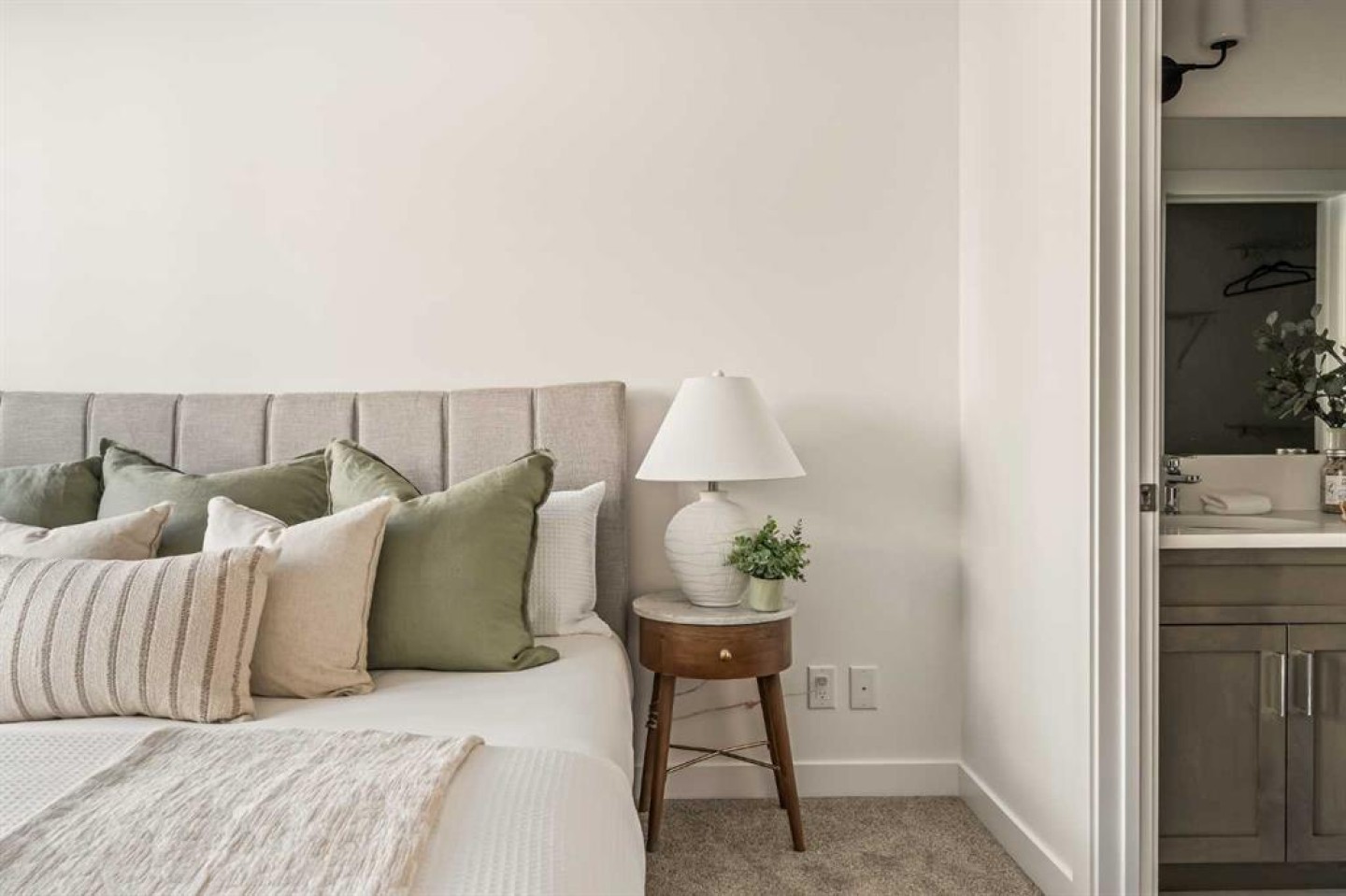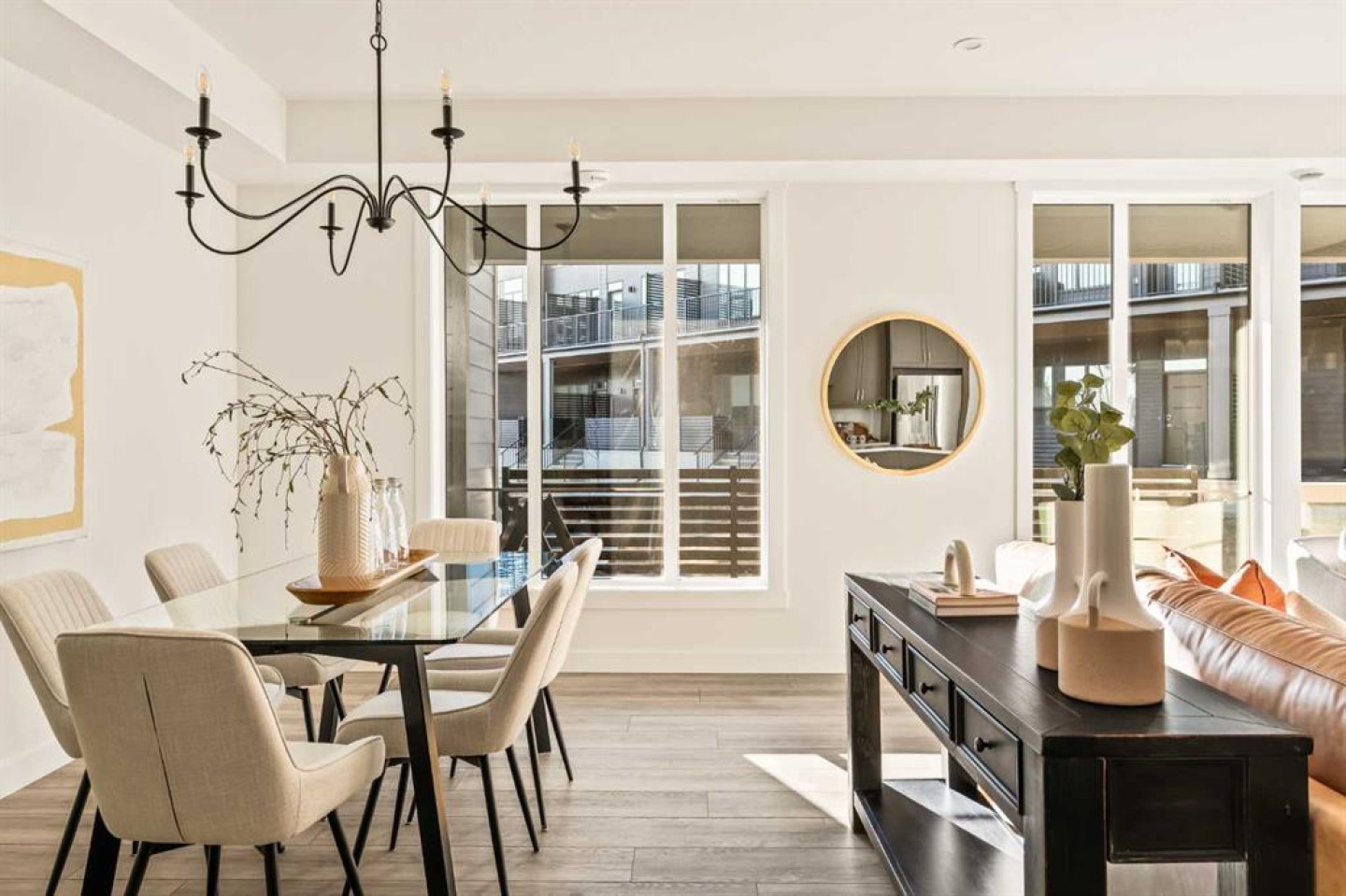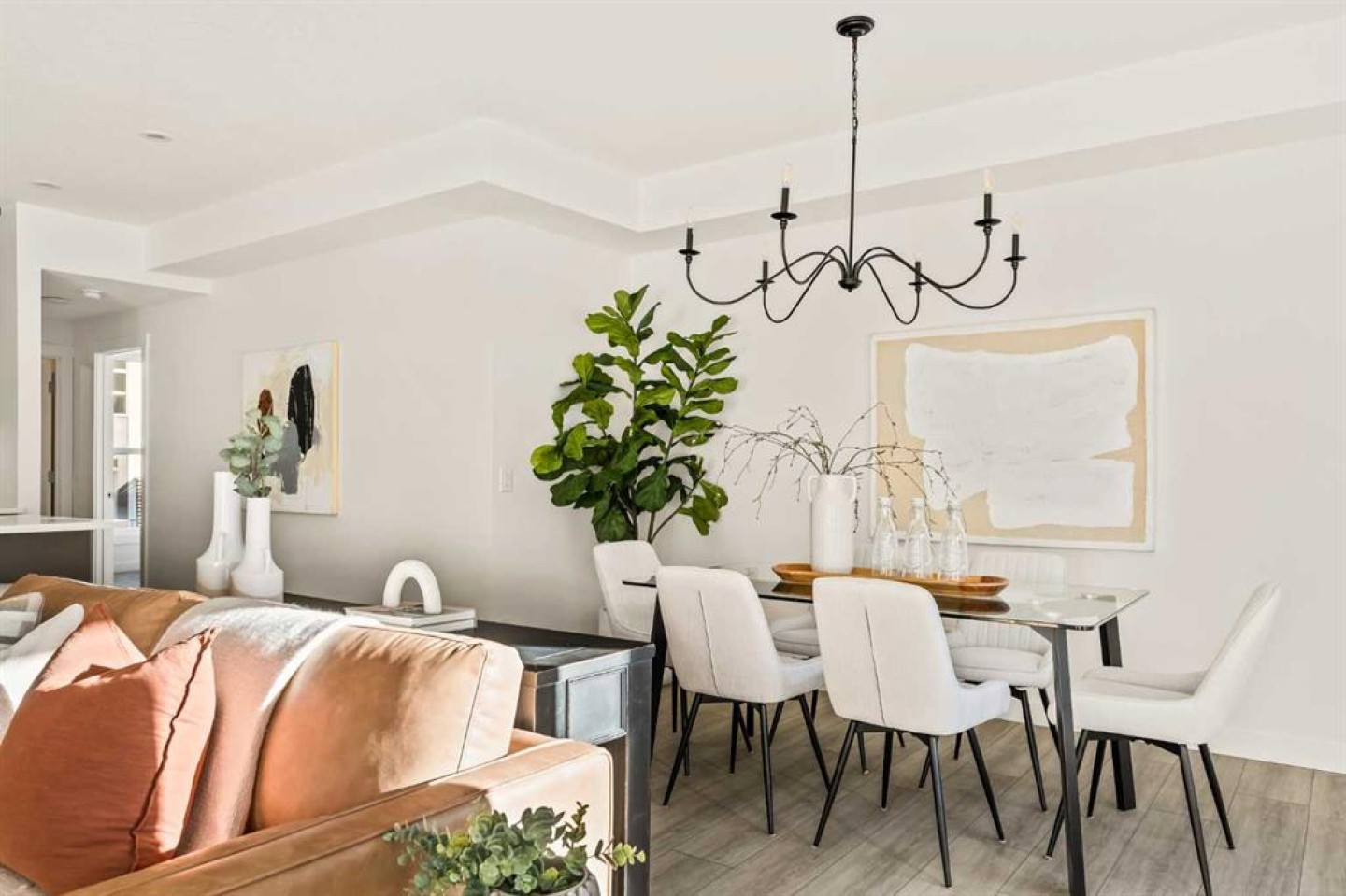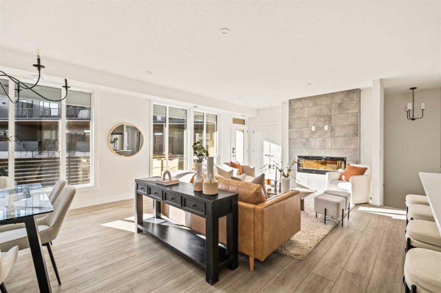 Welcome to the Regent at Crown Park, a beautifully crafted bungalow-style townhome offering true single-level living without compromise! This unique design combines the benefits of a bungalow lifestyle without compromising on storage or garage space, all while moving into a brand new beautiful home with full warranty! Thoughtfully designed with down-sizers in mind, this maintenance-free residence is perfect for those who travel or simply prefer a lock-and-leave lifestyle free from exterior upkeep, landscaping, or snow removal. This brand-new 3-bedroom, 2-bathroom home offers nearly 1,300 sq.ft. of well-planned living space on one level, plus a lower level featuring extensive storage and access to the oversized double garage. At the heart of the home, a stunning open-concept living area was created for effortless entertaining. The central kitchen seamlessly connects the living and dining spaces while a full wall of south-west facing windows floods the interior with natural light all year long. Timeless finishes include warm-tone natural wood shaker maple cabinetry, light quartz countertops, and a premium built-in appliance package featuring a gas cooktop, built-in oven, and chimney hood fan - ensuring the chef is always part of the conversation. A striking floor-to-ceiling tile fireplace anchors the great room, offering a warm focal point and comfortable seating for gatherings. The spacious dining area easily accommodates a full table and buffet, providing exceptional furnishing flexibility. Privately positioned at the rear of the home, the primary retreat features a generous walk-in closet and spa-inspired ensuite with dual vanities and a tiled walk-in shower with 10mm glass. A centrally located laundry room with upper cabinetry and folding counter enhances everyday convenience while naturally separating the primary suite from the secondary bedrooms. Two additional bedrooms and a full bathroom provide versatility for guests, a home office, media room, or creative space - while maintaining excellent resale appeal. The lower level offers a large storage room and an oversized utility room (approx. 17' x 7') ideal for hobbies or seasonal storage. A double closet and oversized double attached garage completes the interior features on the lower level. Step outside to your private covered southwest-facing patio spanning over 26 feet that overlooks the park and includes a gas line, hose bib, and A/C rough-in - the perfect setting for relaxed outdoor living and future upgrades in mind. Bungalow-style townhomes with double attached garages are exceptionally rare. Enjoy added peace of mind with comprehensive builder warranty coverage plus Alberta New Home Warranty. Located minutes from downtown and surrounded by established amenities, Crown Park offers the confidence of a mature community paired with the comfort of a brand-new home. This is one of the very last brand new opportunities remaining - a truly rare opportunity you won’t want to miss!