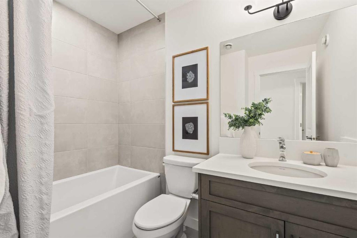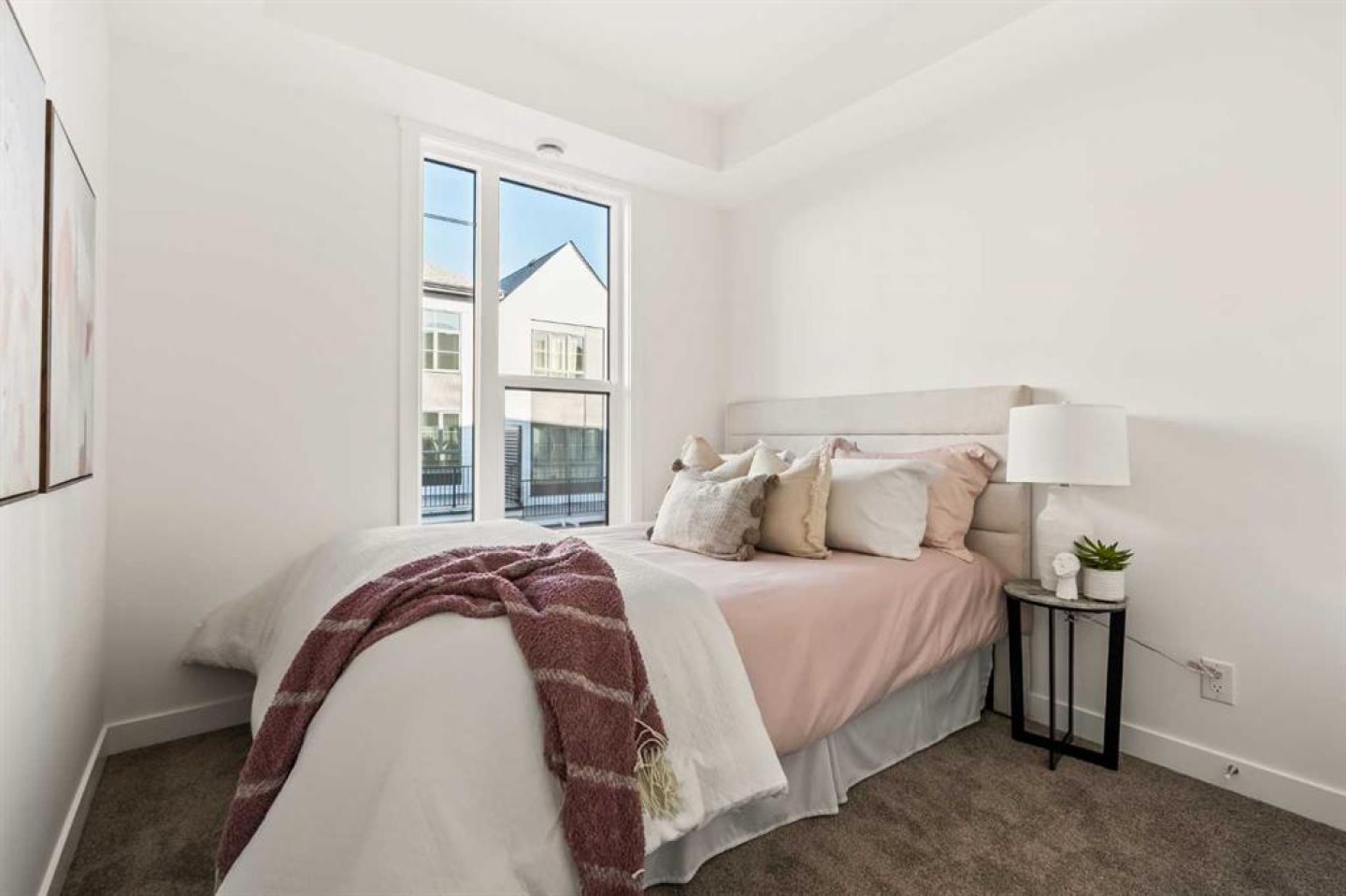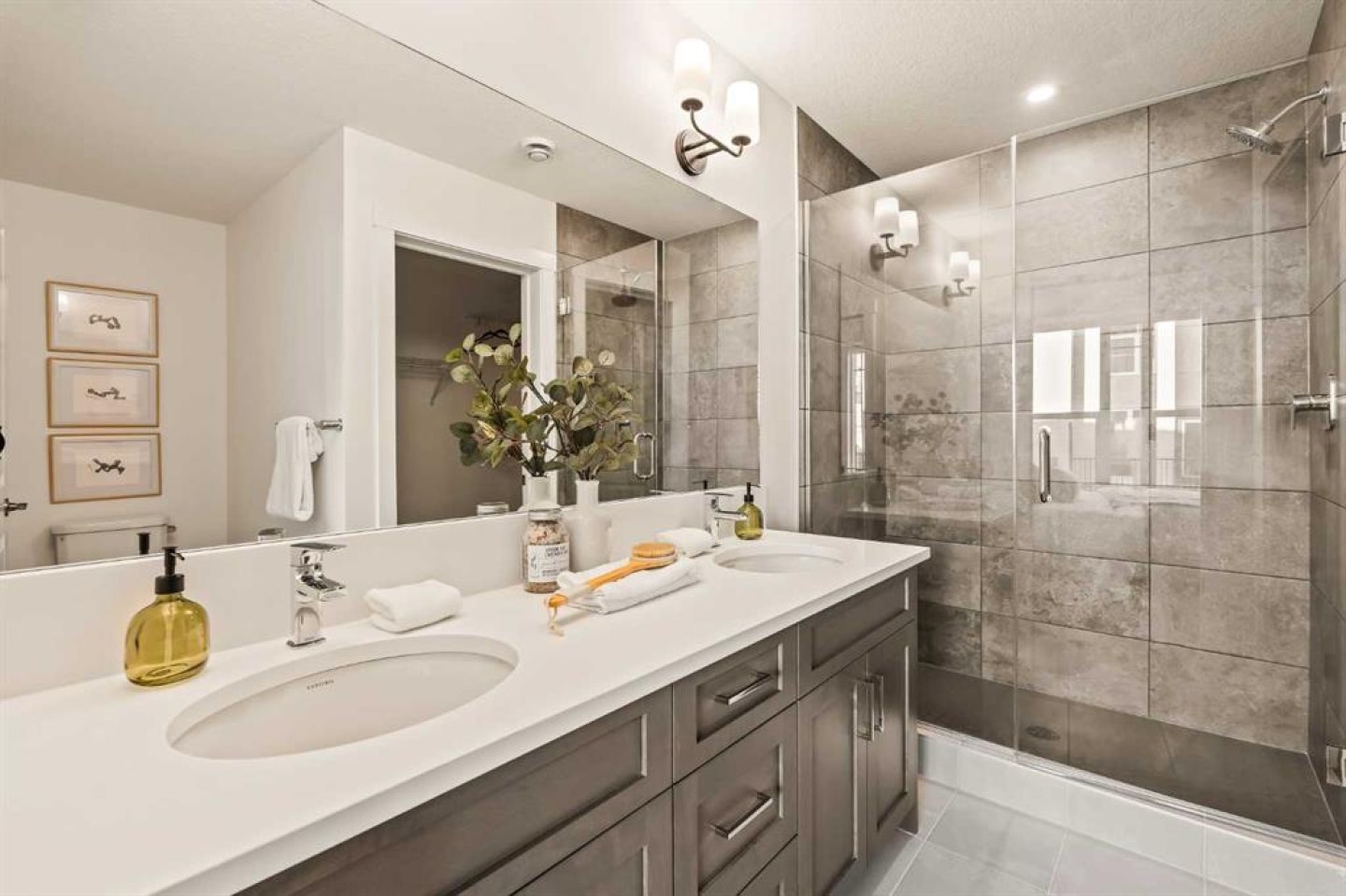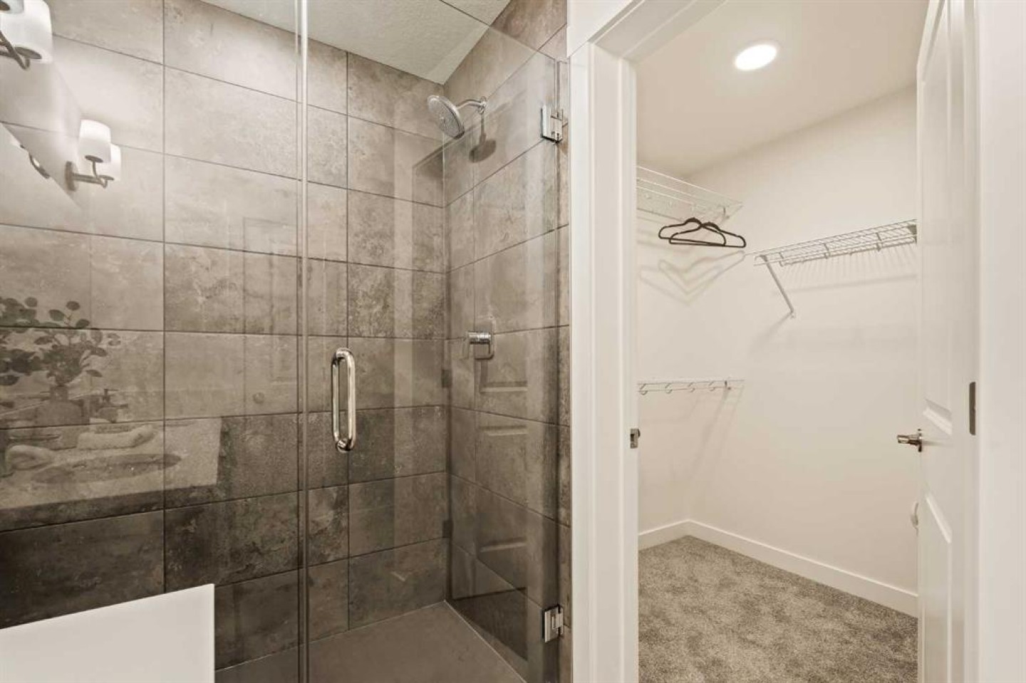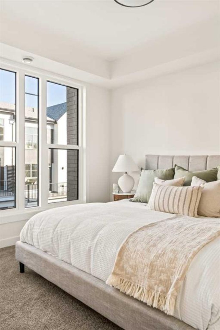 Welcome to the Regent at Crown Park, a beautifully crafted bungalow-style townhome offering true single-level living without compromise! This unique design combines the benefits of a bungalow lifestyle without compromising on storage or garage space, all while moving into a brand new beautiful home with full warranty! Thoughtfully designed with down-sizers in mind, this maintenance-free residence is perfect for those who travel or simply prefer a lock-and-leave lifestyle free from exterior upkeep, landscaping, or snow removal. This brand-new 3-bedroom, 2-bathroom home offers nearly 1,300 sq.ft. of well-planned living space on one level, plus a lower level featuring extensive storage and access to the oversized double garage. At the heart of the home, a stunning open-concept living area was created for effortless entertaining. The central kitchen seamlessly connects the living and dining spaces while a full wall of south-west facing windows floods the interior with natural light all year long. Timeless finishes include warm-tone natural wood shaker maple cabinetry, light quartz countertops, and a premium built-in appliance package featuring a gas cooktop, built-in oven, and chimney hood fan - ensuring the chef is always part of the conversation. A striking floor-to-ceiling tile fireplace anchors the great room, offering a warm focal point and comfortable seating for gatherings. The spacious dining area easily accommodates a full table and buffet, providing exceptional furnishing flexibility. Privately positioned at the rear of the home, the primary retreat features a generous walk-in closet and spa-inspired ensuite with dual vanities and a tiled walk-in shower with 10mm glass. A centrally located laundry room with upper cabinetry and folding counter enhances everyday convenience while naturally separating the primary suite from the secondary bedrooms. Two additional bedrooms and a full bathroom provide versatility for guests, a home office, media room, or creative space - while maintaining excellent resale appeal. The lower level offers a large storage room and an oversized utility room (approx. 17' x 7') ideal for hobbies or seasonal storage. A double closet and oversized double attached garage completes the interior features on the lower level. Step outside to your private covered southwest-facing patio spanning over 26 feet that overlooks the park and includes a gas line, hose bib, and A/C rough-in - the perfect setting for relaxed outdoor living and future upgrades in mind. Bungalow-style townhomes with double attached garages are exceptionally rare. Enjoy added peace of mind with comprehensive builder warranty coverage plus Alberta New Home Warranty. Located minutes from downtown and surrounded by established amenities, Crown Park offers the confidence of a mature community paired with the comfort of a brand-new home. This is one of the very last brand new opportunities remaining - a truly rare opportunity you won’t want to miss!
