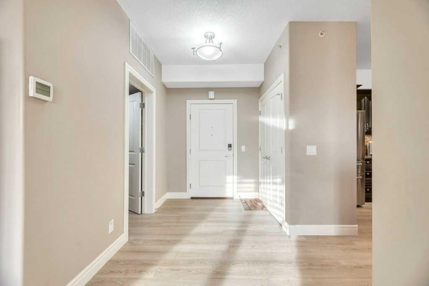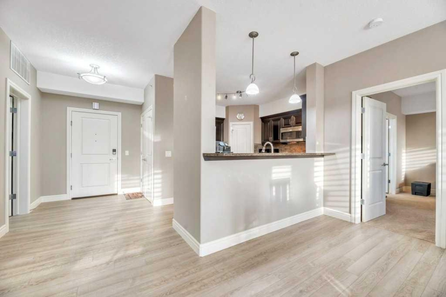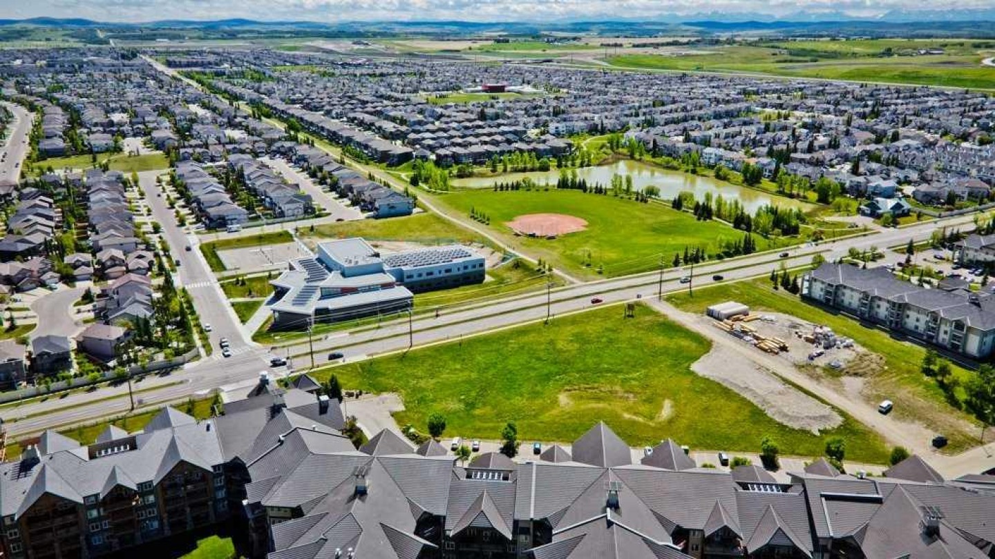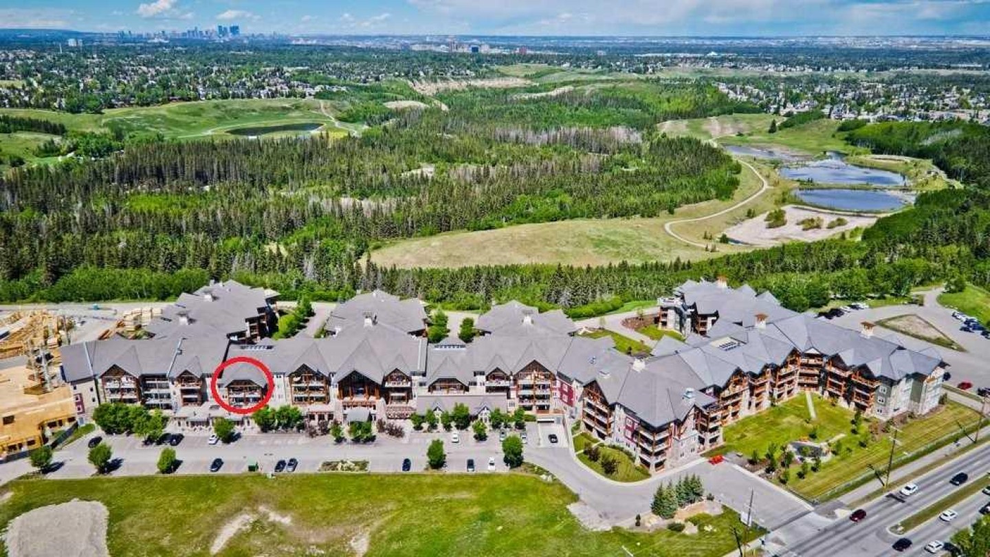 Enjoy quiet living with no unit above and a spectacular two-storey, south-facing balcony designed to capture warm sunshine, making it perfect for entertaining and summer barbecues. Ideally situated along the edge of Fish Creek Provincial Park, this award-winning complex offers direct access to miles of scenic walking, hiking, and cycling pathways, creating a true nature-lover’s retreat. This immaculate two-bedroom plus den, two-bathroom home features soaring 9-foot ceilings and a thoughtfully designed open-concept layout enhanced by upgraded laminate flooring and new plush carpeting throughout. The spacious foyer leads into a beautifully appointed gourmet kitchen complete with granite countertops, abundant espresso cabinetry, deep drawers, a corner pantry, and premium stainless-steel appliances including a Miele induction range, Miele dishwasher, and a French-door refrigerator with water and ice maker. The expansive living and dining areas are flooded with natural light from the sunny south exposure and seamlessly extend to the oversized balcony, creating an exceptional indoor-outdoor living experience. The primary suite offers a peaceful retreat with a walk-in closet and a four-piece ensuite featuring double sinks. A generously sized second bedroom is conveniently located beside the main four-piece bath. Both bedrooms showcase new top-grade carpeting and custom organizers. The dedicated den provides excellent built-in cabinetry, making it ideal for a home office or hobby space. In-suite laundry with a Maytag washer and dryer, central air conditioning, and condo fees that include all utilities add everyday comfort and convenience. This unit includes two titled, adjacent heated underground parking stalls and two secure storage lockers just steps from the elevator. Thoughtfully updated and meticulously maintained, recent improvements include ceiling fans in both bedrooms, custom cabinetry and high-end closet organizers, a retractable screen door, updated lighting in the den and kitchen, a new shower door in the main bath, makeup mirrors in both bathrooms, and a programmable thermostat. Sanderson Ridge is renowned for its exceptional resort-style amenities, including a swimming pool, hot tub, steam room, fitness centre, bowling alley, movie theatre, woodworking shop, craft room, wine cellar, billiards room, and two car wash bays. Bright, spacious, and move-in ready, this home offers an unparalleled lifestyle in one of Calgary’s most sought-after adult communities. Welcome home!