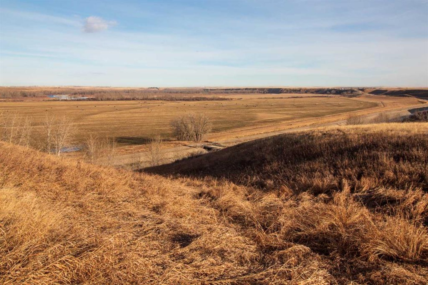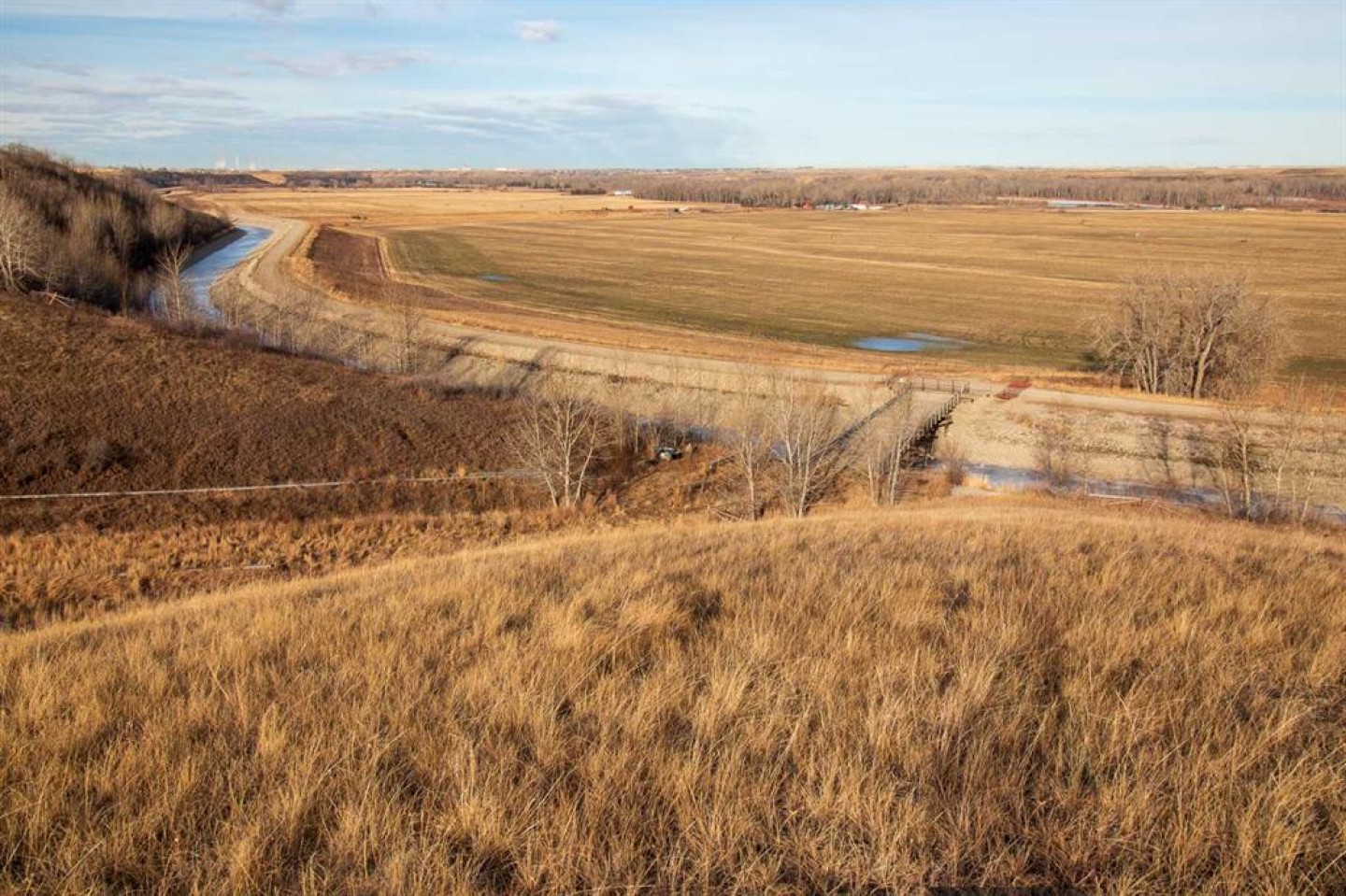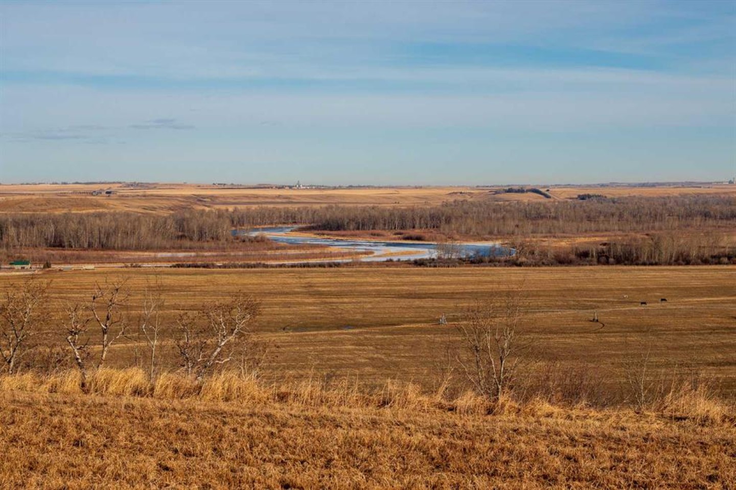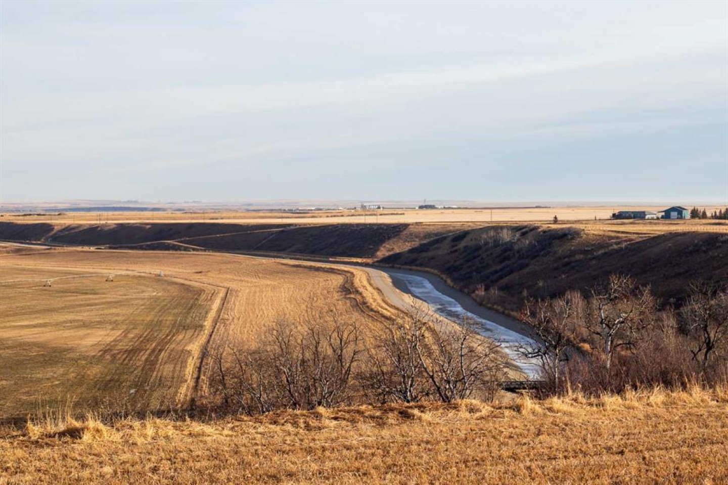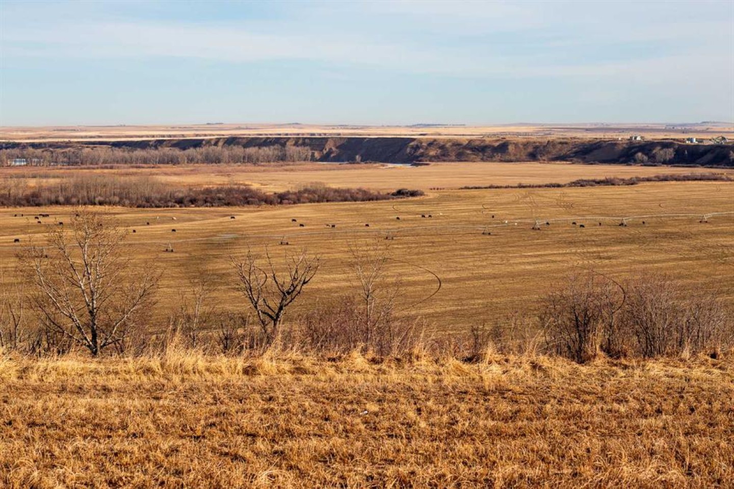 The property is a stable agricultural asset well suited for producers looking to expand or investors seeking long-term value. It includes approximately 186 irrigated acres with high yields supported by a modern pivot system and dependable water rights. Additionally, there are approximately 70 acres of a high producing hay blend. Beyond its agricultural productivity, the land offers excellent infrastructure, sweeping views of the Bow River and mountains, and multiple ideal locations for a potential home site.
