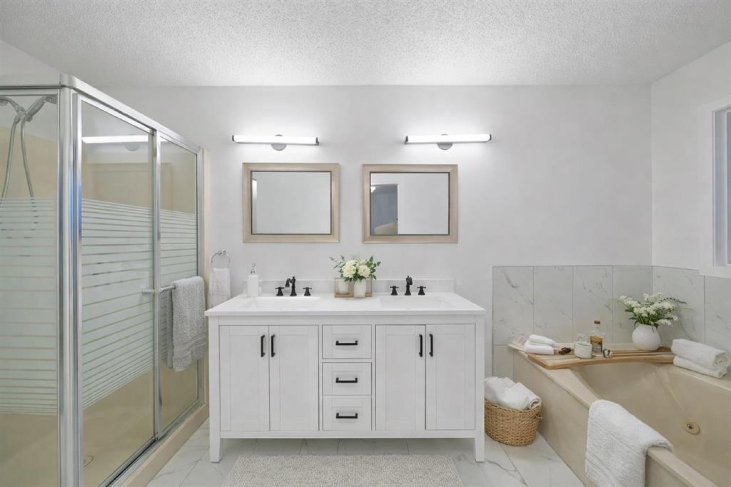 ***Open House Sunday March 01 from 1:30-3:30PM*** Prime location, southwest exposure, and directly across from greenspace — this beautifully maintained former Jayman BUILT showhome in Sandstone Valley presents an exceptional opportunity in one of NW Calgary’s most family-oriented neighbourhoods. Offering over 2,500 sq.ft. of developed living space, this thoughtfully designed 2-storey split is highlighted by soaring vaulted ceilings and an impressive open-to-below family room that invites in abundant natural light while creating striking architectural presence. The well-planned multi-level layout delivers both openness and functional separation, making it ideal for refined everyday living and effortless entertaining. The main level features a beautifully updated kitchen with quartz countertops, modern cabinetry, stainless steel appliances, and ample storage, seamlessly connecting to a bright breakfast nook with direct access to the spacious deck. Extensive upgrades throughout the home elevate both comfort and style, including renovated bathrooms, updated flooring, contemporary lighting and plumbing fixtures. The fully developed city registered LEGAL walkout basement expands the living space, a well-appointed kitchen with dining space, a fourth bedroom, full bathroom, additional storage and a flex room — offering excellent flexibility for extended family living or valuable rental income potential. Surrounded by parks and pathways and just minutes from Nose Hill Park, this home is within walking distance to elementary schools and transit, with convenient access to Country Hills Boulevard and Stoney Trail. A rare chance to own a modern renovated, bright, greenspace-facing property with legal walkout basement suite in a mature, family-oriented community. Book your viewing today!