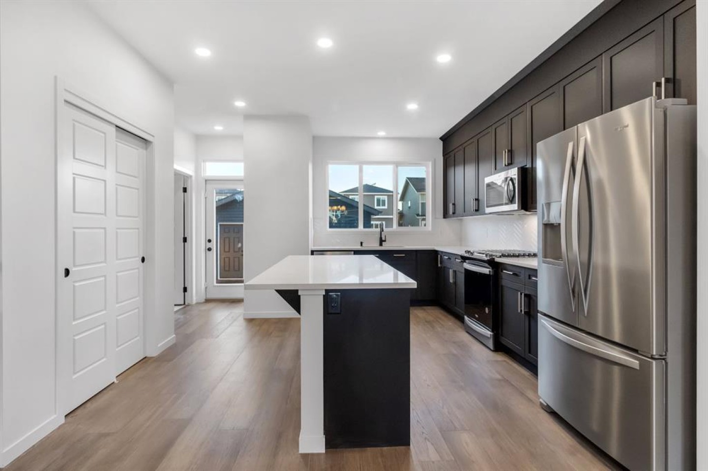 Brand New! Welcome to this stunning brand-new home in the desirable community of Midtown, Airdrie! Thoughtfully designed and extensively upgraded, this home offers modern elegance and functional living. Step inside to an open-concept main floor featuring 9-ft ceilings and beautiful engineered hardwood floors. The gourmet kitchen boasts sleek 3 cm QUARTZ countertops, high-end stainless steel appliances including a GAS stove, an upgraded lighting package and a half bathroom completes the main level. Upstairs, the primary suite is a true retreat, offering an en-suite and a walk-in closet. Two additional spacious bedrooms, a bonus room, a 3-piece bathroom, and a convenient upstairs laundry add to the home's practicality. The separate entrance to the unfinished basement provides endless potential for customization, whether you envision a home gym, extra living space, or a home based business. The property also includes a double-car garage, ensuring ample parking and storage. Located in Midtown, you'll enjoy the perfect blend of tranquility and convenience, with parks, shopping, and amenities just minutes away. This never-lived-in home is move-in ready—don’t miss the opportunity to make it yours! Book your showing today!