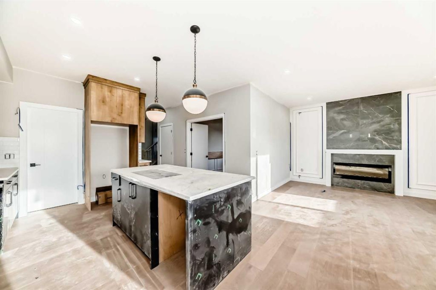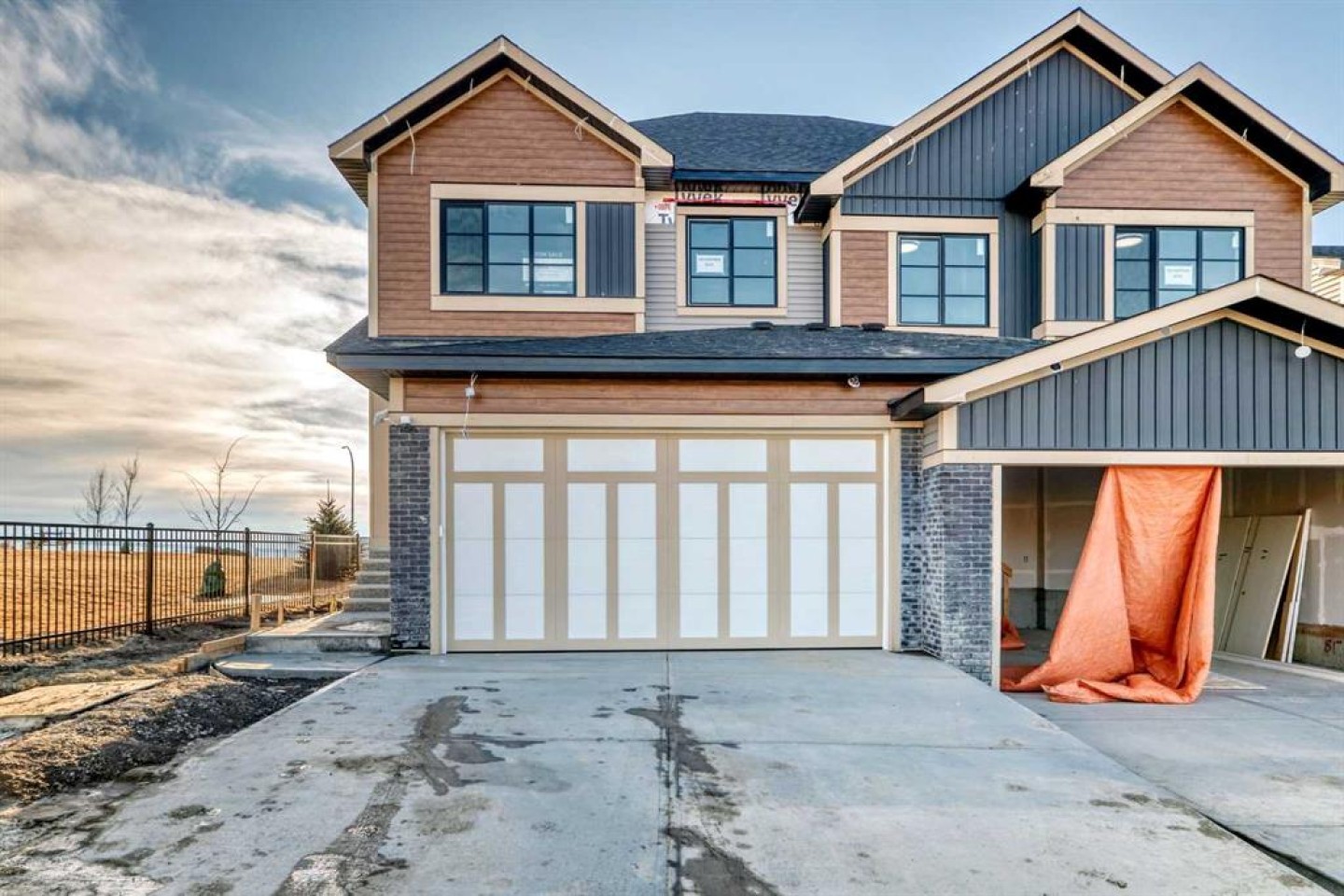 ** Open House: Sunday, March 1st | 3 to 5pm ** Discover the Cambridge by Paragon Custom Homes. A stunning 1,895 sq ft corner duplex situated on a premium lot with a park right beside you in the desirable West Hawk community. This beautiful home offers abundant natural light and 9ft ceilings throughout. Inside, you'll be greeted by a bright foyer with engineered hardwood flooring and large windows. The walkthrough mudroom with built in storage connects effortlessly from the double attached garage into the pantry, keeping you organized. The spacious kitchen features stainless steel appliances, quartz countertops, a generous island, and custom cabinetry. A large main floor office with feature walls provides versatile space for work, study, or a cozy playroom. Relax in the inviting living room with an electric fireplace, or step out to the deck and backyard. Upstairs, you'll find a great bonus room, two generously sized bedrooms, a family bathroom, laundry room with convenient built in storage, and the primary retreat boasting a vaulted ceiling, a luxurious 5-piece ensuite with a soaker tub, and a walk-in closet with custom built ins. An additional side entrance offers extra convenience for future developments or separate living spaces. Located close to schools, educational facilities, a variety of amenities, and easy access east to Calgary and west to the mountains, this home combines modern updates with classic charm in a sought after neighborhood. Just minutes from excellent dining, green spaces, and river walking paths, this remarkable property is ready for you to call home. Don’t miss your chance, schedule your showing today!