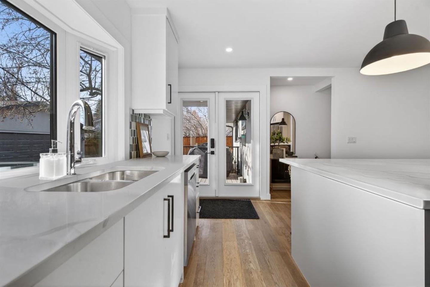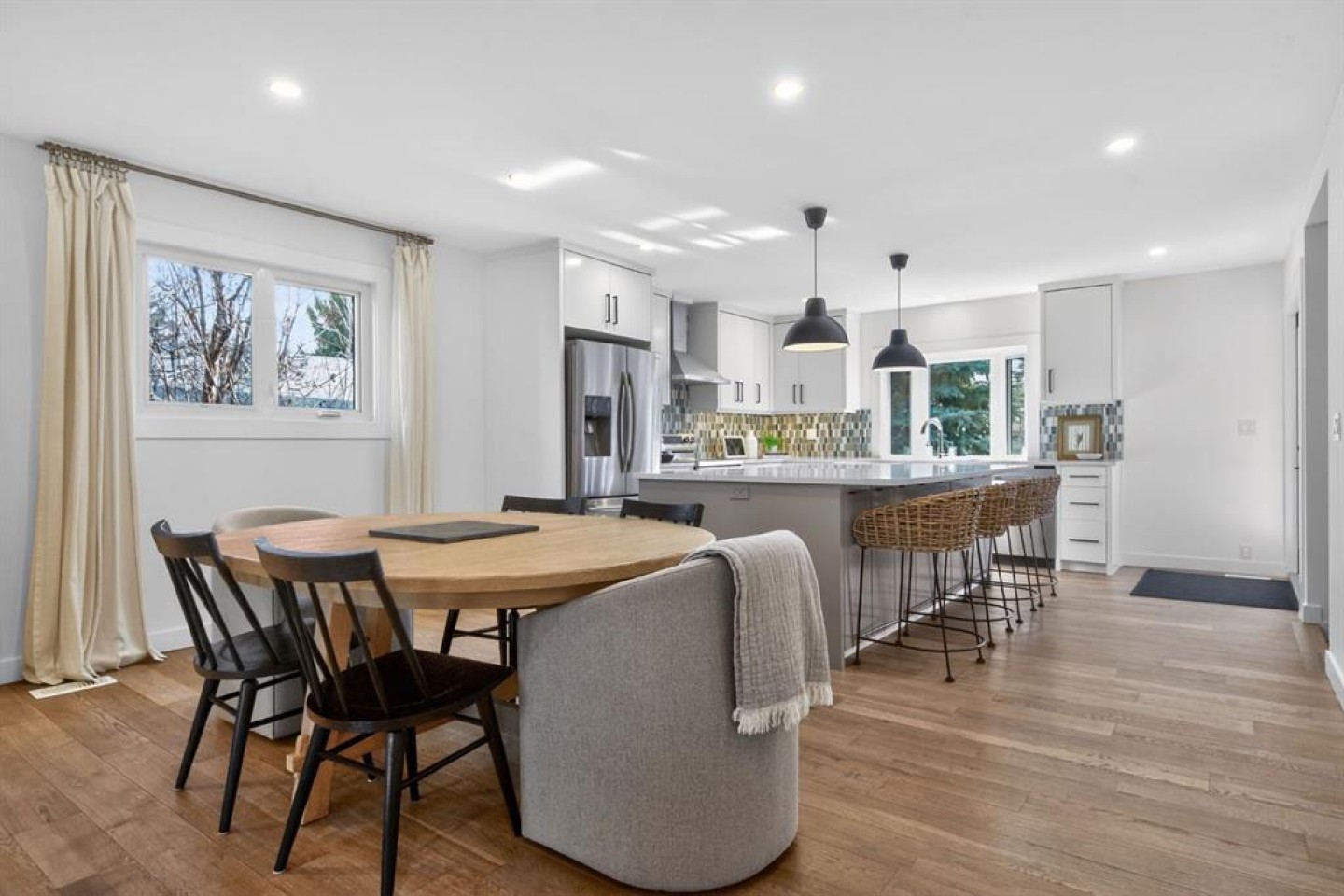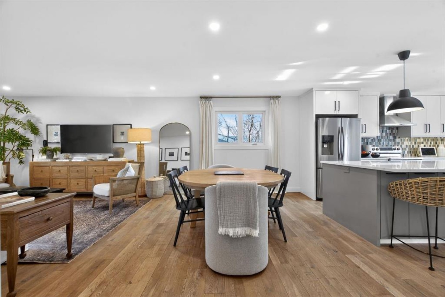 Welcome to this fully renovated bungalow in the established community of Braeside. This extensively renovated bungalow offers over 2,500 sq ft of fully developed living space, where modern design, quality craftsmanship, and a thoughtfully designed layout come together across two finished levels. The main floor features three bedrooms making it the ideal space for growing families, or those seeking space to work, host, and unwind. Spanning 1,363 sq ft, the main level showcases a bright, open-concept design accented by hardwood flooring and expansive windows that bathe the home in natural light. The heart of the home is an inviting, contemporary kitchen and living space where clean lines and thoughtful design take centre stage. White cabinetry, stainless steel appliances, quartz countertops, and 9’x5’ island with storage on both sides with seating come together to offer understated elegance and everyday practicality. Whether it’s busy weekday mornings or relaxed evenings with friends, this space makes gathering feel effortless. The primary suite is a calm and inviting retreat, complete with a spa inspired ensuite featuring a double vanity and a deep soaker tub. Two additional bedrooms and a 3 pce bathroom complete the main level, offering both comfort and convenience. Downstairs, the fully finished 1,221 sq ft basement extends the home’s versatility with two more bedrooms, a den space, and a spacious recreation area—ideal for movie nights, a home gym, games area, or kids’ play space. Step outside into the south facing back yard and discover one of the home’s standout features: a large, private backyard oasis. The composite deck is perfect for summer entertaining and outdoor lounging and the space is ideal for the kids to play. Each spring, the mature tree comes into bloom with delicate pink blossoms, creating a serene and picturesque backdrop to the outdoor space. The oversized detached double garage provides secure parking and extra storage, while incredible neighbours and a welcoming atmosphere complete the picture. Located close to schools, playgrounds, The Shops at Buffalo Run, and with quick access to Stoney Trail, this Braeside bungalow offers the perfect balance of modern comfort, thoughtful updates, and an easy, connected lifestyle. This is one you won’t want to miss.