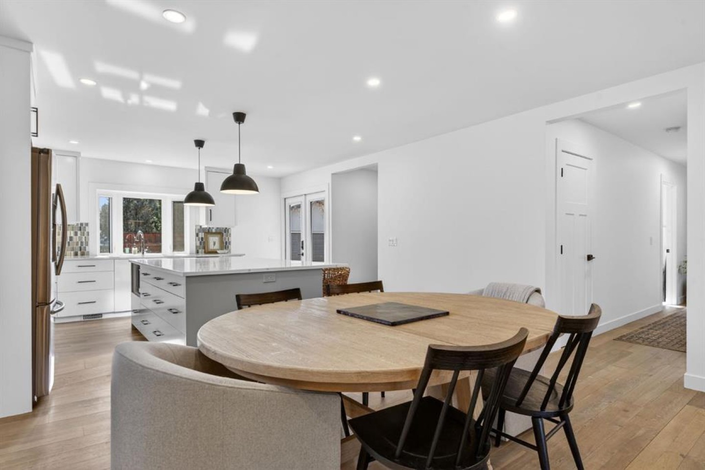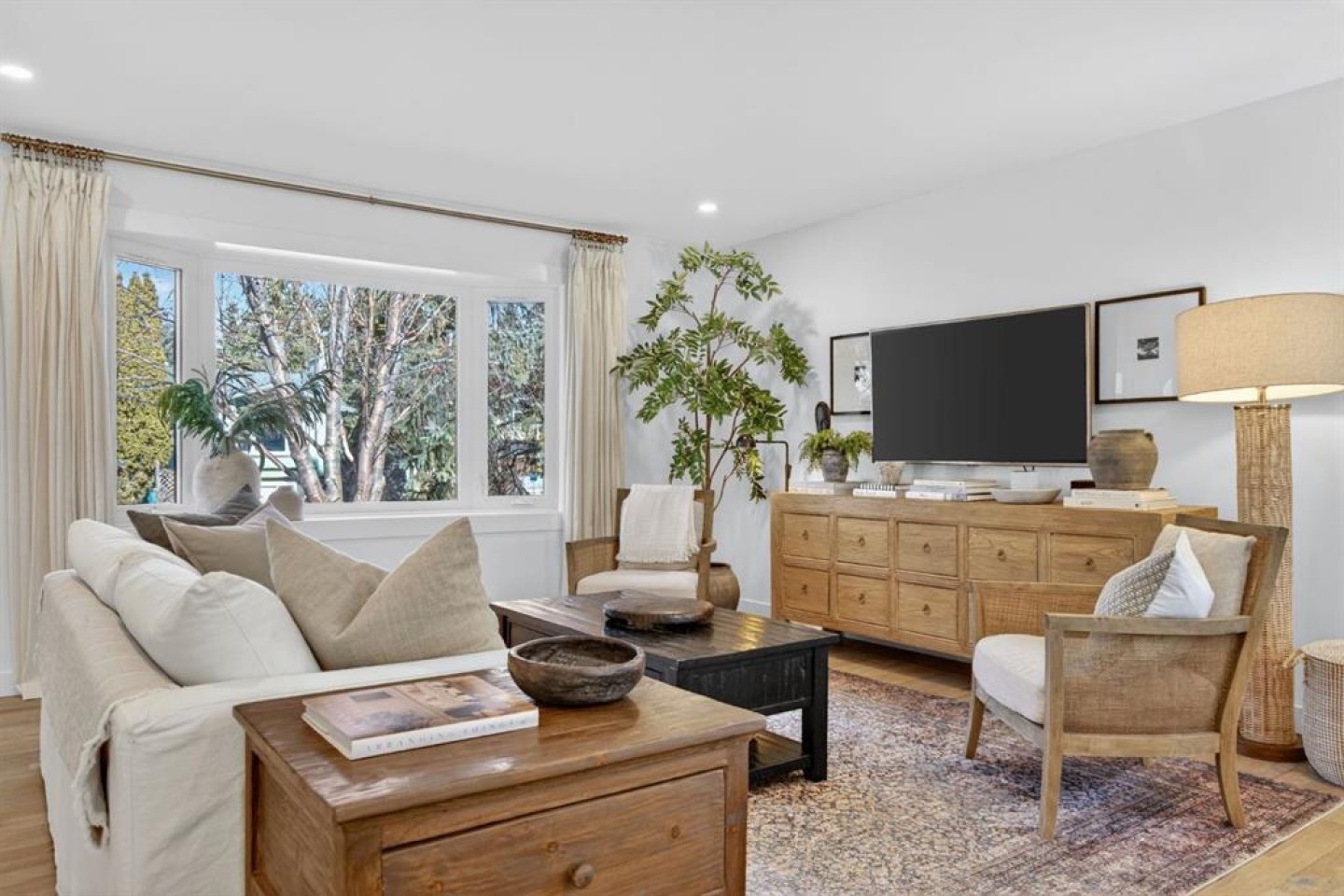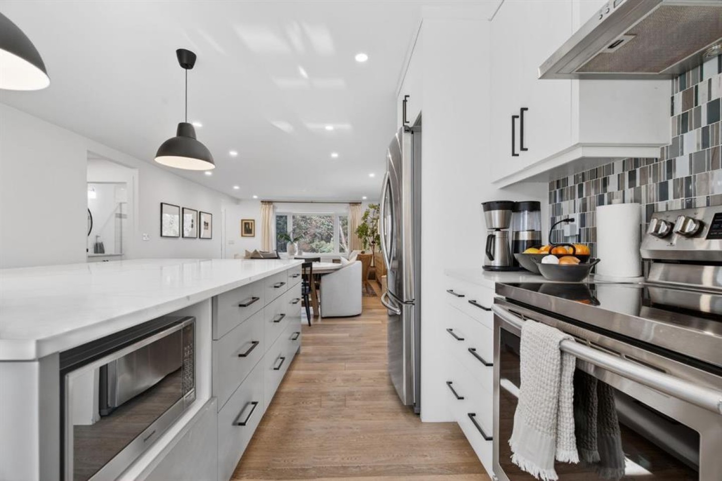 Welcome to this fully renovated bungalow in the established community of Braeside. This extensively renovated bungalow offers over 2,500 sq ft of fully developed living space, where modern design, quality craftsmanship, and a thoughtfully designed layout come together across two finished levels. The main floor features three bedrooms making it the ideal space for growing families, or those seeking space to work, host, and unwind. Spanning 1,363 sq ft, the main level showcases a bright, open-concept design accented by hardwood flooring and expansive windows that bathe the home in natural light. The heart of the home is an inviting, contemporary kitchen and living space where clean lines and thoughtful design take centre stage. White cabinetry, stainless steel appliances, quartz countertops, and 9’x5’ island with storage on both sides with seating come together to offer understated elegance and everyday practicality. Whether it’s busy weekday mornings or relaxed evenings with friends, this space makes gathering feel effortless. The primary suite is a calm and inviting retreat, complete with a spa inspired ensuite featuring a double vanity and a deep soaker tub. Two additional bedrooms and a 3 pce bathroom complete the main level, offering both comfort and convenience. Downstairs, the fully finished 1,221 sq ft basement extends the home’s versatility with two more bedrooms, a den space, and a spacious recreation area—ideal for movie nights, a home gym, games area, or kids’ play space. Step outside into the south facing back yard and discover one of the home’s standout features: a large, private backyard oasis. The composite deck is perfect for summer entertaining and outdoor lounging and the space is ideal for the kids to play. Each spring, the mature tree comes into bloom with delicate pink blossoms, creating a serene and picturesque backdrop to the outdoor space. The oversized detached double garage provides secure parking and extra storage, while incredible neighbours and a welcoming atmosphere complete the picture. Located close to schools, playgrounds, The Shops at Buffalo Run, and with quick access to Stoney Trail, this Braeside bungalow offers the perfect balance of modern comfort, thoughtful updates, and an easy, connected lifestyle. This is one you won’t want to miss.