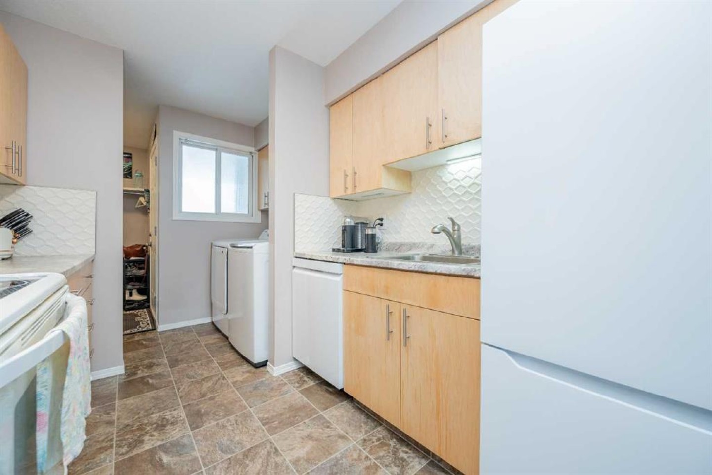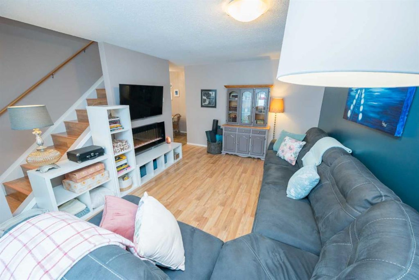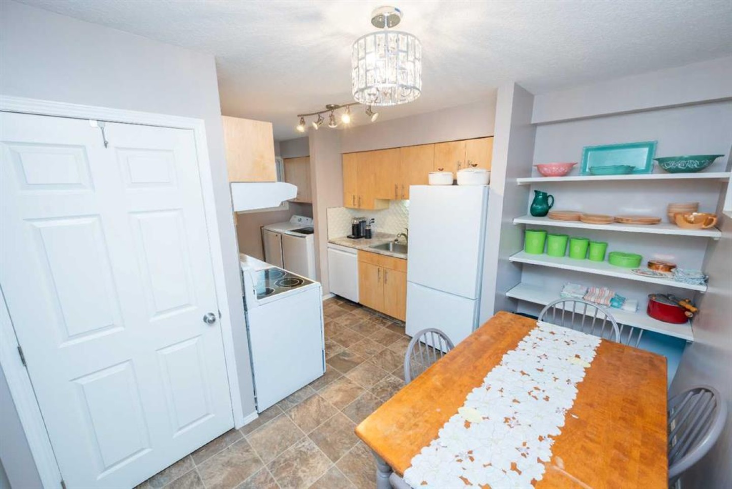VALUE.....LOCATION....FANTASTIC CONDITION......welcome to an absolute gem in Haywood Court. If you are looking for an extremely well kept unit that just located near multiple schools, walking trails, parks, Eastlink Centre, and southside amenities you have found home! From the moment you step into this beautiful home you will notice the meticulous care that has gone into the property. Step into the SPACIOUS LIVING ROOM with WONDERFUL NATURAL LIGHT & A GENEROUS SPACE perfect for entertaining or relaxing. Continue your visit and you will notice a STYLISH KITCHEN featuring UPDATED BACKSPLASH, EXTENSIVE COUNTER SPACE, FORMAL DINING AREA, & MASSIVE STORAGE ROOM perfect for a pantry, deep freeze, or set up to suite your organizational needs. Let's move upstairs where you will be greeted by a MASSIVE PRIMARY BEDROOM offering exceptional space for your comfort. The top floor also features a SIZABLE ADDITIONAL BEDROOM, WELL APPOINTED 4 PIECE BATHROOM & additional storage space. Did I mention the EXTERIOR STORAGE ROOM, IN-SUITE LAUNDRY & UPDATED FRIDGE, DRYER & DISHWASHER (ALL IN NOVEMBER 2025). Welcome to value on the wonderful south side of Grande Prairie....WELCOME HOME!