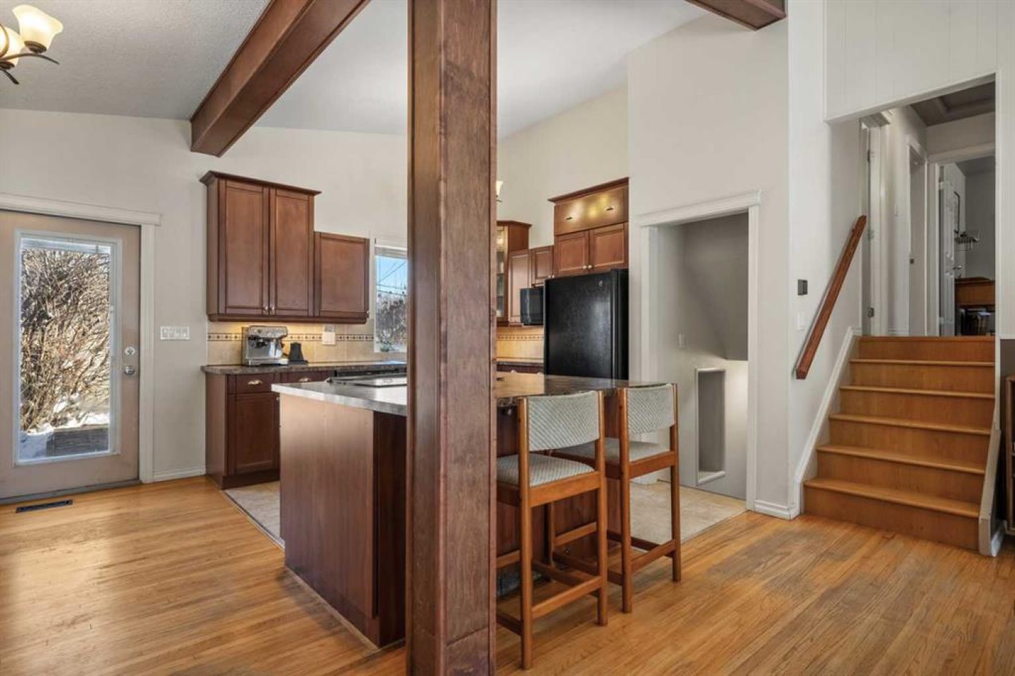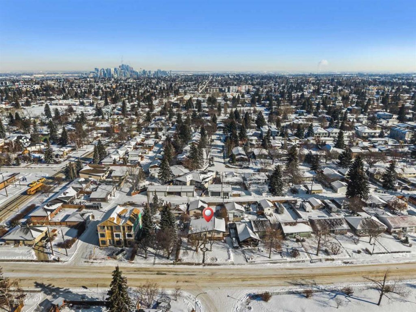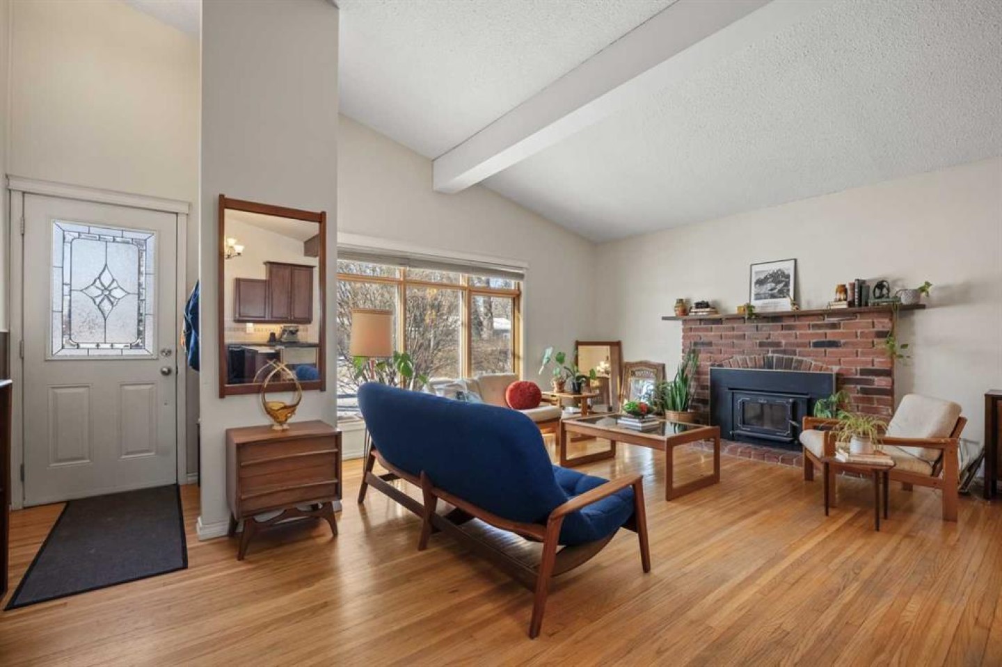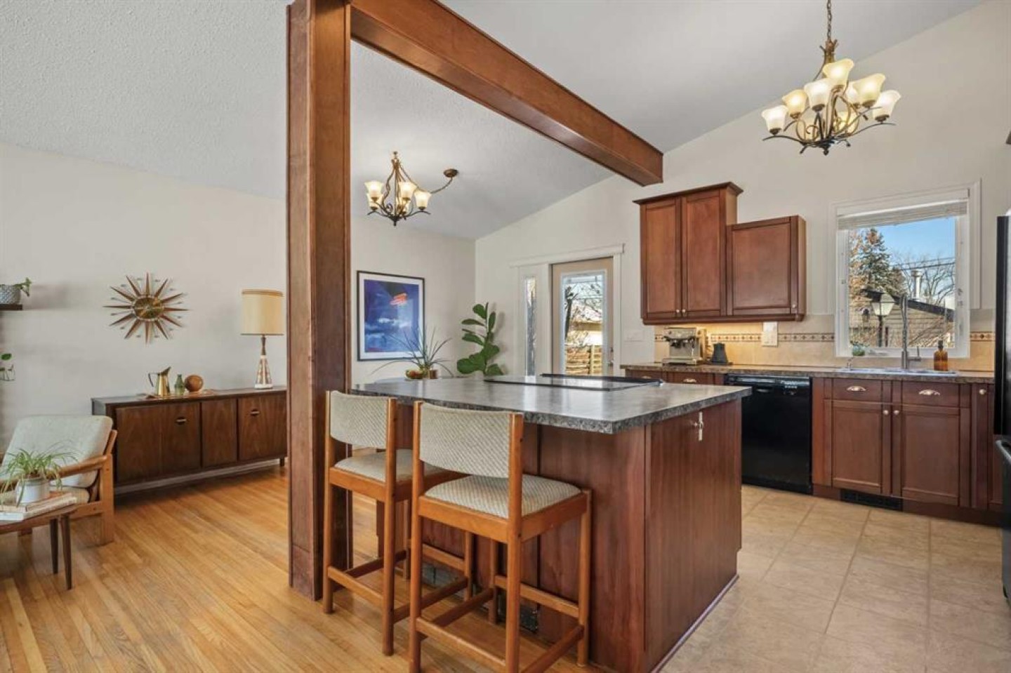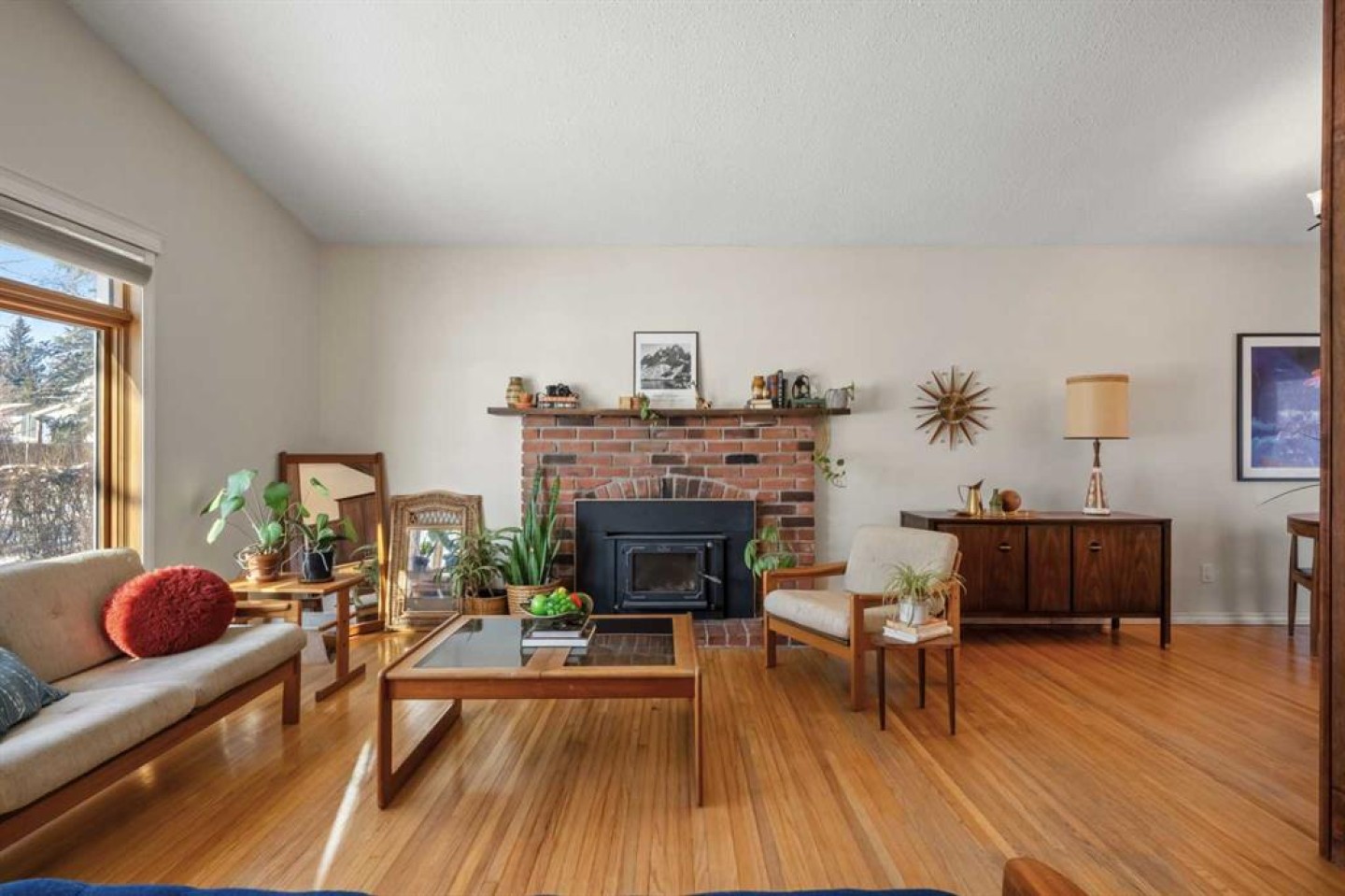 Welcome to this classic mid-century home nestled in the heart of Glenbrook, presenting a versatile opportunity for both first-time buyers and developers, set on a coveted inner-city development lot featuring an exceptional 19.15m (62.8 ft) frontage and 16.99m (55.7 ft) rear width lot in a highly sought after inner-city location. Rich with character, this home showcases soaring vaulted ceilings with exposed beams, original solid hardwood flooring, and a west-facing windows that fills the open-concept living room with tons of natural light, anchored by a timeless wood-burning fireplace with red brick surround and wood mantle. The vaulted ceilings extend into the kitchen and dining area, featuring a centre island with built-in electric cooktop, pull-out drawers, abundant cabinetry, bar seating, sleek black appliances, 45” upper cabinets, tiled backsplash, and a charming window overlooking the expansive backyard. The upper level hosts a spacious primary bedroom with built in California Closets and blackout blinds, while two additional bedrooms offer built-in closet organizers and bright front-yard views. The updated main bath includes tiled backsplash and a convenient custom linen storage. The fully developed lower level adds further versatility with a generous family room, fourth bedroom, and a stylish 3-piece bath with heated ceramic tile floors. The laundry area is smartly designed with side-by-side LG washer and dryer, folding counter, upper shelving and hanging hooks, while a large crawl space/furnace room (spanning nearly half the home) provides exceptional storage. Additional highlights include central air conditioning, central vacuum, a new furnace, an upgraded hot water tank, and a gas line running from the house to the garage. The expansive lot offers immense redevelopment potential complemented by a large private backyard retreat showcasing a beautifully crafted deck with built-in bench seating and BBQ gas line, a second patio ideal for a firepit, dedicated garden spaces, and a garden shed. The oversized heated double detached garage has a brand-new door and garage opener with built-in shelving, completes this impressive package. With quick access to Richmond Road, 26th Avenue, Sarcee Trail, LRT, and Glenmore Trail, this is a standout opportunity to enjoy today, invest, or redevelop in one of Calgary’s most established and connected communities. This is inner-city living with room to breathe!