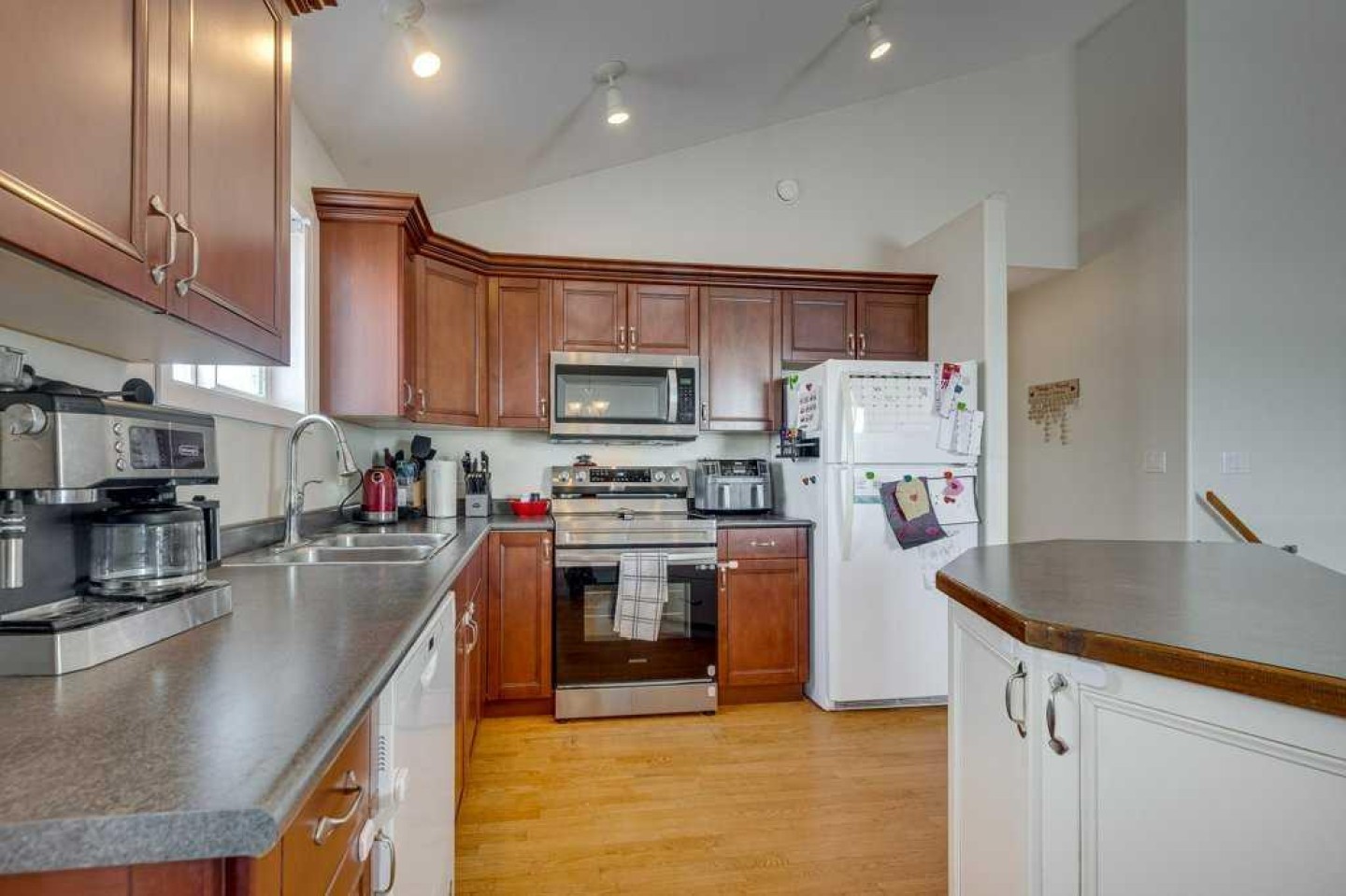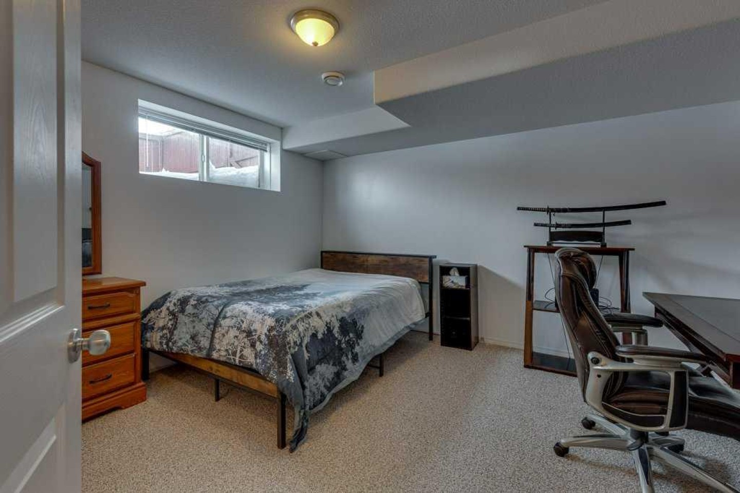 Well-located, well-maintained bungalow in desirable Inglewood, across from Don Campbell Elementary School and backing onto a park! This home offers a practical and inviting layout suited for families, first-time buyers, or downsizers. A welcoming front deck leads into a bright foyer. The main floor features 3 bedrooms, including a spacious primary bedroom (with nursery/office access) with a 4 pce ensuite, a second 4-piece bathroom, and convenient main floor laundry. The open-concept kitchen, dining, and living area showcases vaulted ceilings and large windows that fill the space with natural light, plus access to a west-facing deck — perfect for family gatherings. The fully finished basement adds excellent living space with a huge family room featuring a gas fireplace and built-in shelving, ideal for movie nights, games, or a play area. A bright fourth bedroom, full bathroom, and mechanical/storage room complete the lower level. Outside, enjoy a fully fenced yard backing onto green space. Shingles, fence, and shed have been updated within the past 5 years. Conveniently located near transit and just minutes from East Hill Shopping Plaza.