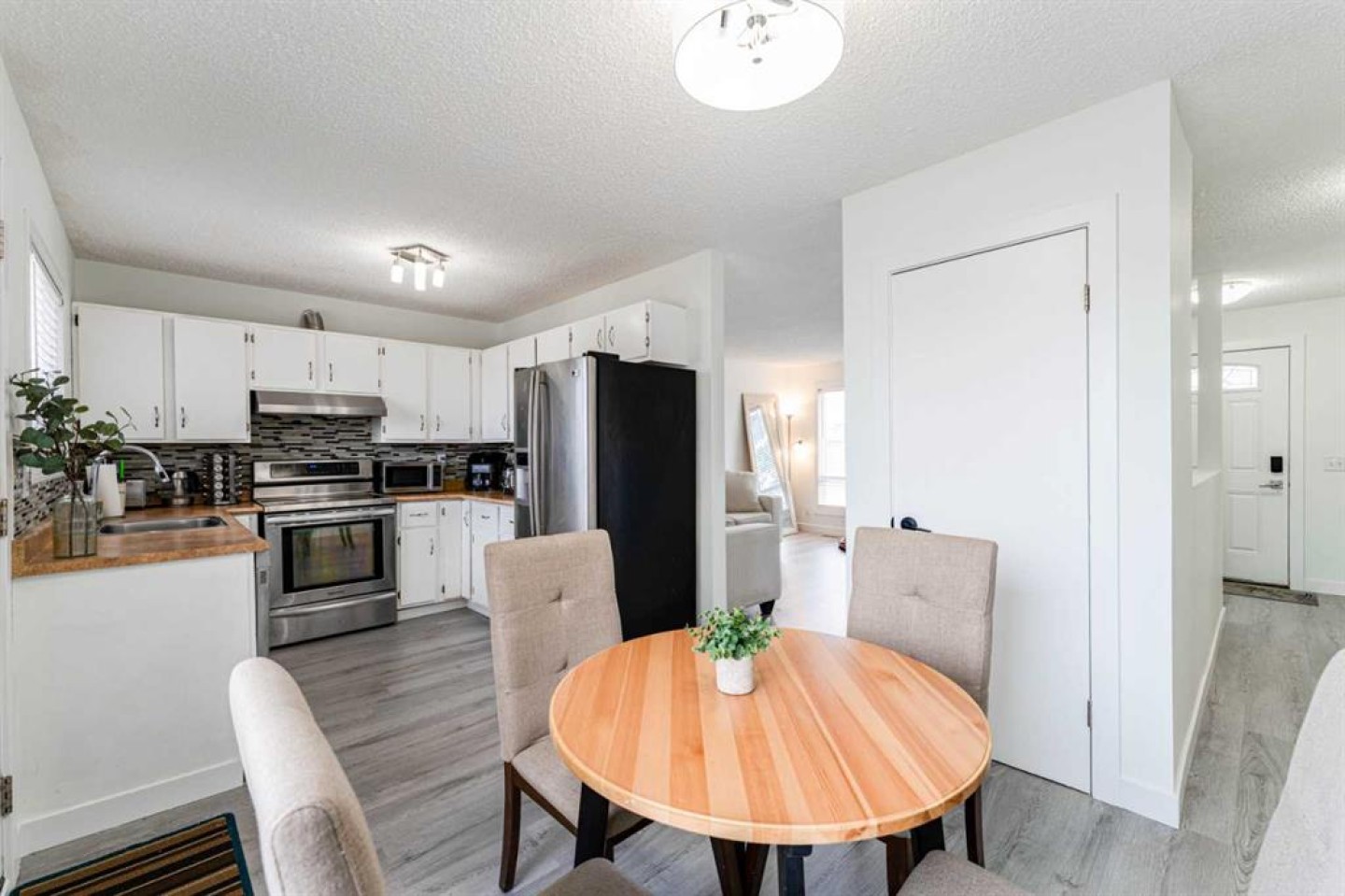 Welcome to this well-maintained and thoughtfully updated starter home located in the established and convenient community of Falconridge NE. Tucked away in a quiet location, this property offers exceptional value with close proximity to multiple schools, parks, a nearby commercial complex, public transit, and quick access to downtown Calgary—making it an ideal opportunity for first-time buyers, families, or investors. The home features a bright and welcoming interior highlighted by fresh white paint and large windows that allow natural light to fill the living spaces throughout the day. Numerous upgrades have been completed in recent years, providing peace of mind and move-in readiness. Improvements include newer windows and updated flooring, offering both comfort and long-term value with plenty of potential to personalize. The main floor offers a functional and open layout beginning with a spacious living room, perfect for relaxing or entertaining. The clean white kitchen is well-appointed with stainless steel appliances, ample cabinetry, and a convenient dinette area ideal for everyday meals. Two generously sized bedrooms and a 4-piece main bathroom complete this level, providing comfortable and practical living space. The fully developed lower level expands your living area with a large family room featuring a cozy wood-burning fireplace and new flooring—an excellent space for movie nights or gatherings. This level also includes a primary bedroom, a full bathroom, and a laundry/utility room, offering flexibility for guests, extended family, or a home office setup. The fully developed lower level expands your living area with a large family room featuring a cozy wood-burning fireplace and new flooring—an excellent space for movie nights or gatherings. This level also includes an additional bedroom, a full bathroom, and a laundry/utility room, offering flexibility for guests, extended family. Outside, the home sits on a nice lot with a west-facing backyard, allowing you to enjoy afternoon and evening sun. The backyard features a large deck, perfect for summer BBQs and outdoor entertaining, and is fully fenced for privacy. Additional highlights include a single oversized garage, paved back alley access, and plenty of outdoor space for gardening or recreation. Conveniently located close to schools, shopping, restaurants, transit, and all essential amenities, this home combines a peaceful setting with excellent accessibility. Offering a fantastic price point and move-in-ready condition, this property presents an outstanding opportunity in one of Calgary’s well-established northeast communities