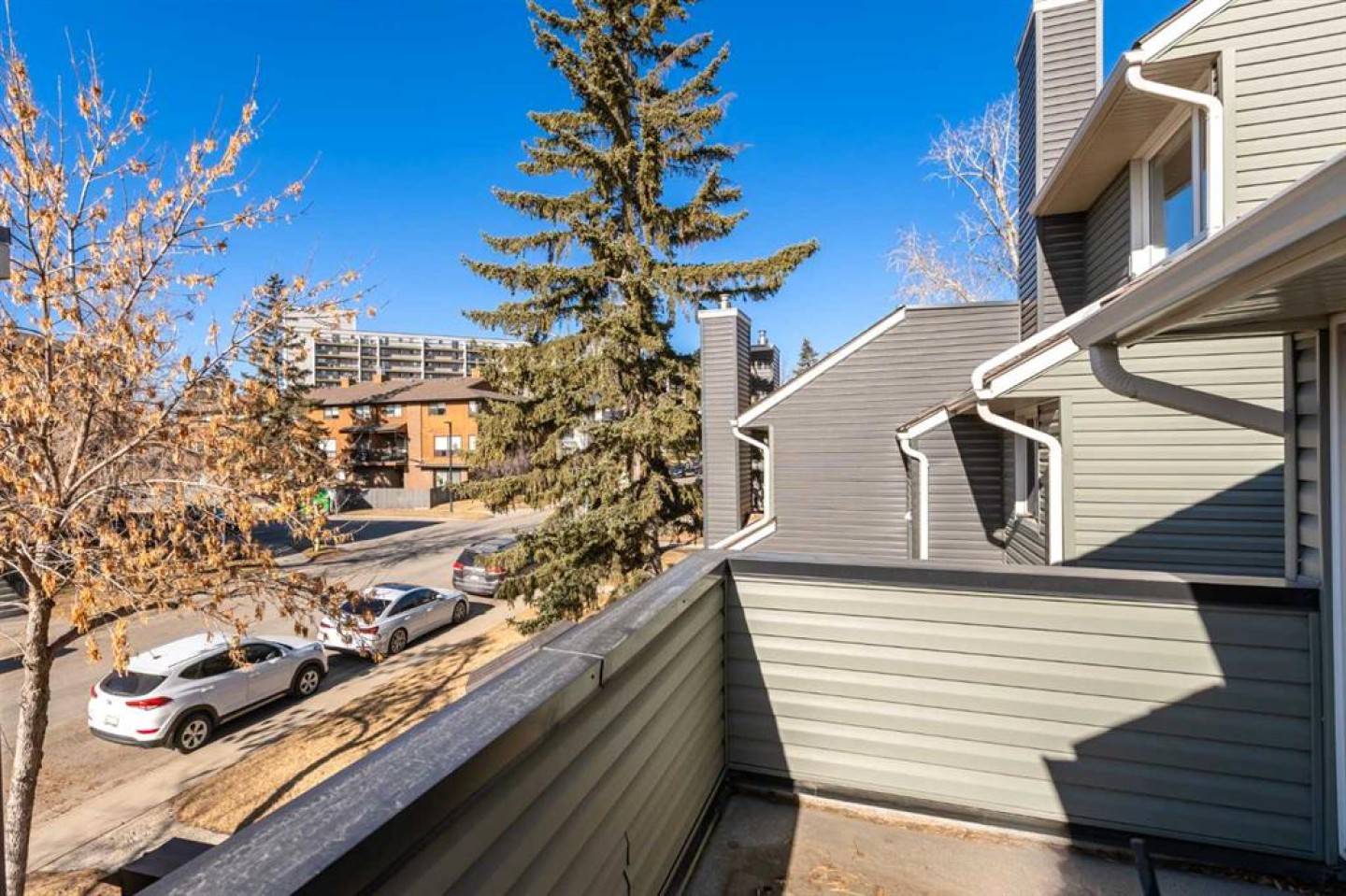 Welcome to this IMPECCABLY curated TWO bedroom, 1.5 bathroom corner townhouse, two-storey residence that blends thoughtful design with ELEVATED everyday living AND in one of the BEST LOCATIONS in Glamis Green!! Bathed in natural light thanks to its coveted WEST-facing corner positioning, this home has been EXTENSIVELY upgraded with a cohesive, CONTEMPORARY aesthetic that feels both timeless and refined. The kitchen is a true statement piece. Beautiful white shaker cabinetry and luxurious granite countertops, creating a tailored, high-end finish. Striking chrome fixtures provide bold contrast against the neutral palette, while PREMIUM stainless steel appliances - bring both style and performance. New LUXURY vinyl plank flooring flows effortlessly throughout the home, complemented by curated DESIGNER accents throughout. Fresh paint, updated hardware, modern lighting, fabric curtains, and custom feature walls add warmth and architectural interest at every turn. A cozy gas fireplace anchors the main living space, creating an inviting AMBIANCE perfect for intimate evenings or effortless entertaining. Large SUNNY west-facing windows blends indoor and outdoor living with ease. Upstairs, the main bathroom renovation is nothing short of STUNNING - beautifully finished with elevated materials and impeccable craftsmanship. Two generously sized bedrooms offer flexibility for guests, a home office, or growing needs, while the PRIMARY RETREAT enjoys direct access to a private upper balcony - your own quiet retreat for morning coffee or evening unwinding. Convenient upper-level laundry washer and dryer area add practical luxury. The outdoor space has been thoughtfully designed for low-maintenance enjoyment, featuring a fully decked and fenced patio area that easily accommodates a dining set or lounge seating to ENJOY the warmth of the evening sun. An ATTACHED single garage provides secure parking and additional storage, and the well-managed complex offers peace of mind to home owners. Positioned directly across from a green space and a no-thru road, the setting feels TRANQUIL and private while remaining exceptionally connected. Glenmore, Sarcee, Stoney, and Crowchild Trails are all moments away, placing you just minutes from Westhills Shopping Centre, North Glenmore Park, Mount Royal University, public transit and many more amenities, and only 15 minutes to downtown - making this one of the most DESIRABLE LOCATIONS. Stylish, turnkey, and effortlessly convenient - this is ELEVATED townhouse living in a location that truly delivers. CALL TODAY to BOOK YOUR PRIVATE TOUR!!