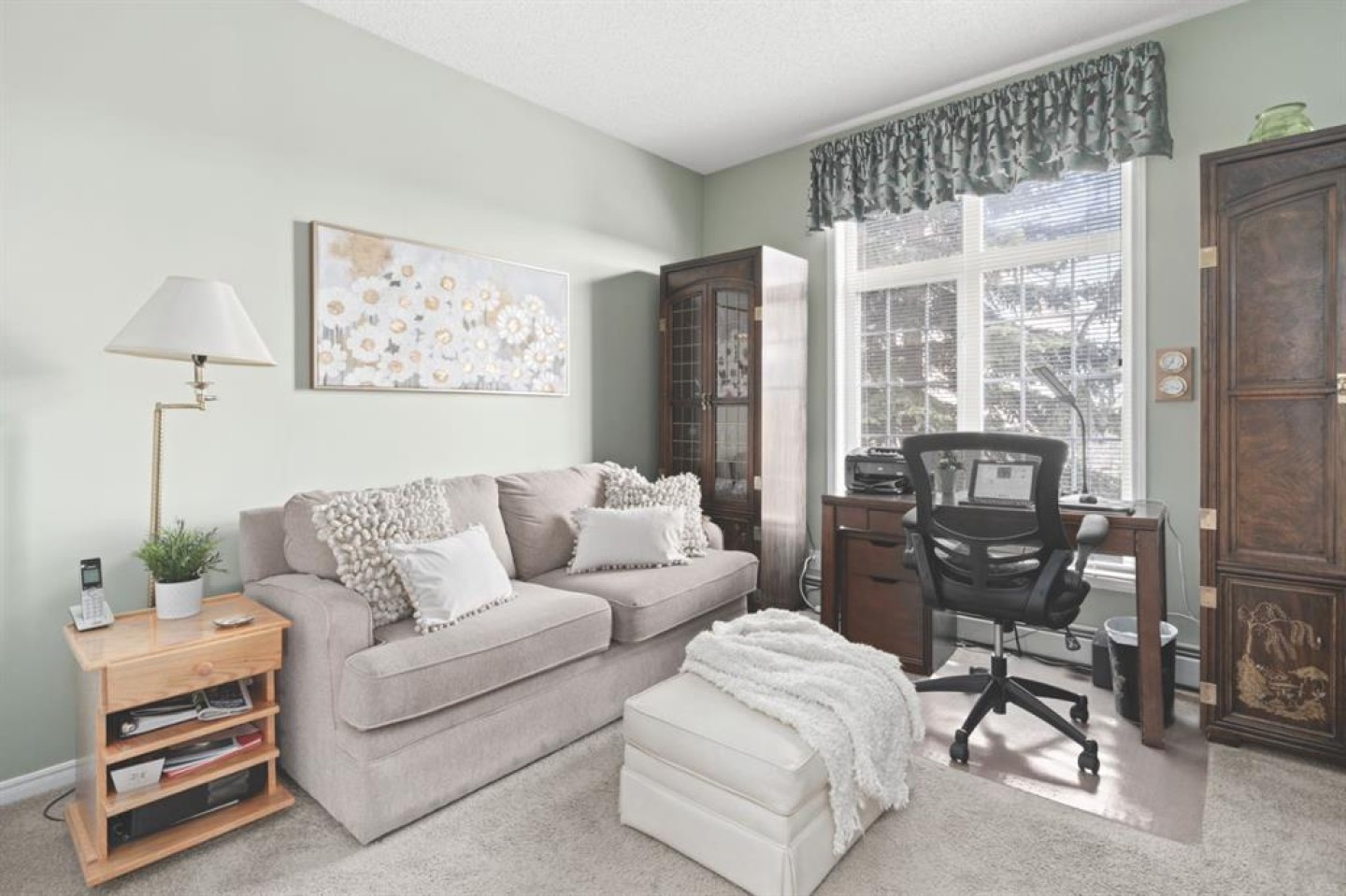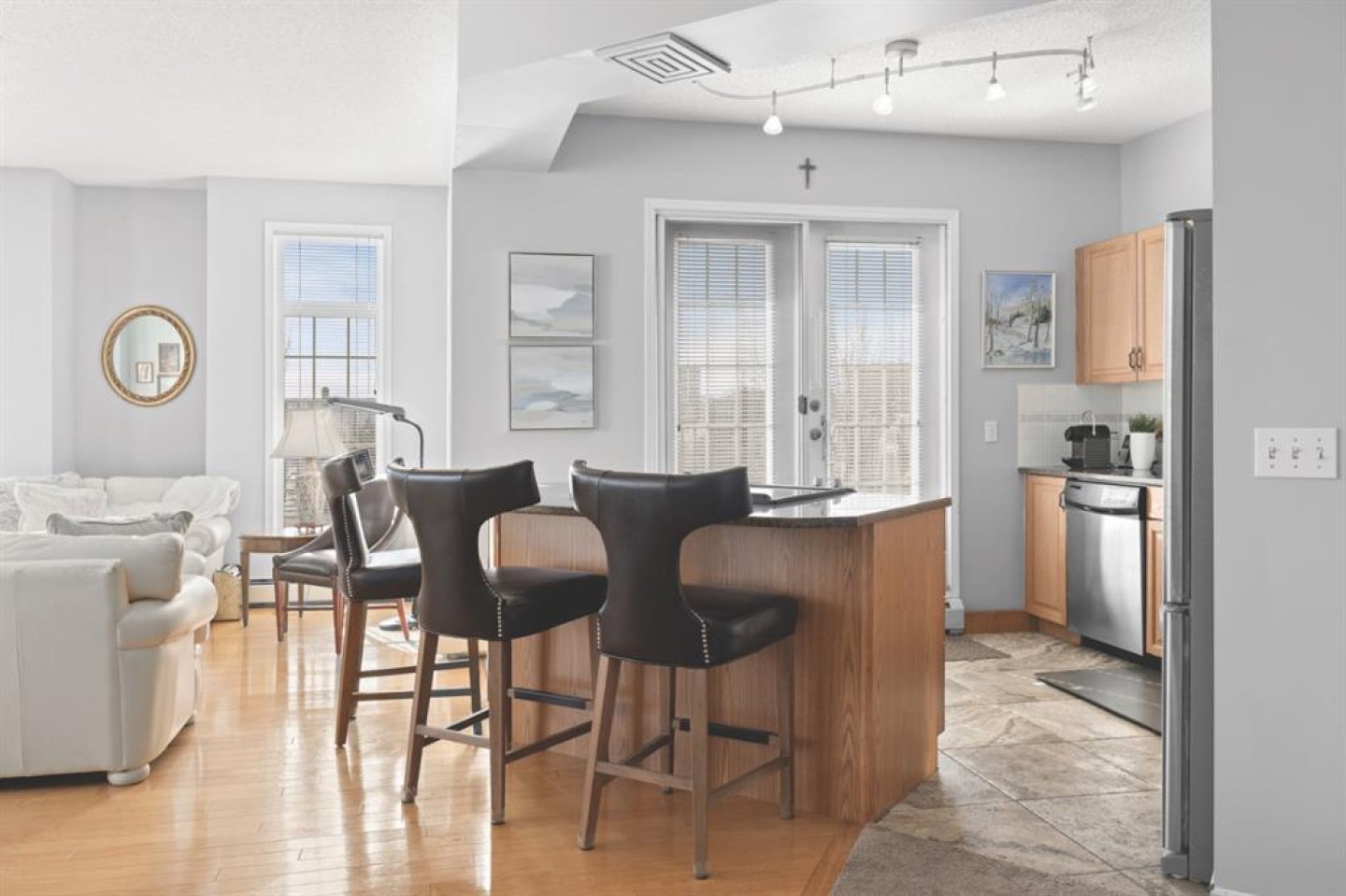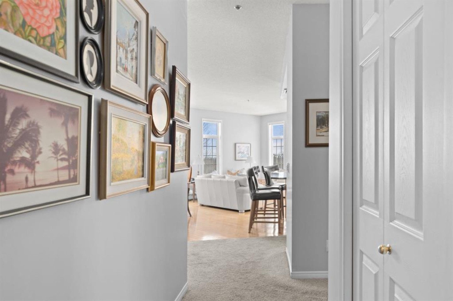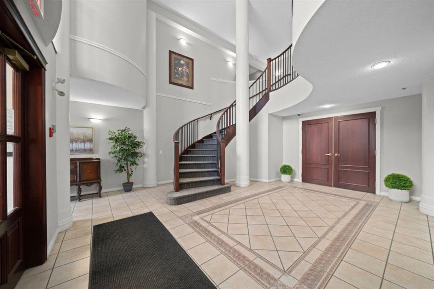 Welcome to this rare offering in the highly sought-after Gallery building in desirable Dalhousie. Conveniently located on the main floor but with a beautiful patio that sits well above ground level, this exceptional end unit combines privacy, elegance and everyday comfort in an exclusive 18+ building with only 16 residences. From the moment you step inside, the building sets the tone with its luxurious feel, sweeping curved staircase and tasteful decor. The unit itself has a private foyer and opens to a bright and airy 1,216 sq. ft. layout enhanced by large windows, tall ceilings and an abundance of natural light. The kitchen is designed for both function and connection, featuring a generous island with seating, granite countertops, stainless steel appliances and ample counter space. The kitchen flows flows beautifully into the spacious dining area, which can easily accommodate sizeable gatherings. The living room invites relaxed, elegant comfort and frames the stunning outdoor views. The true showstopper is the massive patio, large enough for two distinct seating areas. Take in views of the mountains while enjoying your morning coffee, summer al fresco dining or a peaceful evening unwind. It is a rare outdoor space that genuinely extends your living area. The condo offers two spacious bedrooms, including a large primary retreat complete with a walk-in closet, additional linen storage and ensuite featuring a soaking tub and separate shower. The second bedroom is perfectly suited as a guest room or home office and is conveniently located near the additional two-piece bathroom, where you will also find in-suite laundry and another linen closet. Storage is exceptional throughout - there is a dedicated storage room at the front of the unit ideal for a freezer or pantry overflow, plus an impressive 6’ x 12’ (approx) storage room in the underground parkade located directly in front of your oversized titled parking stall. The building welcomes your pets (a small dog or cat) and is situated just steps from Dalhousie Station, with convenient access to shopping, restaurants and a Safeway grocery store. The Dalhousie LRT Station and central bus hub are a short walk away, with an additional bus stop located right outside the building. For those who enjoy walking or biking, numerous nearby pathways make it easy to stay active and connected to nature. Well managed with a highly attentive board, this low-density building offers a quiet, refined and friendly lifestyle, in an unbeatable location. Units here rarely come to market so don't miss the opportunity to call this exceptional condo home! (Please click on the link for the 3D Tour.)