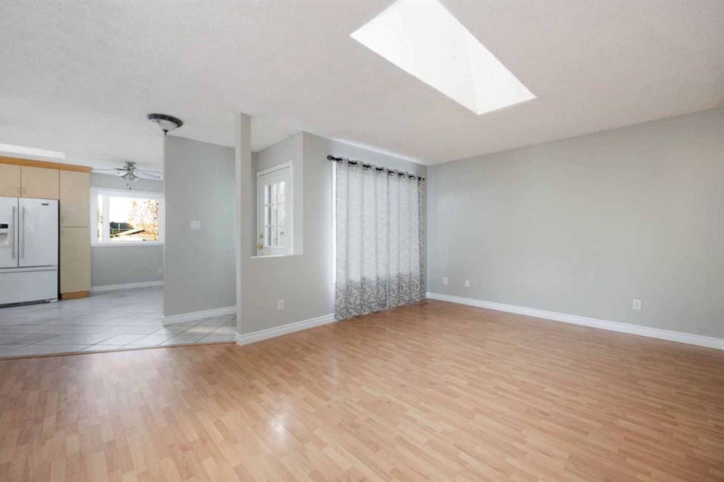 The main floor welcomes you with bright, open living spaces filled with natural light from the skylights above. The kitchen is open and functional, featuring plenty of full-height cabinetry, abundant counterspace, and a bay window in the adjacent dining area where you can sip your coffee while keeping an eye on the cul-de-sac action outside - whether it’s kids racing bikes or an impromptu game of road hockey.